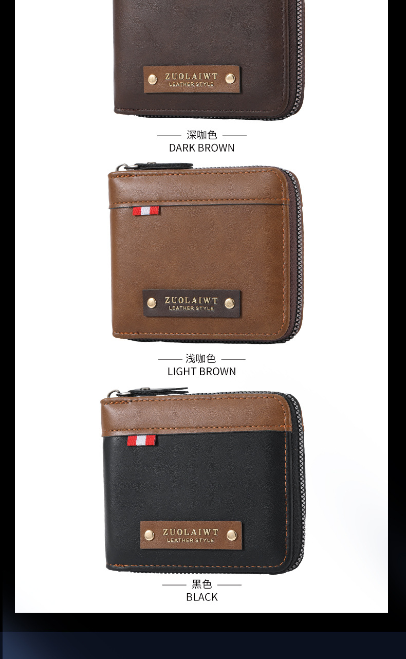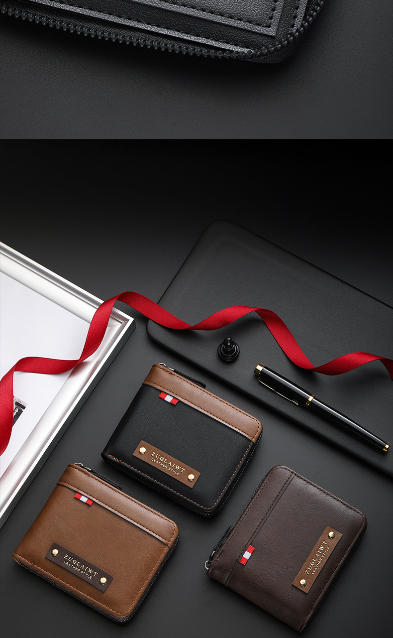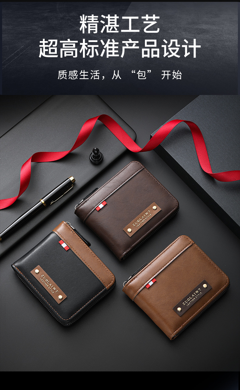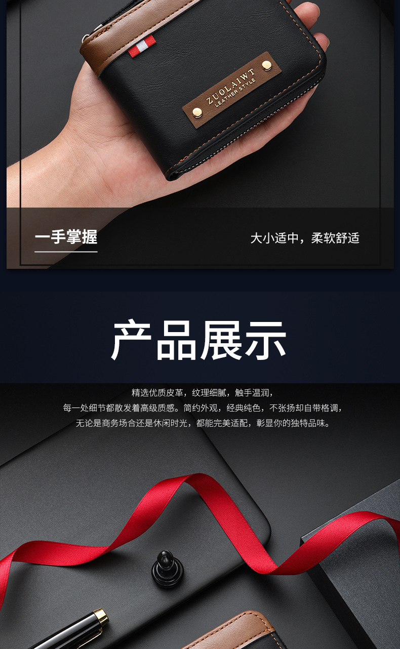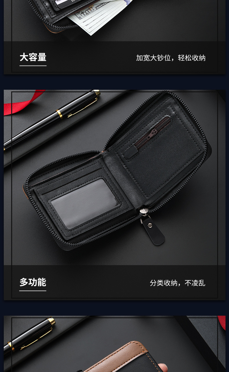 男士短款钱包拼皮五金装饰横款多卡位大容量小钱包证件卡包批发