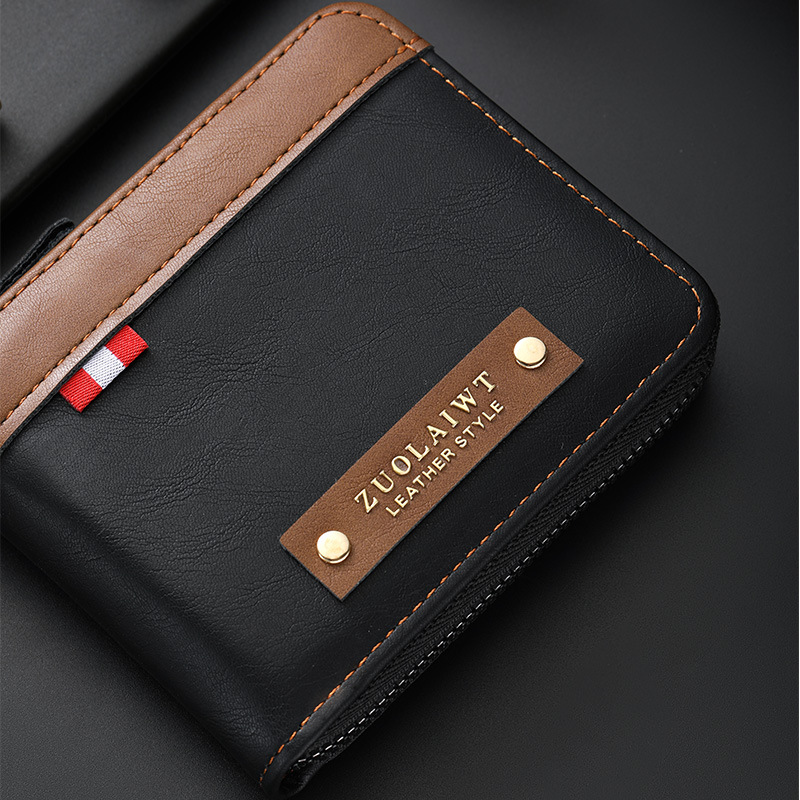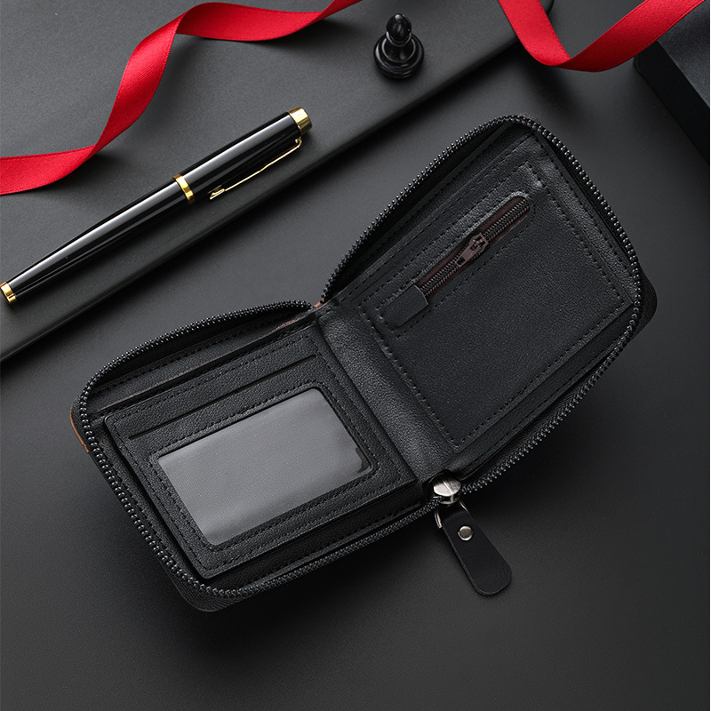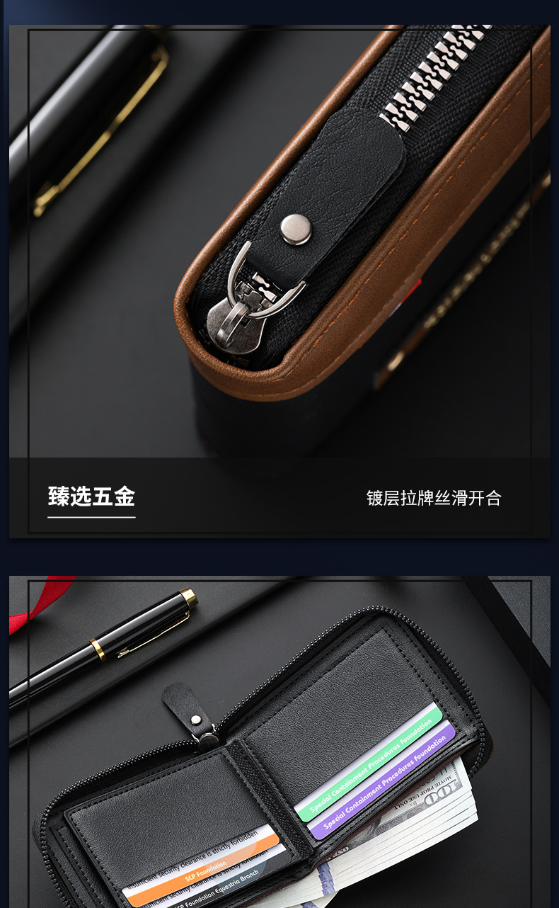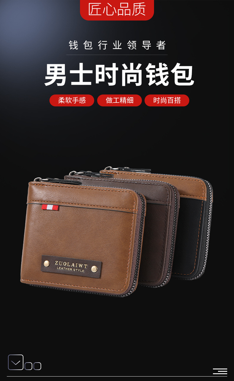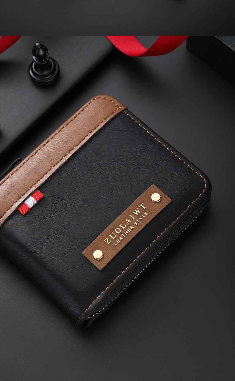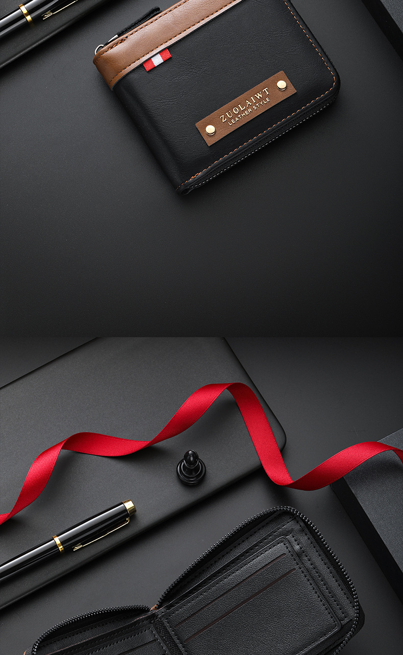 男士短款钱包拼皮五金装饰横款多卡位大容量小钱包证件卡包批发