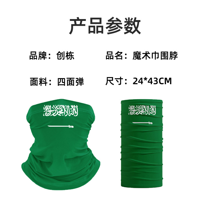 中东沙特阿拉伯国旗魔术头巾围巾多功能防晒围脖弹力骑行面罩
