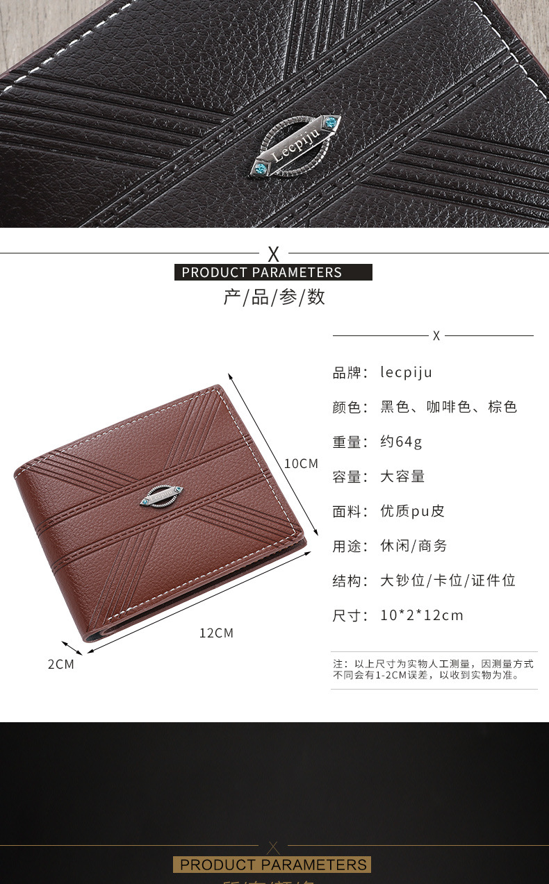 男士真皮钱包简约商务休闲短款皮革钱夹防水软皮夹手拿包多卡位款