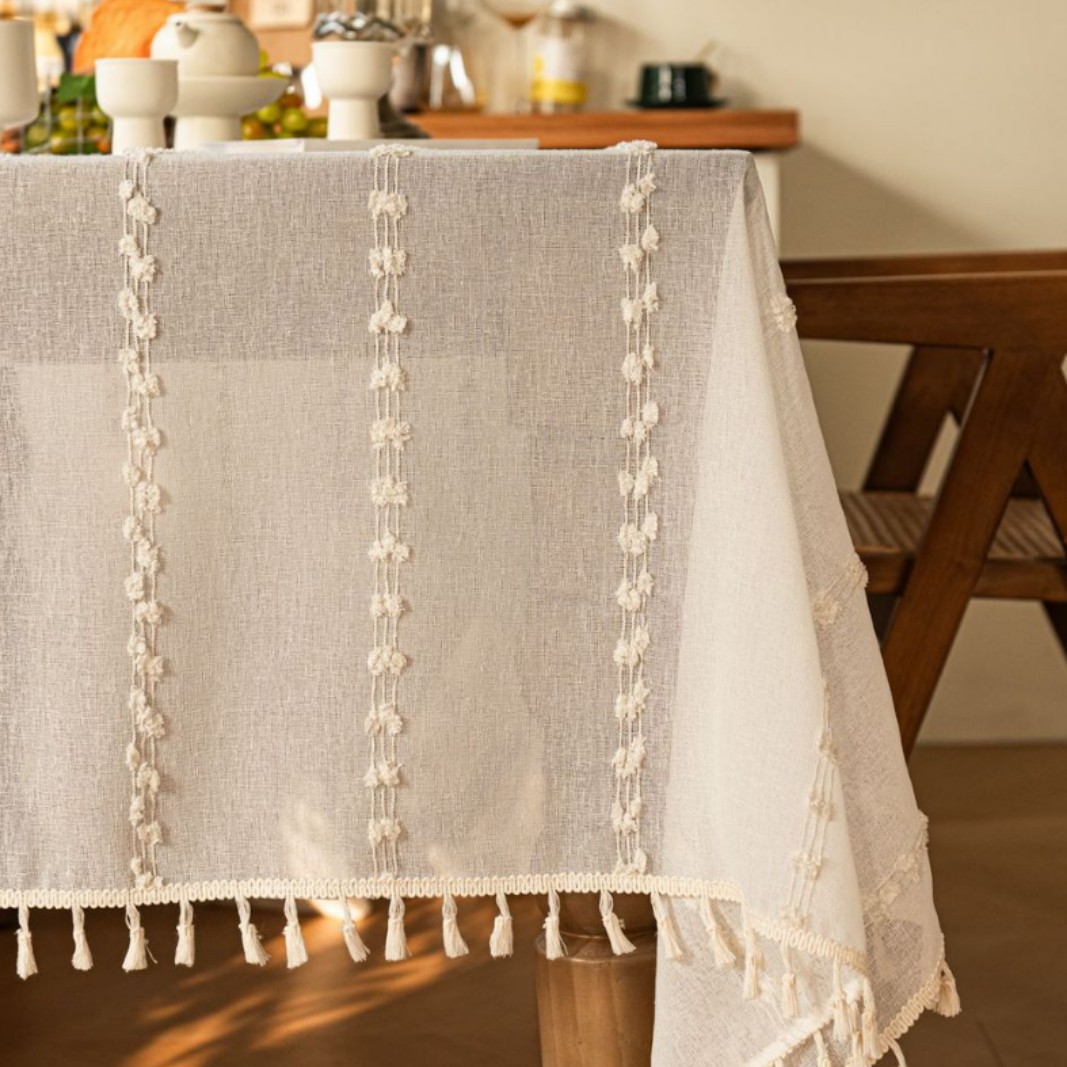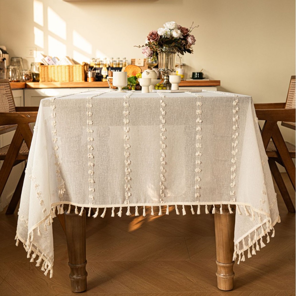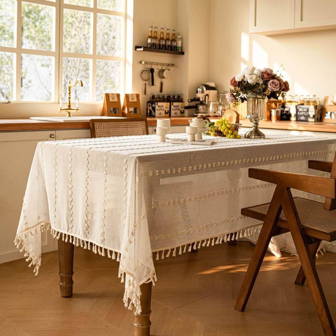 跨境工厂餐桌布艺毛毛花流苏镂空美式