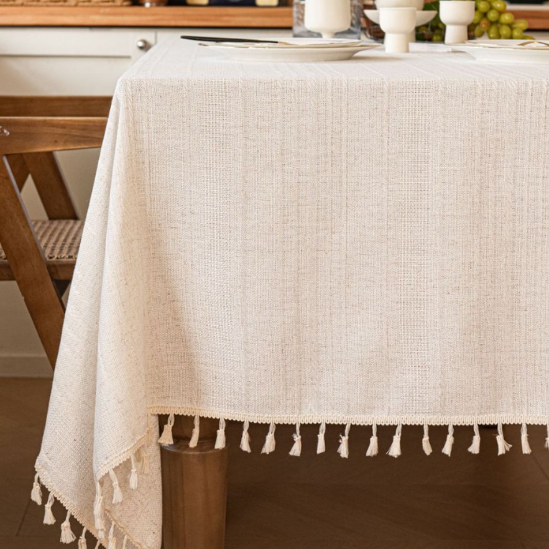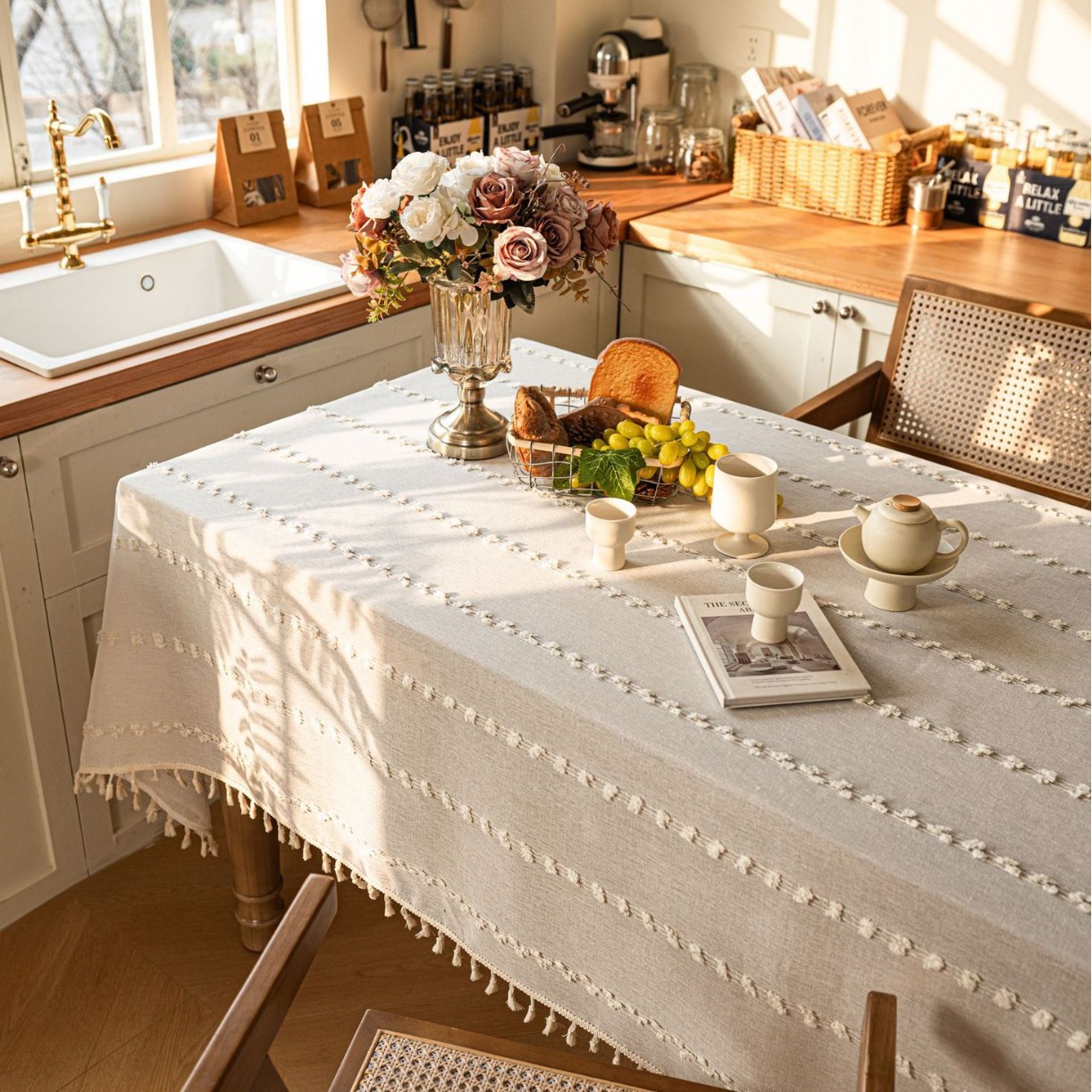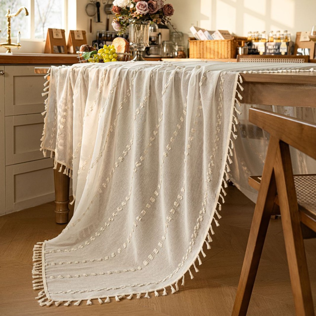 跨境工厂餐桌布艺毛毛花流苏镂空美式