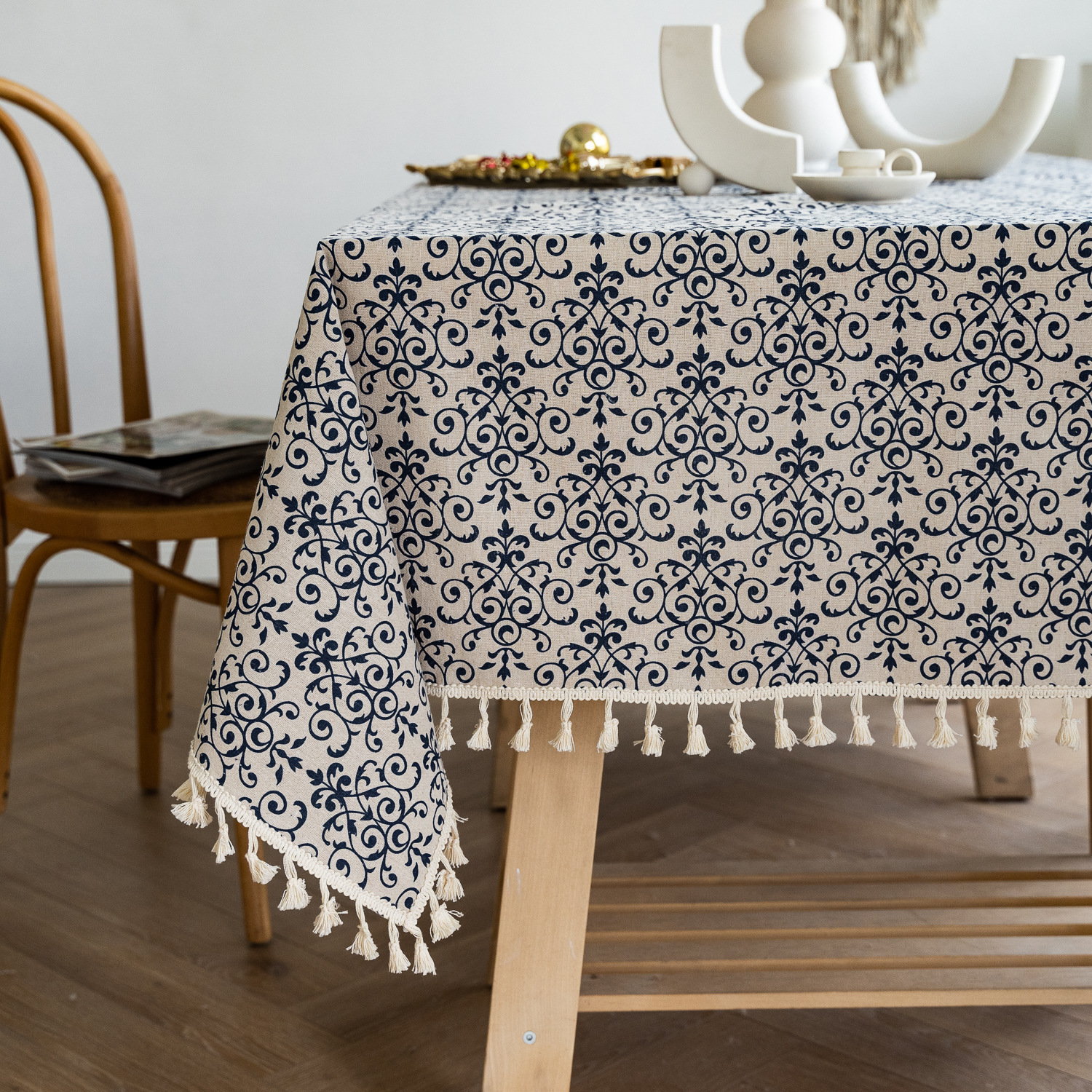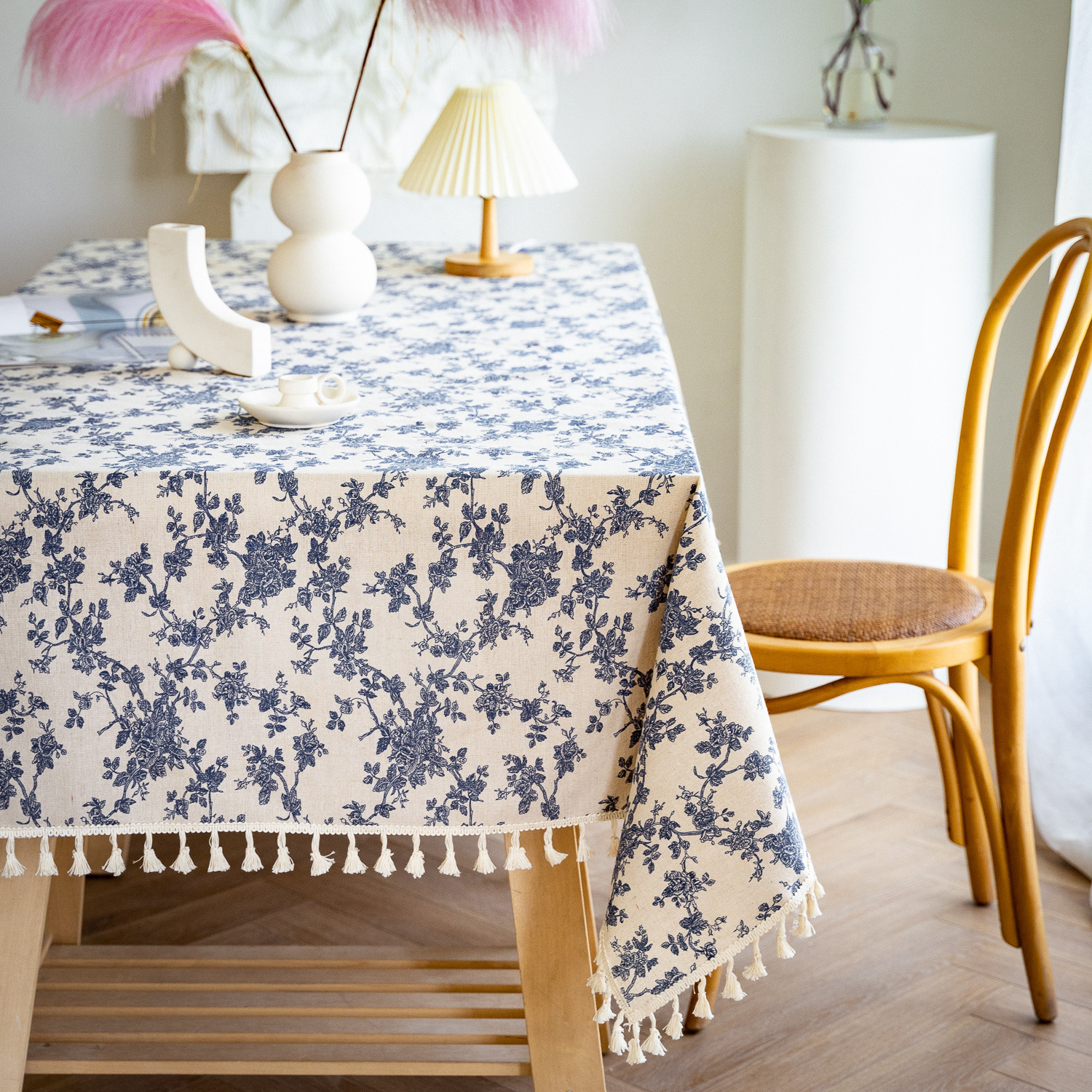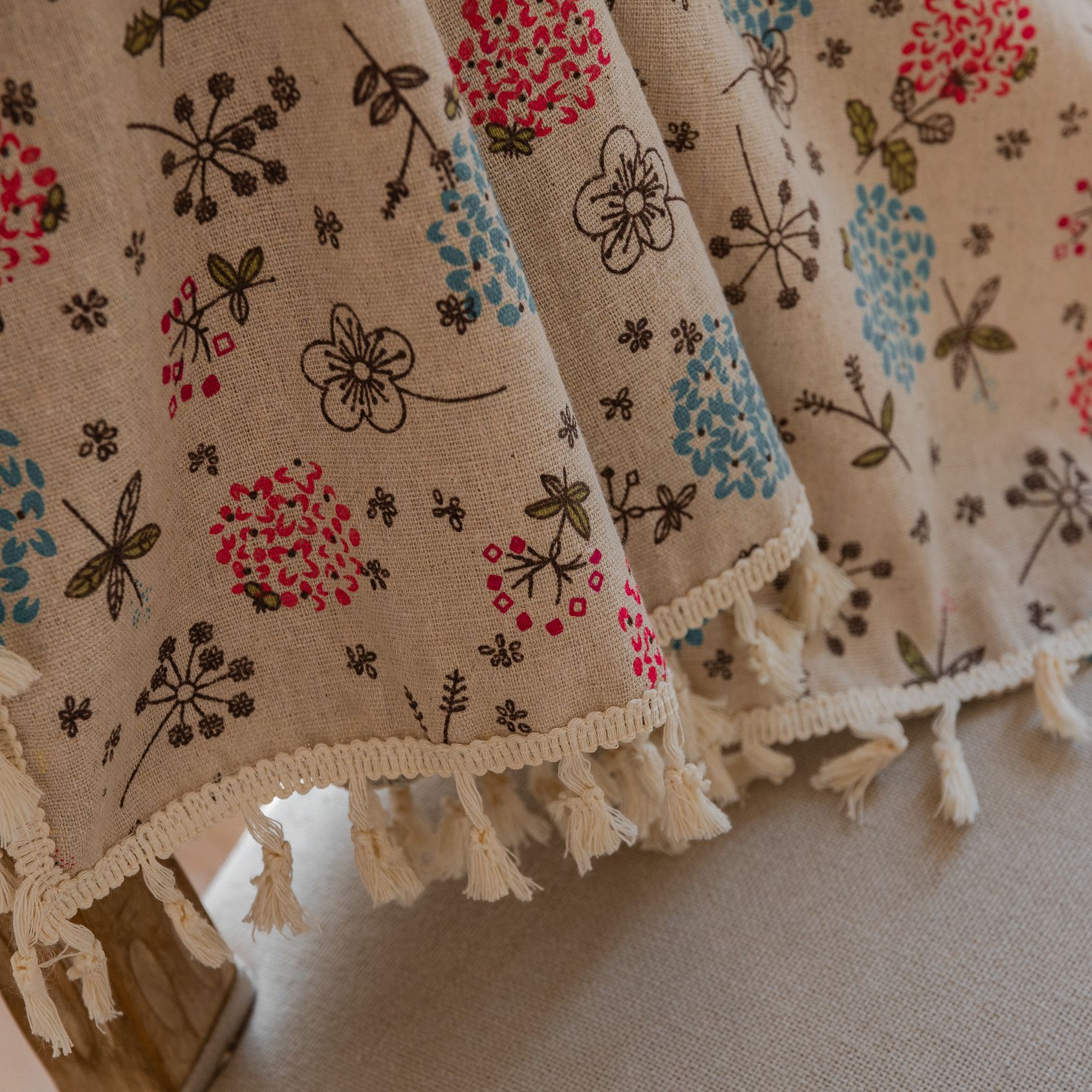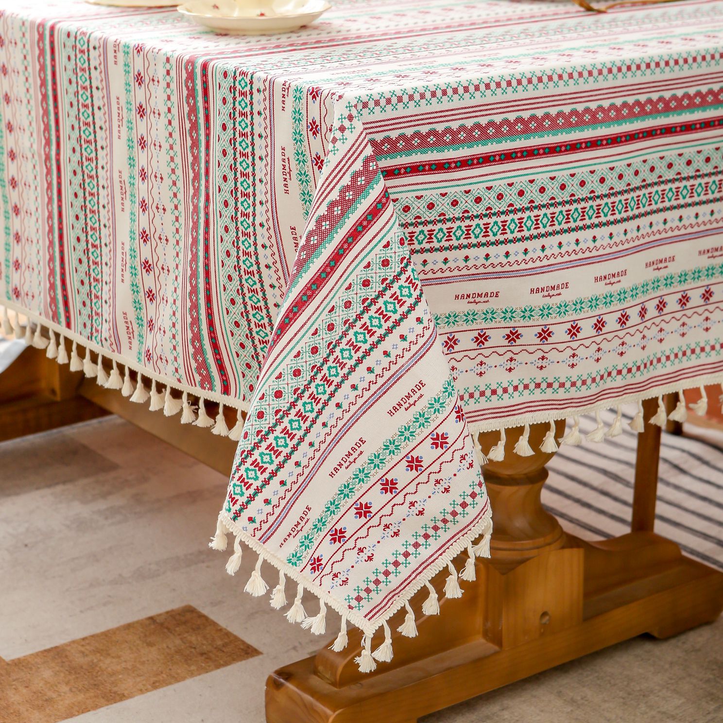 跨境法式餐桌布艺棉麻印花长方形家用大茶几盖布麻将桌子防尘台布