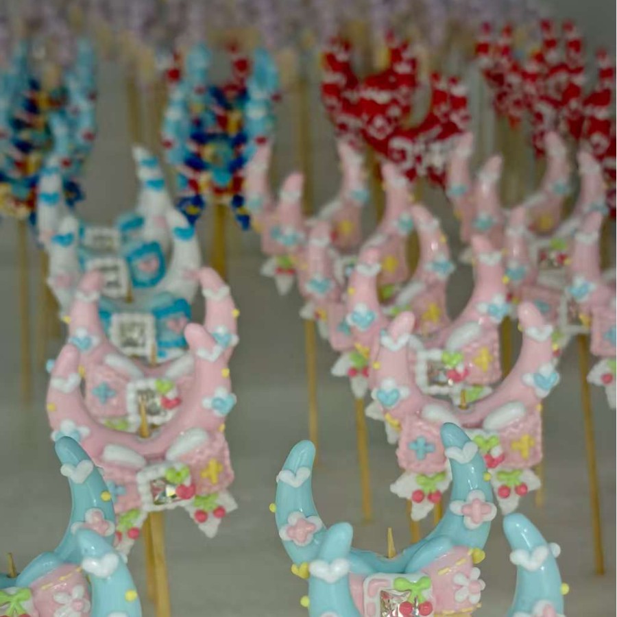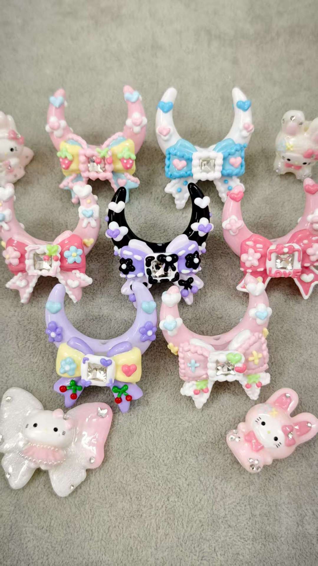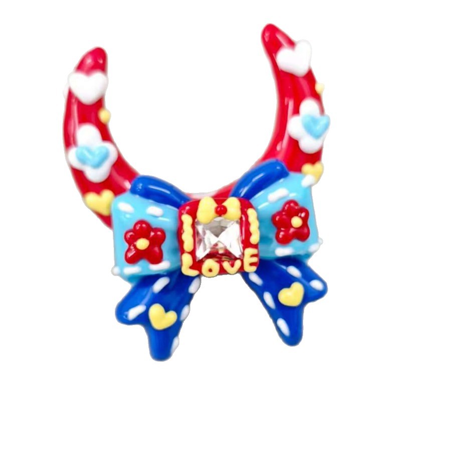2026新品手绘月亮蝴蝶结重油彩绘手绘珠奶油散珠重工异形diy配件