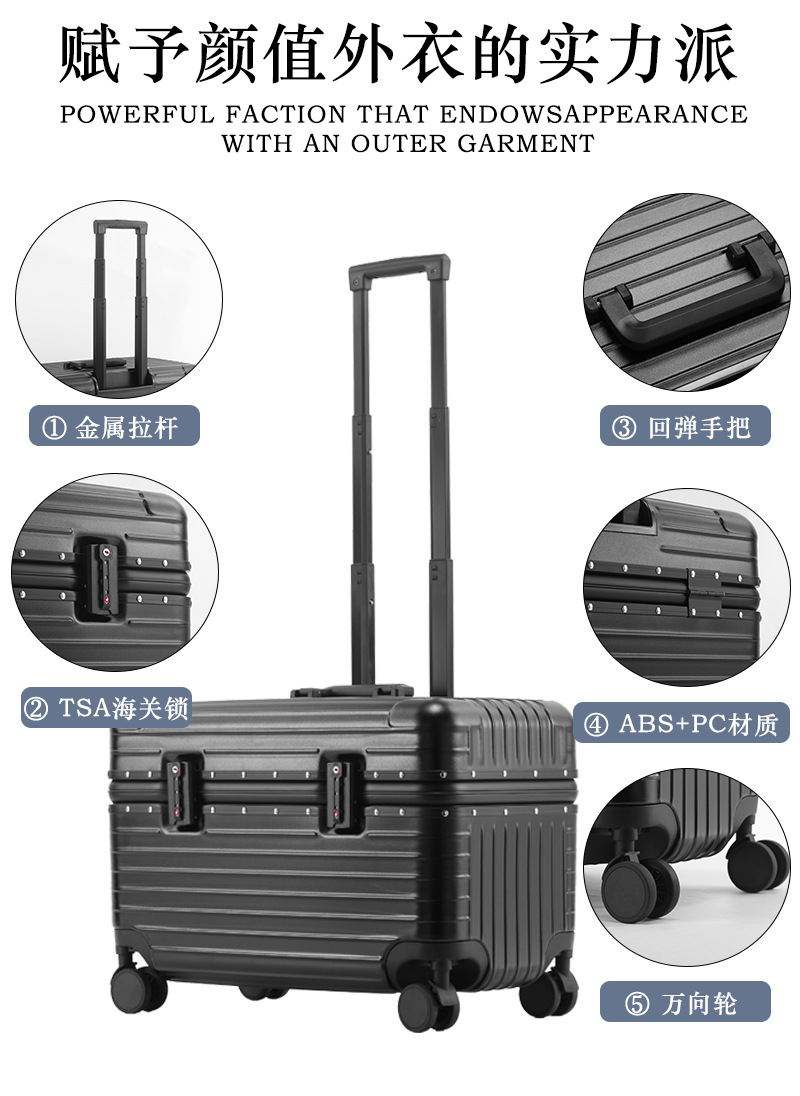 摄影拉杆行李箱上翻盖工具箱男结实耐用铝框多用途20寸旅行拉杆箱