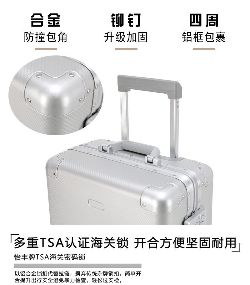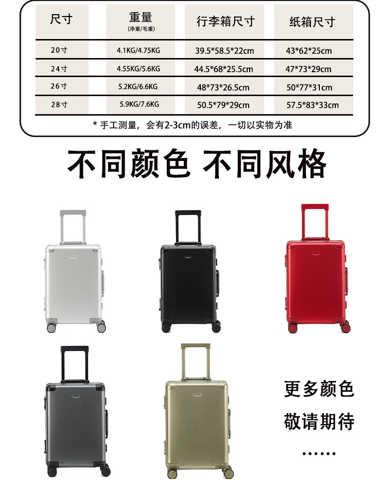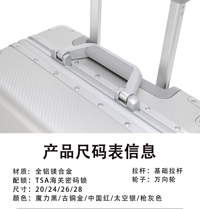 全铝镁合金行李箱20寸登机箱金属拉杆箱新款旅行箱电脑密码箱包24