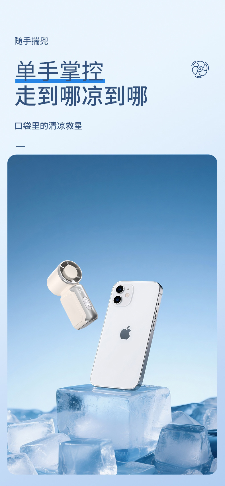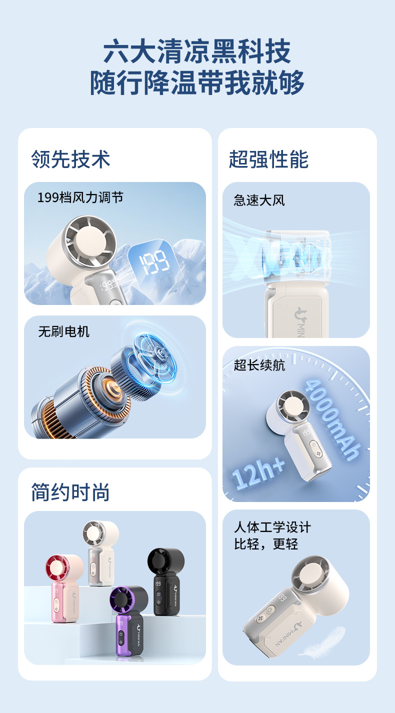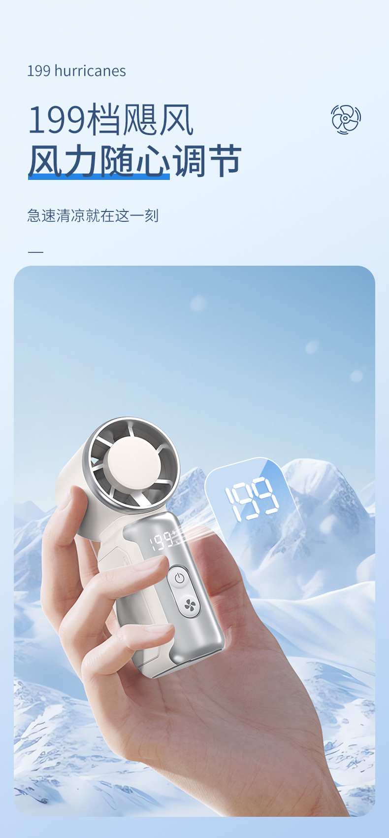 2026新款东南亚爆款便携迷你高速手持风扇涡轮强风充电Type-C挂绳