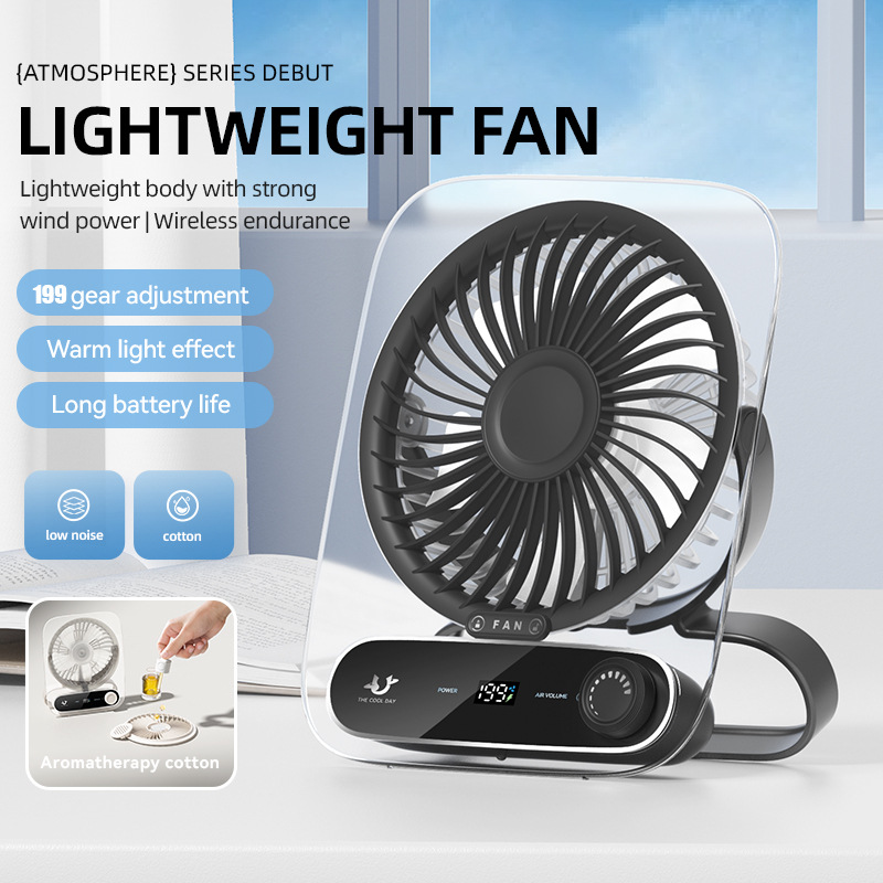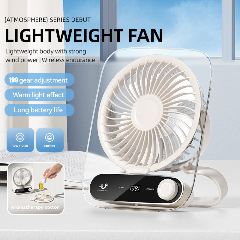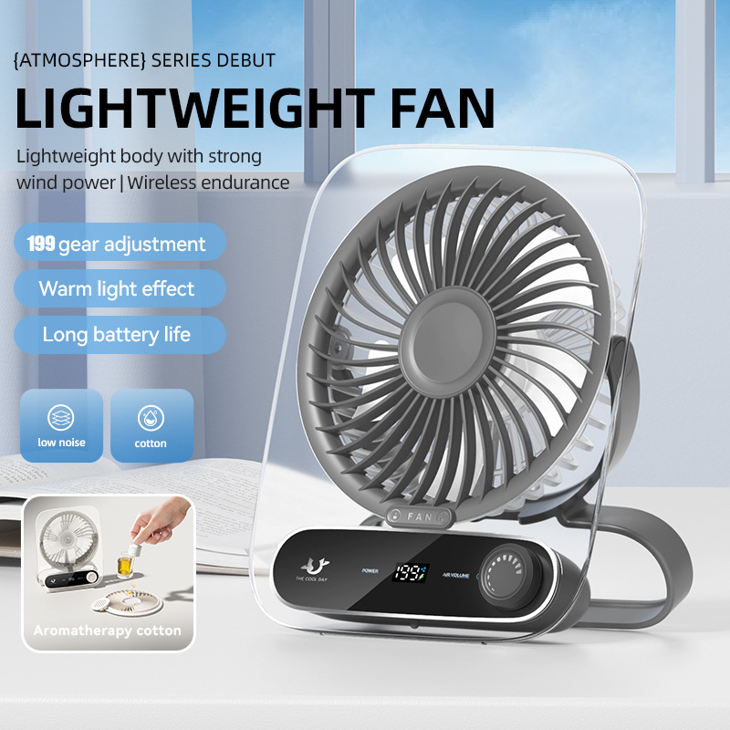 26新款桌面透明风扇便携USB充电静音199档调速家用多功能挂立风扇