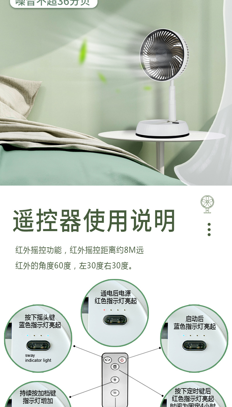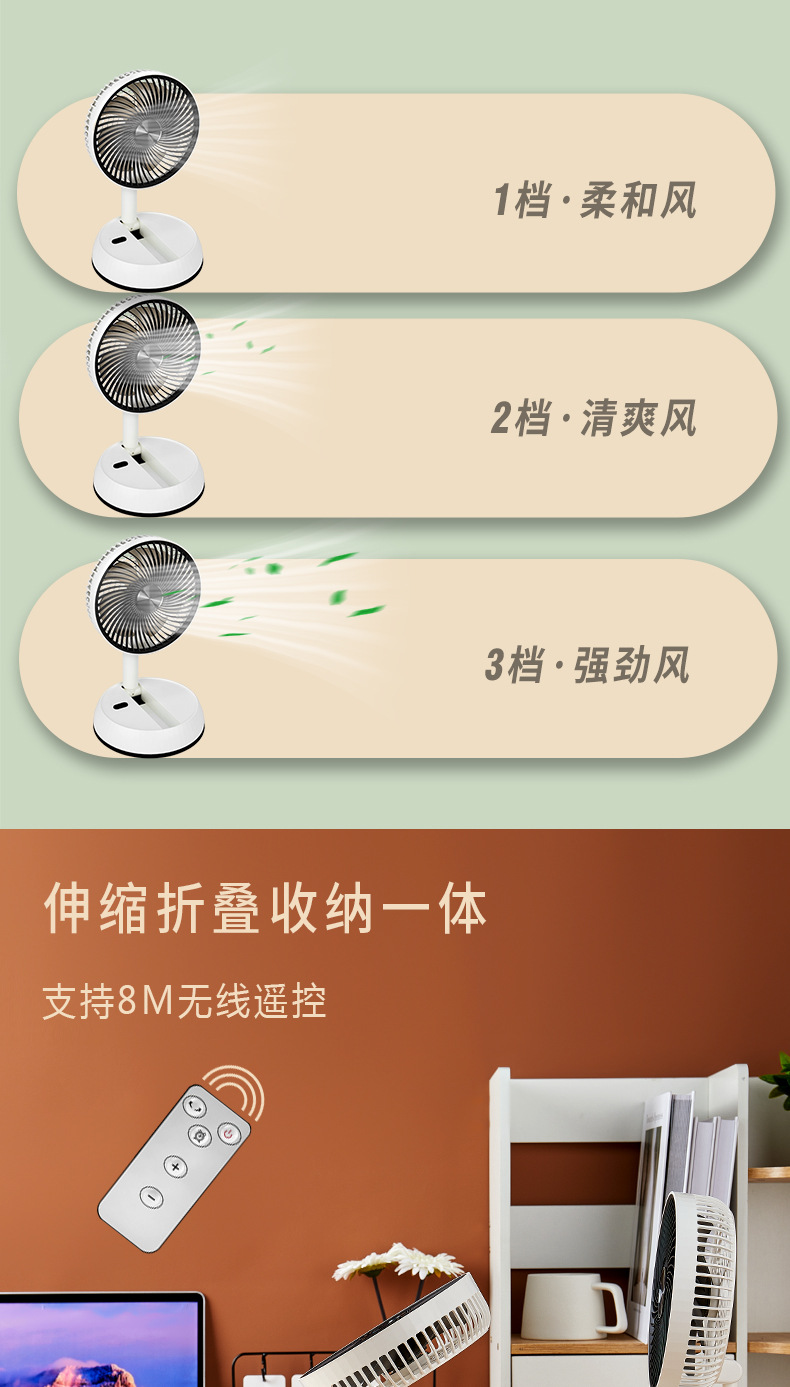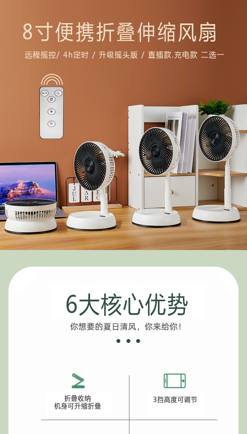 亚马逊新款风扇易收纳户外摇头摇控风扇充电桌地两用静音风扇