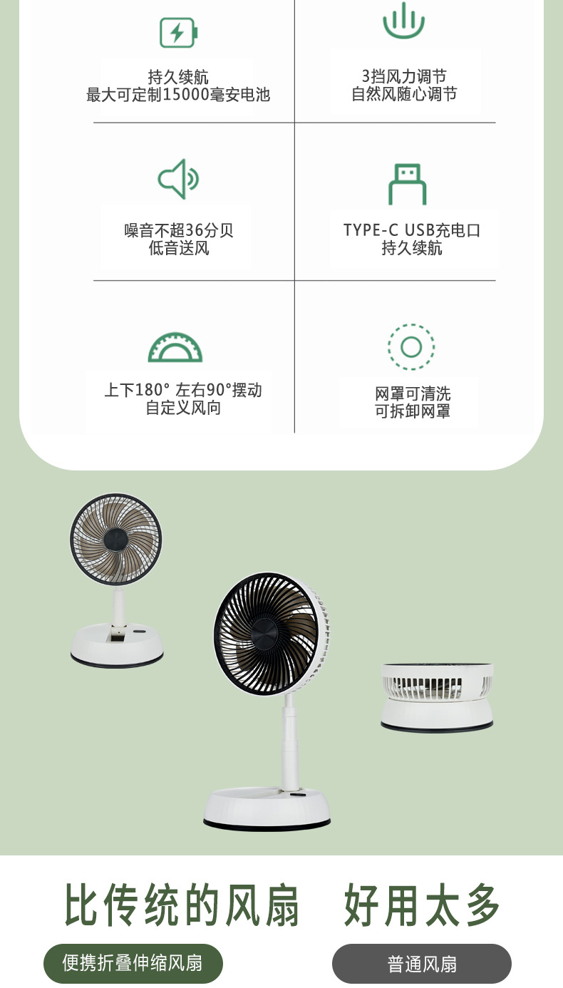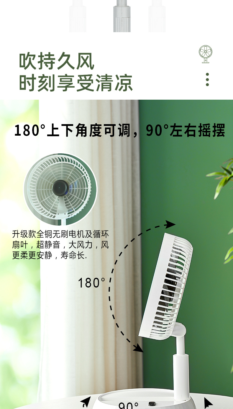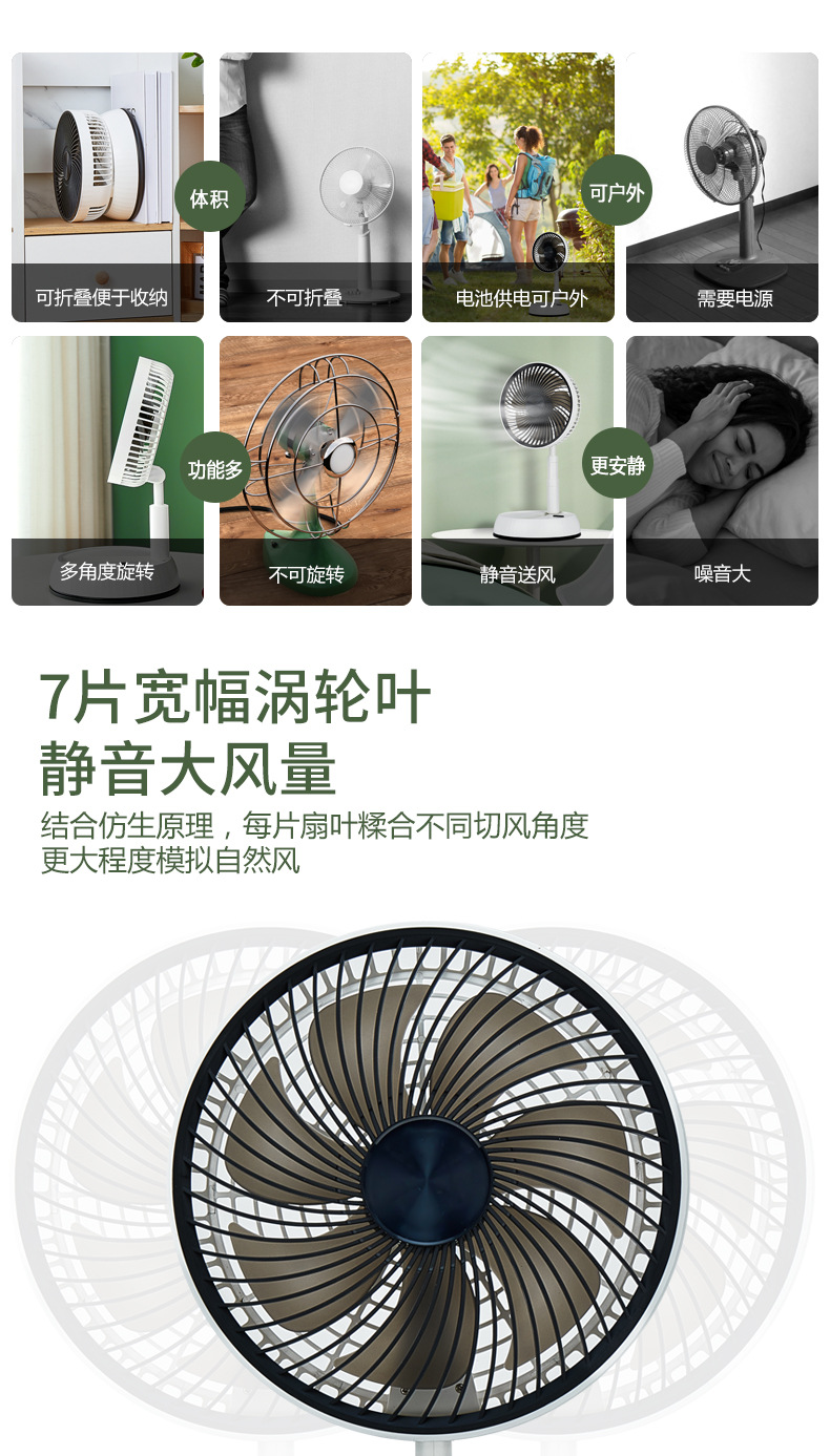 亚马逊新款风扇易收纳户外摇头摇控风扇充电桌地两用静音风扇
