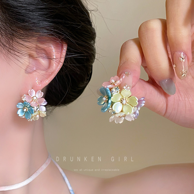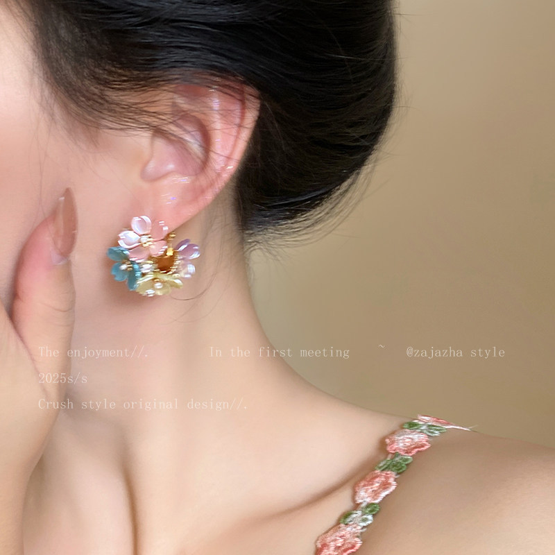 春夏多巴胺甜美彩色花朵耳钉高级感气质耳环2026新款氛围感耳饰女