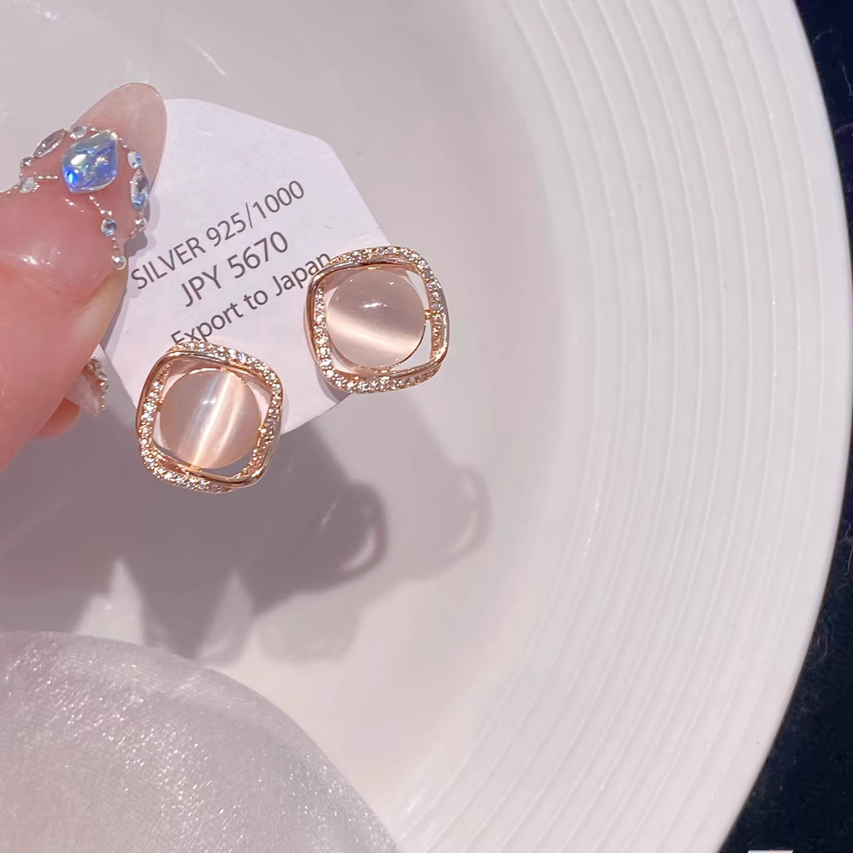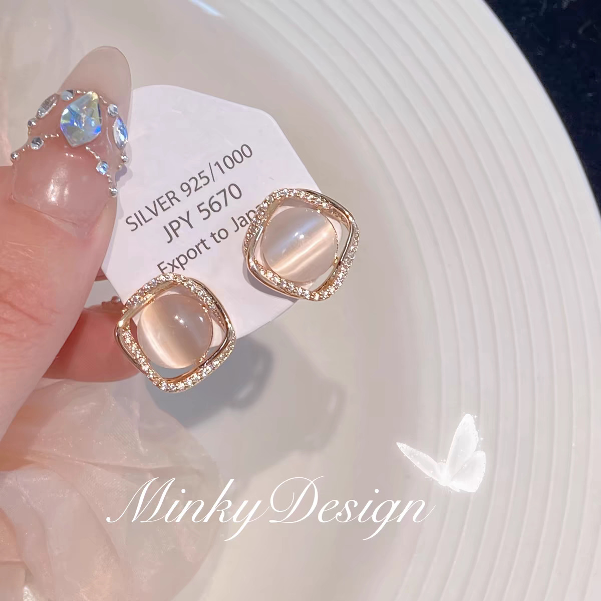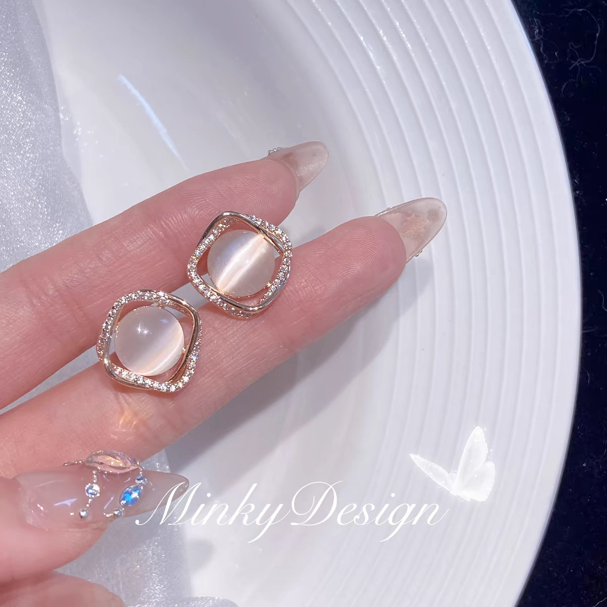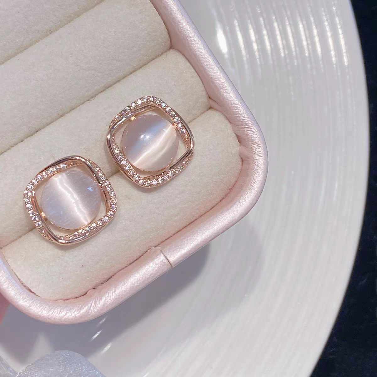 精致爆闪猫眼石耳钉女轻奢小众高级感甜美气质几何形耳环网红耳饰