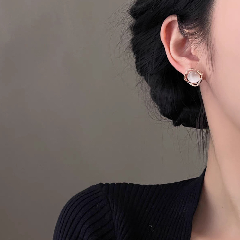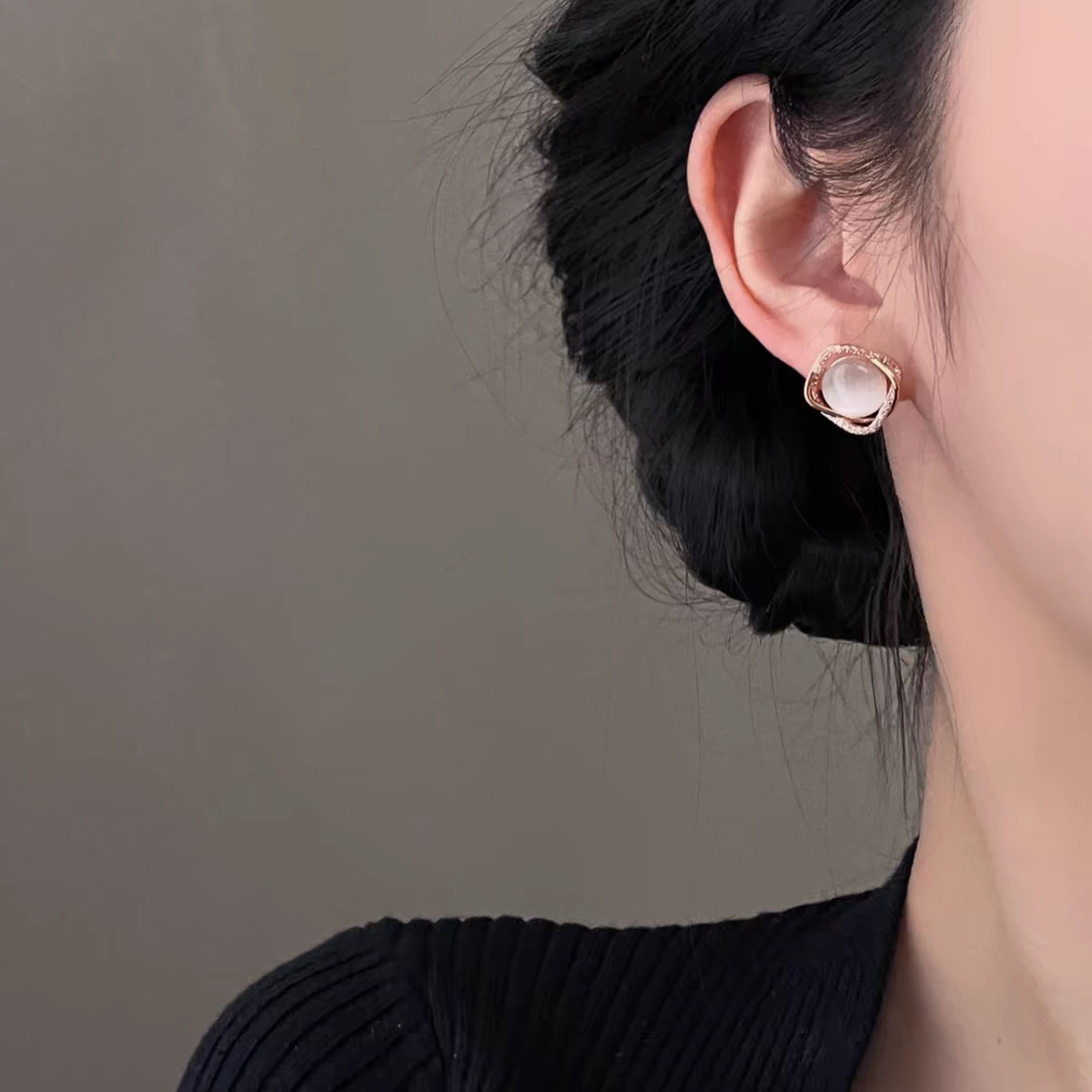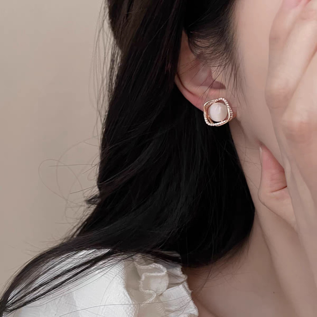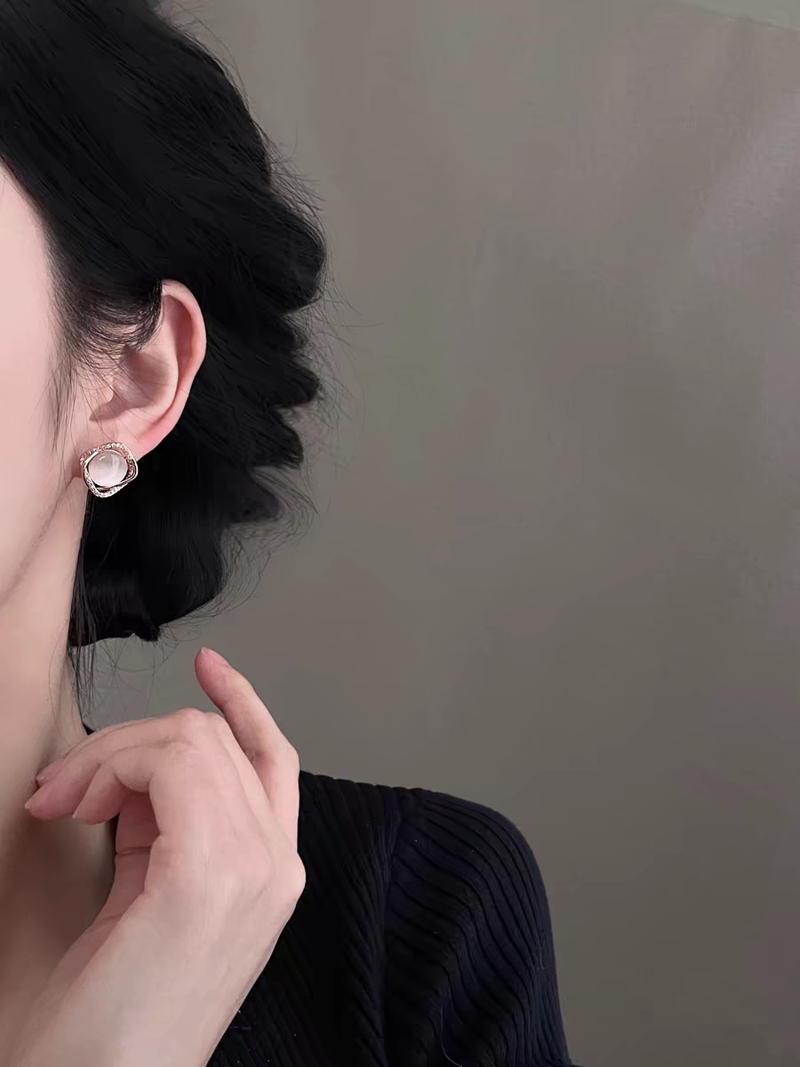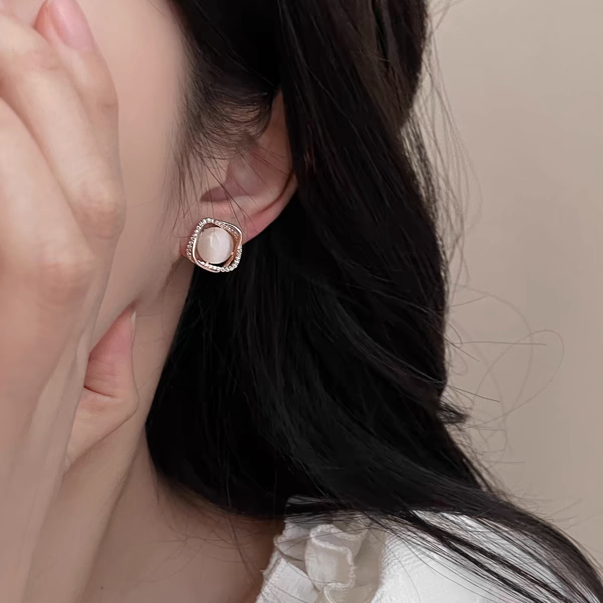精致爆闪猫眼石耳钉女轻奢小众高级感甜美气质几何形耳环网红耳饰
