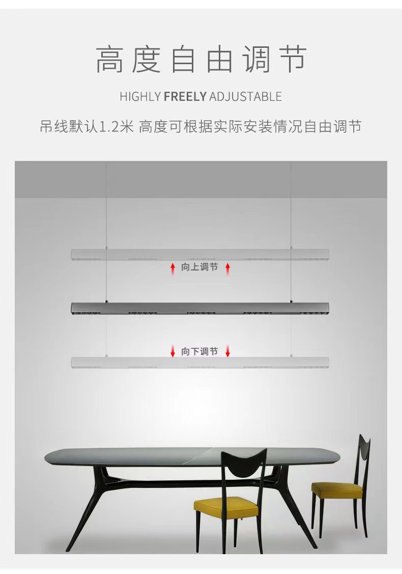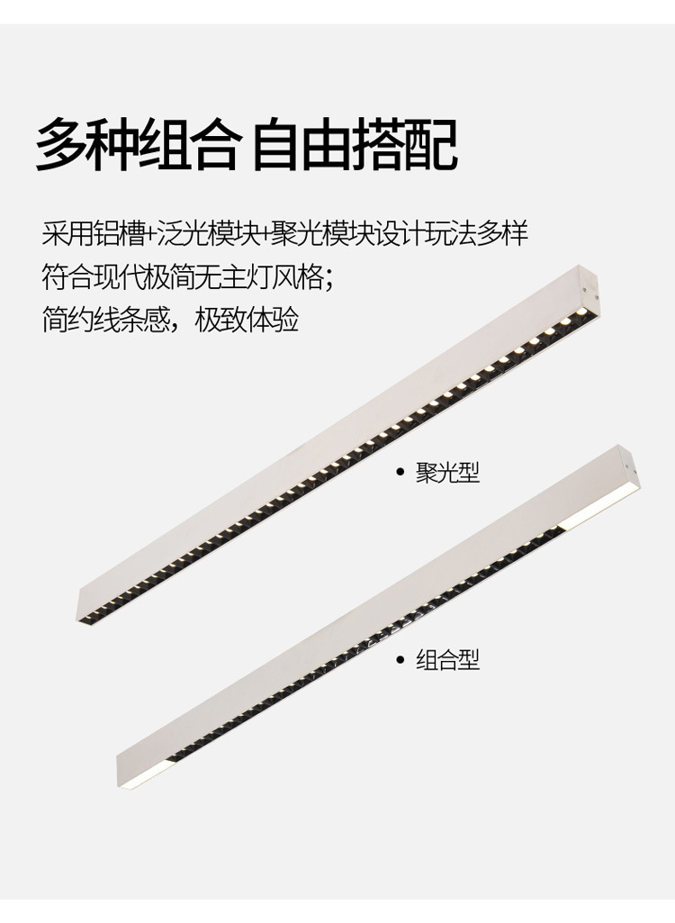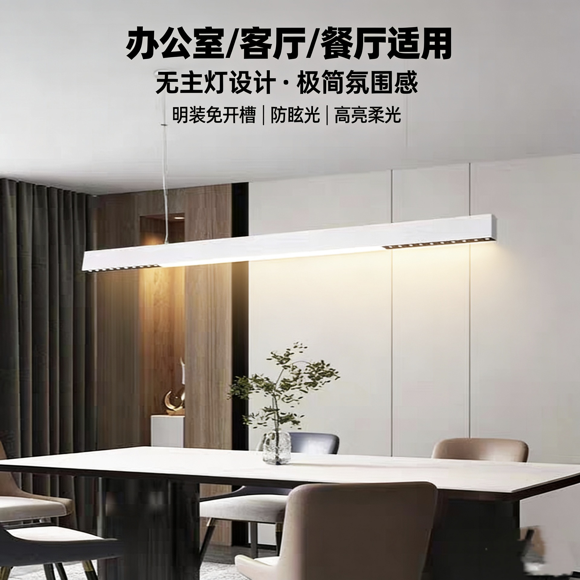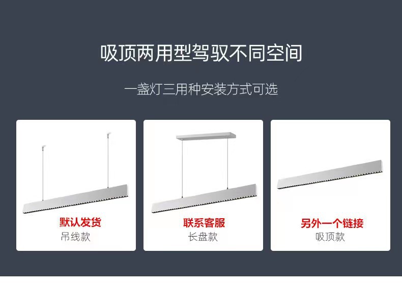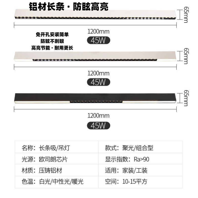 LED明装长条格栅灯 吸顶防眩客厅餐厅办公室无主灯一字型吊灯批发