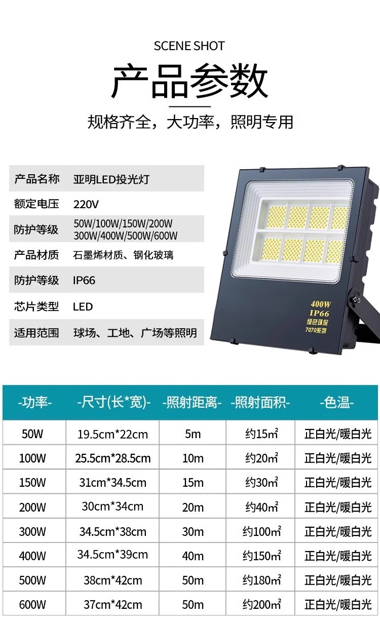 亚明LED投光灯 户外防水泛光灯工程车间厂房射灯100w广告牌照明灯