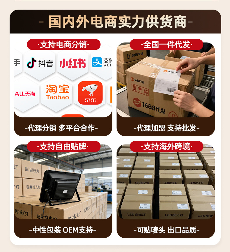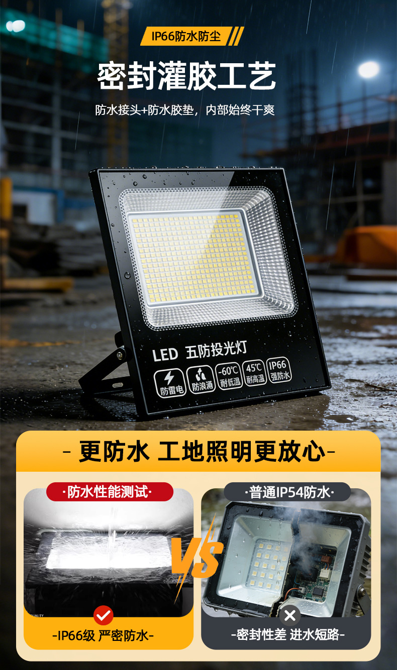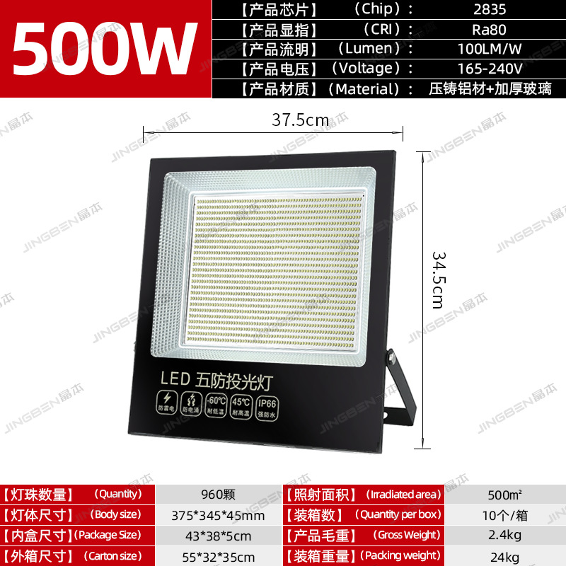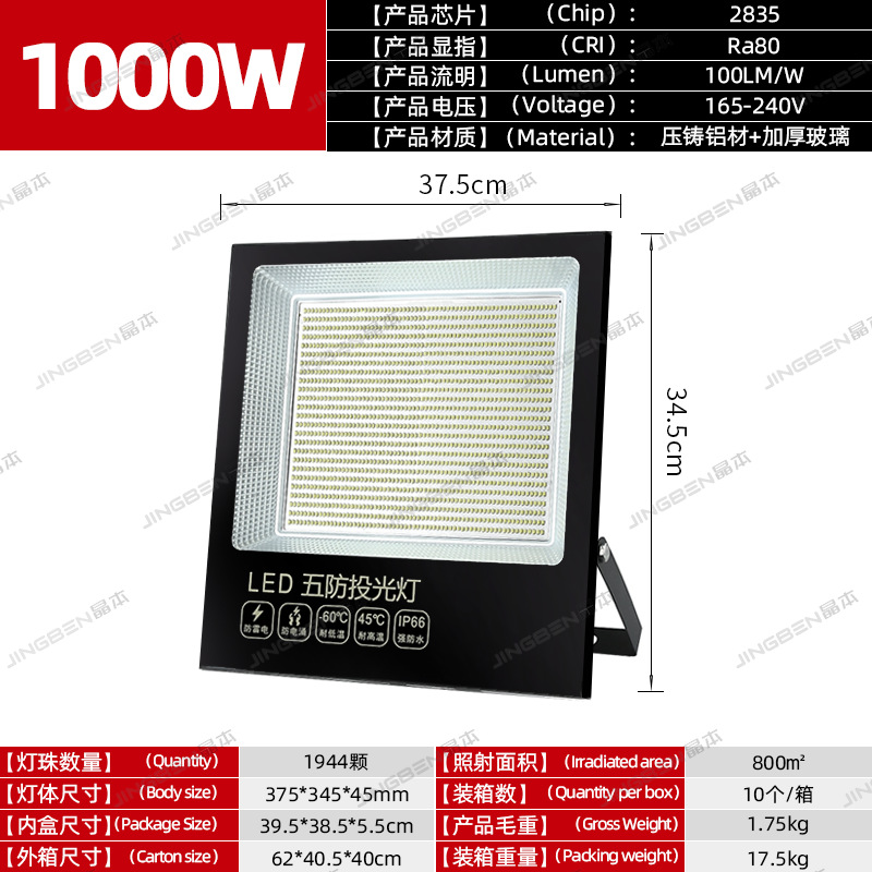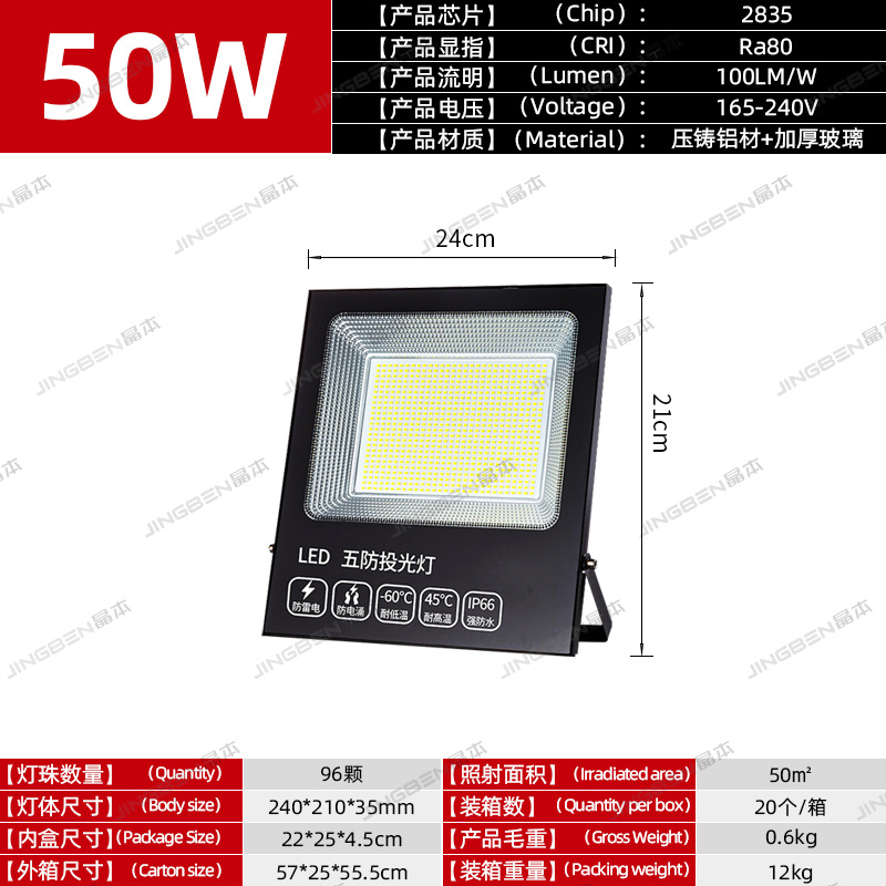 led方形投光灯强光超亮探照灯户外防水射灯工程工地大面积照明灯