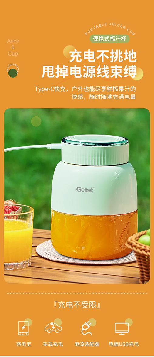 德国品牌/Gemet榨汁杯0.5L大容量家用无线式便携榨汁机小型吨吨杯