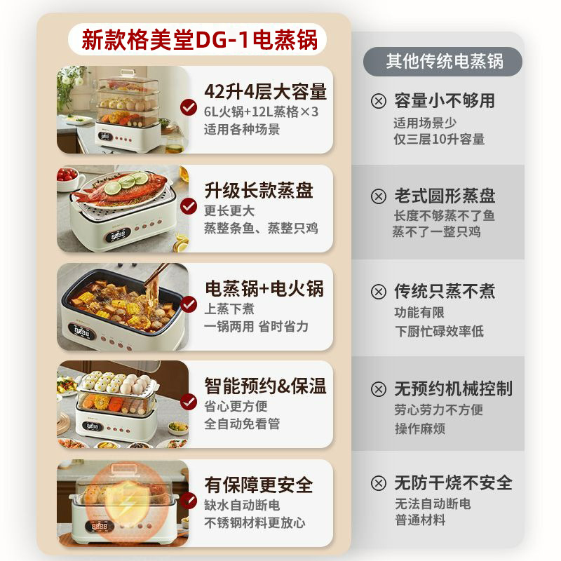 德国品牌Gemet电蒸锅42L大容量多功能蒸煮4层家用智能电蒸火锅