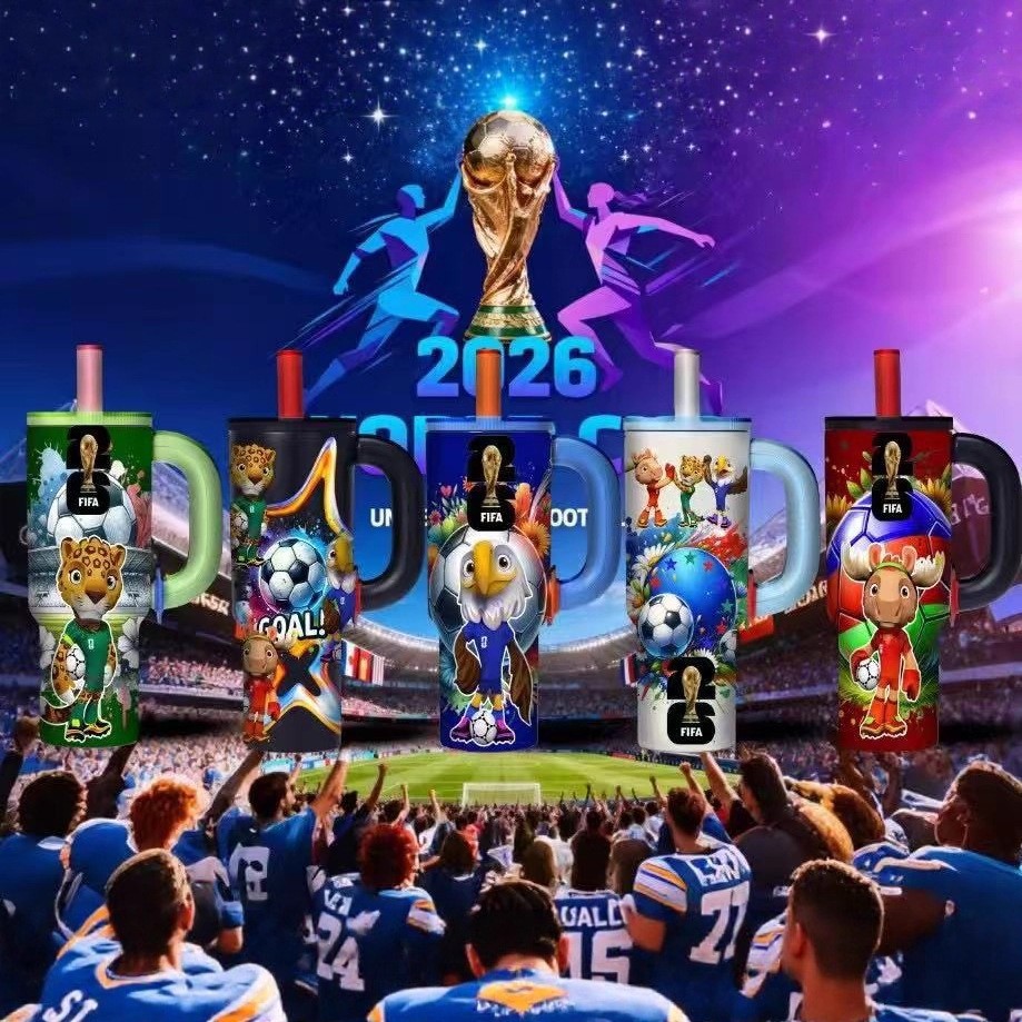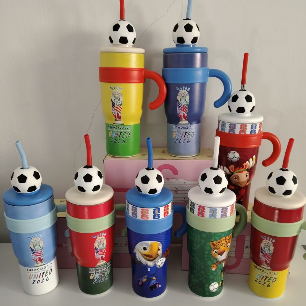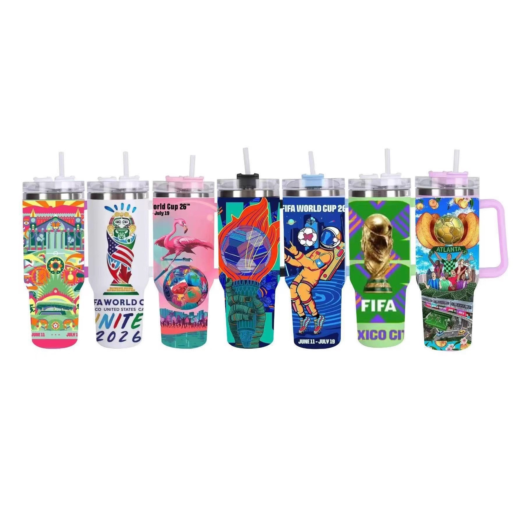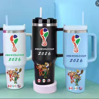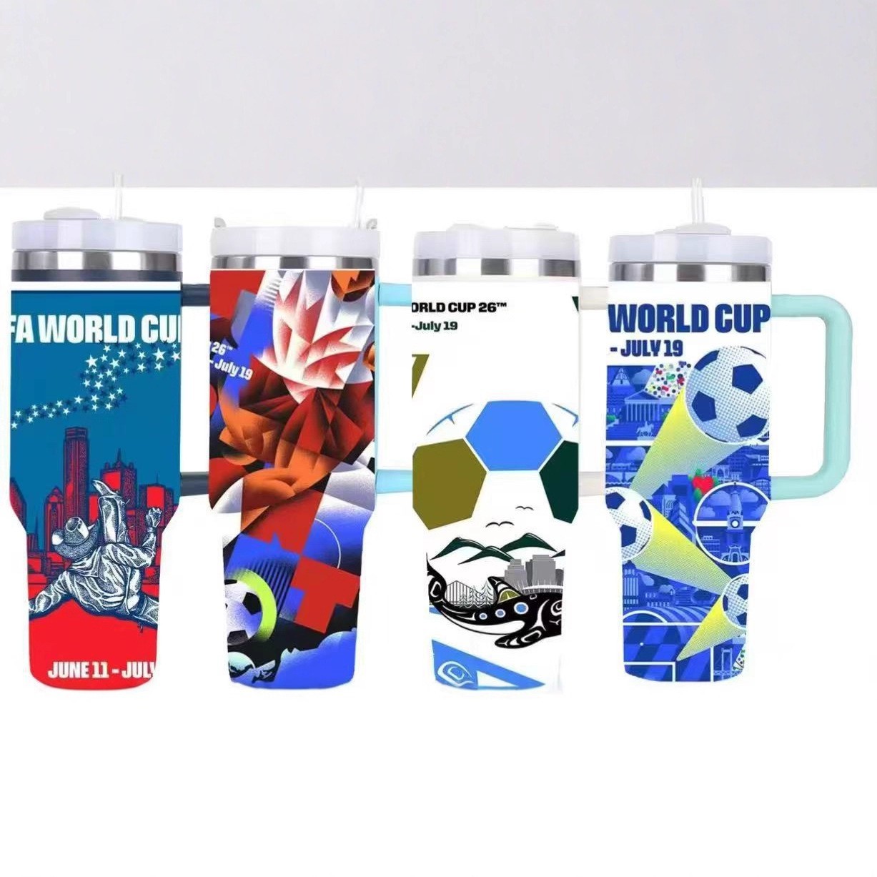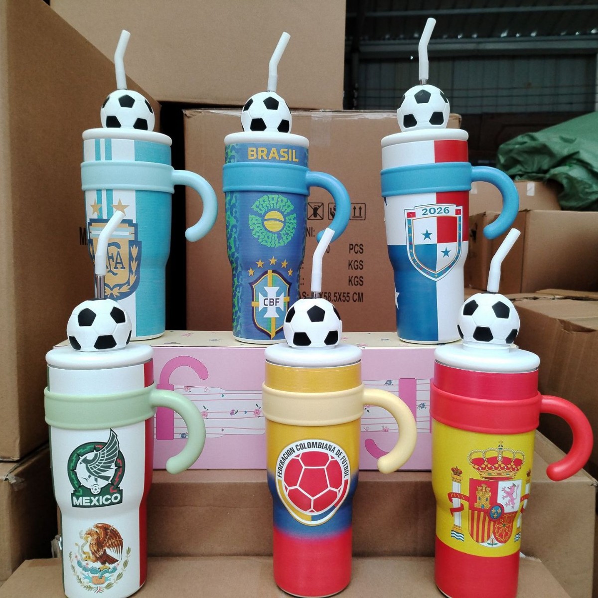 新款2026世界杯系列大容量40oz汽车杯带手柄足球冰霸杯