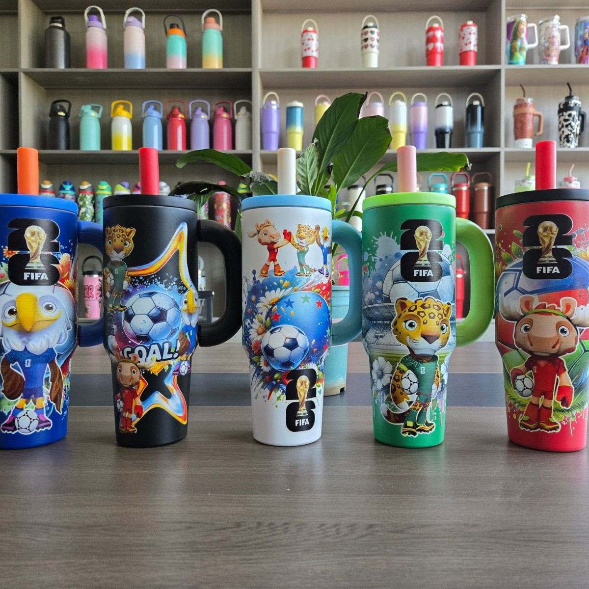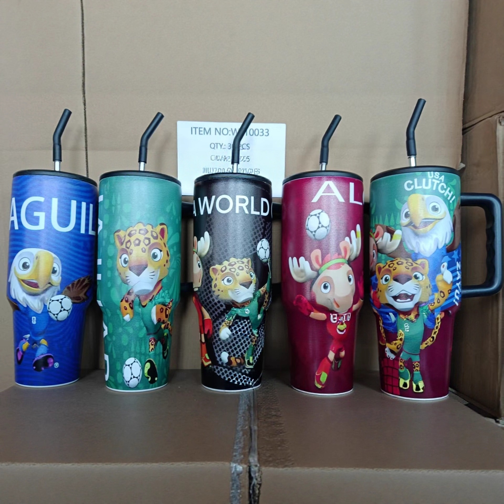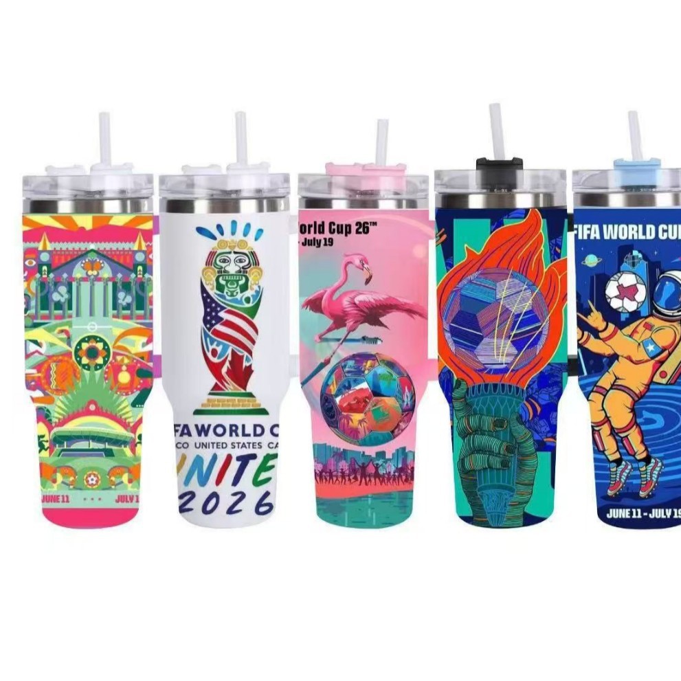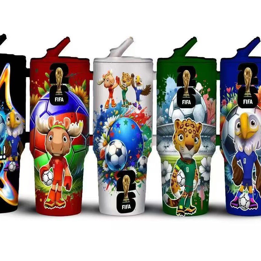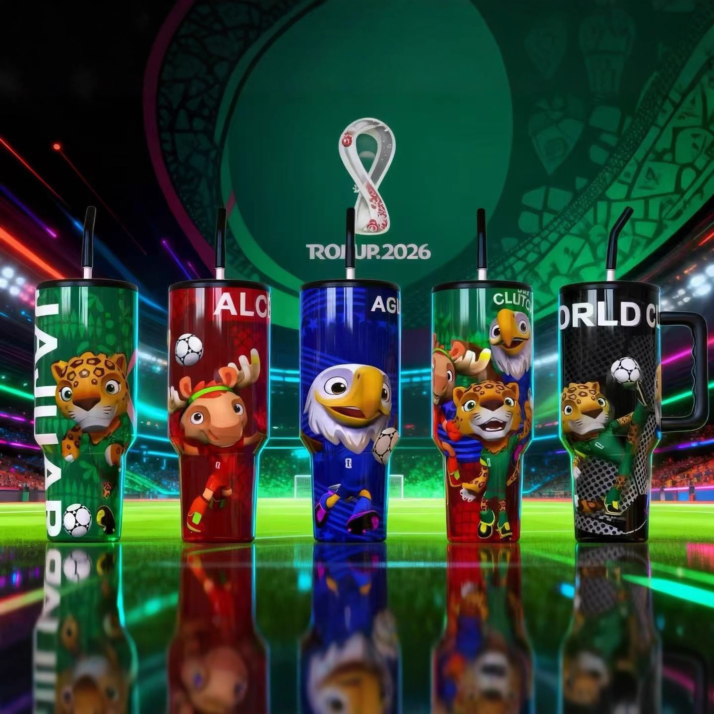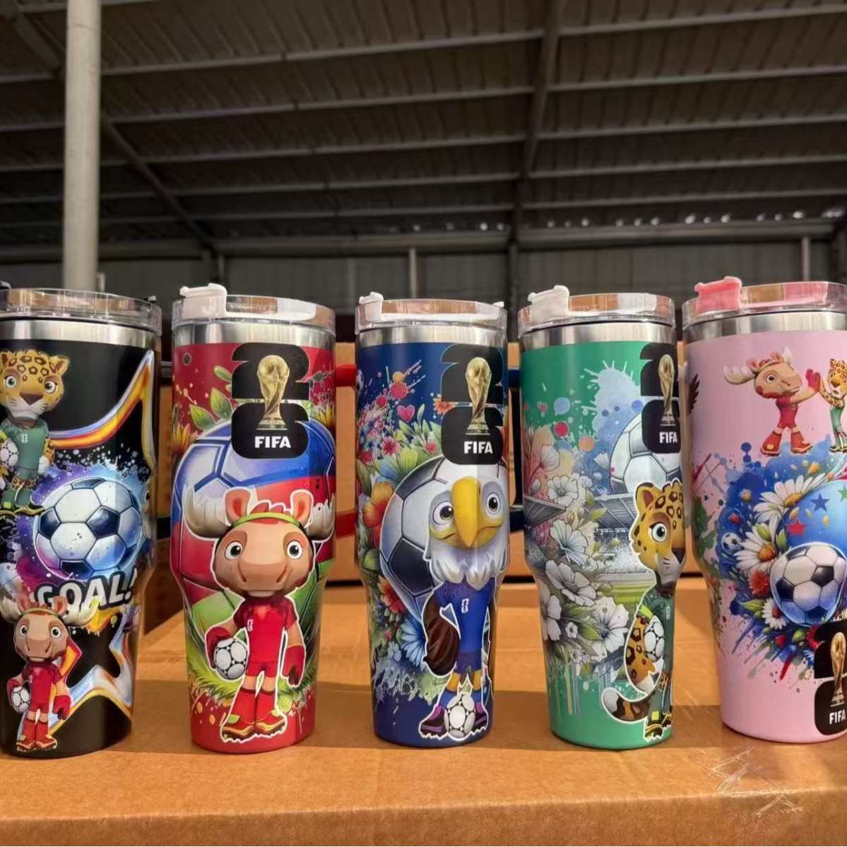 新款2026世界杯系列大容量40oz汽车杯带手柄足球冰霸杯