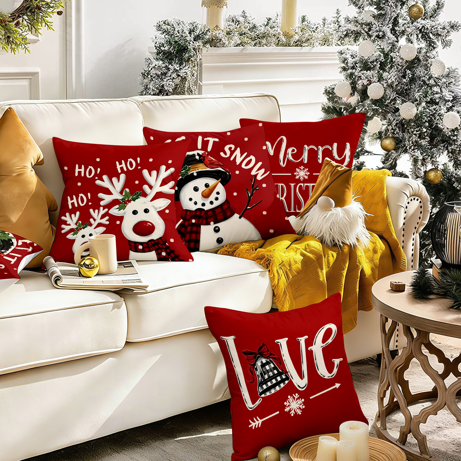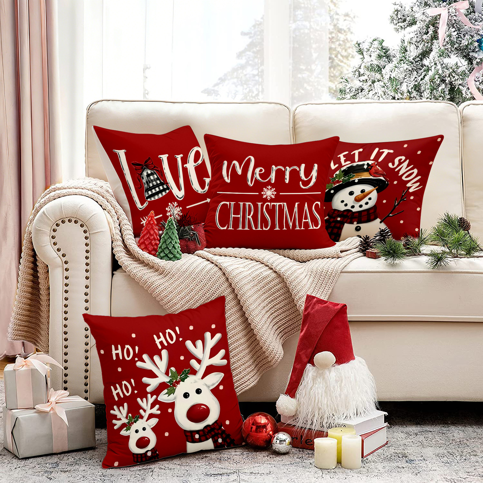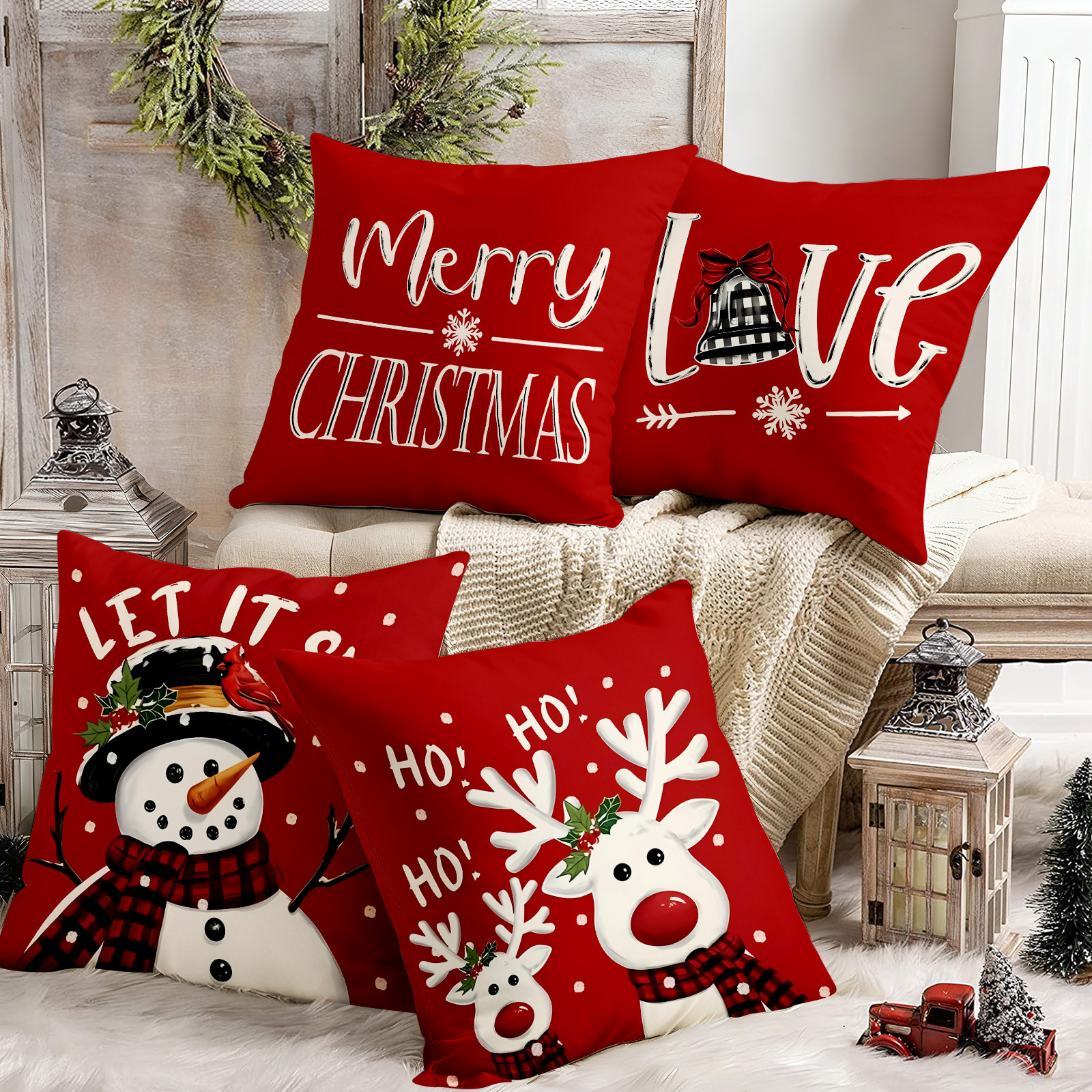 圣诞抱枕节日礼物氛围感节日温馨圣诞雪人数码印花居家卧室靠垫套