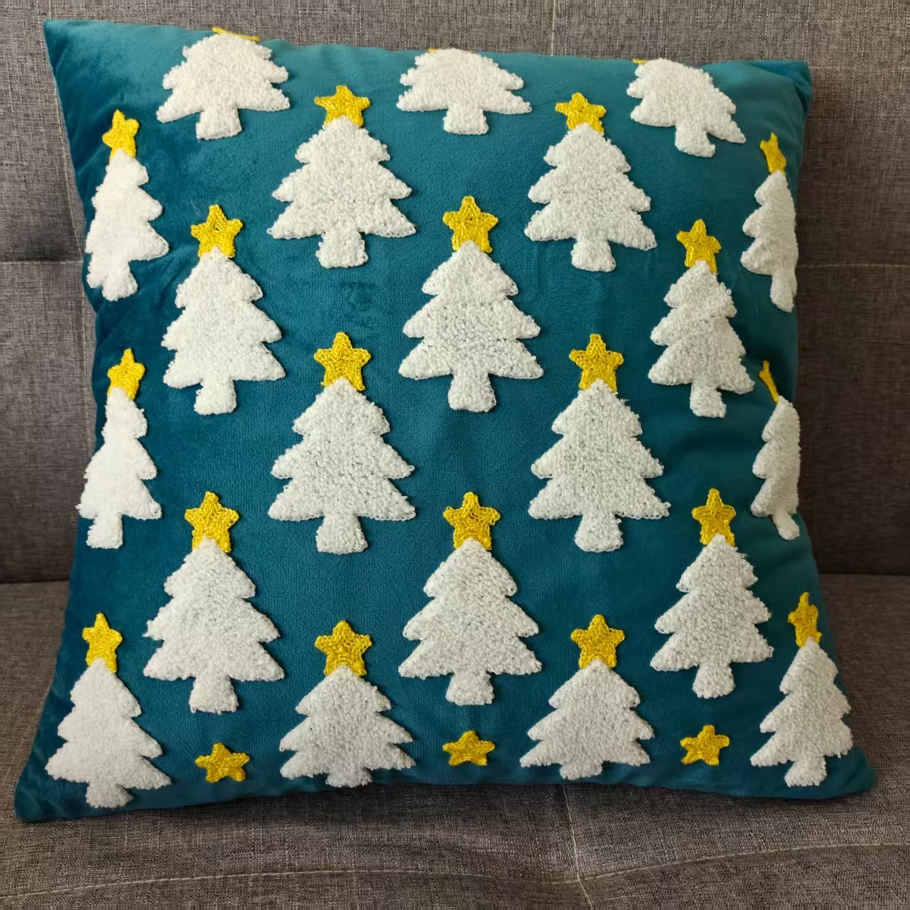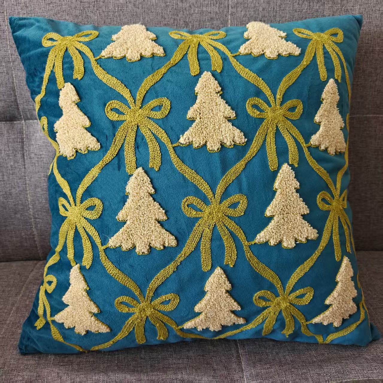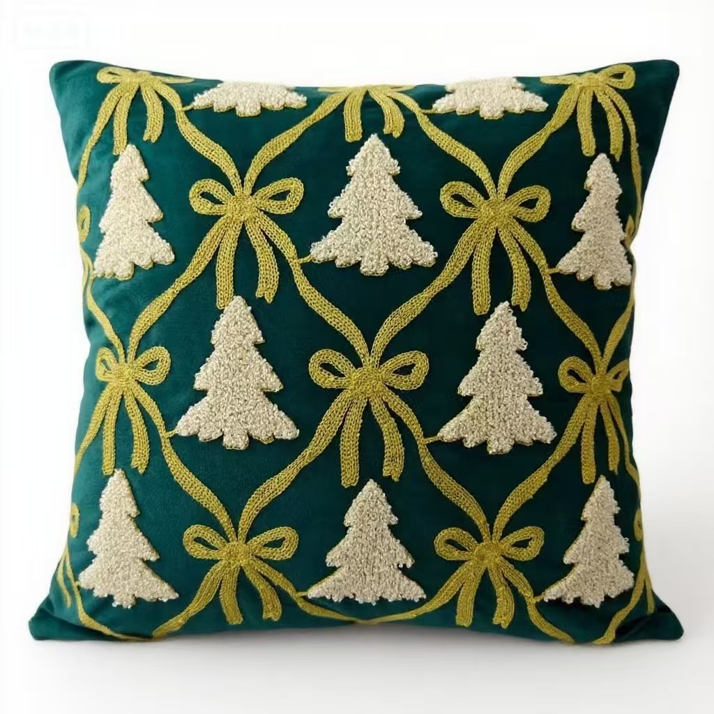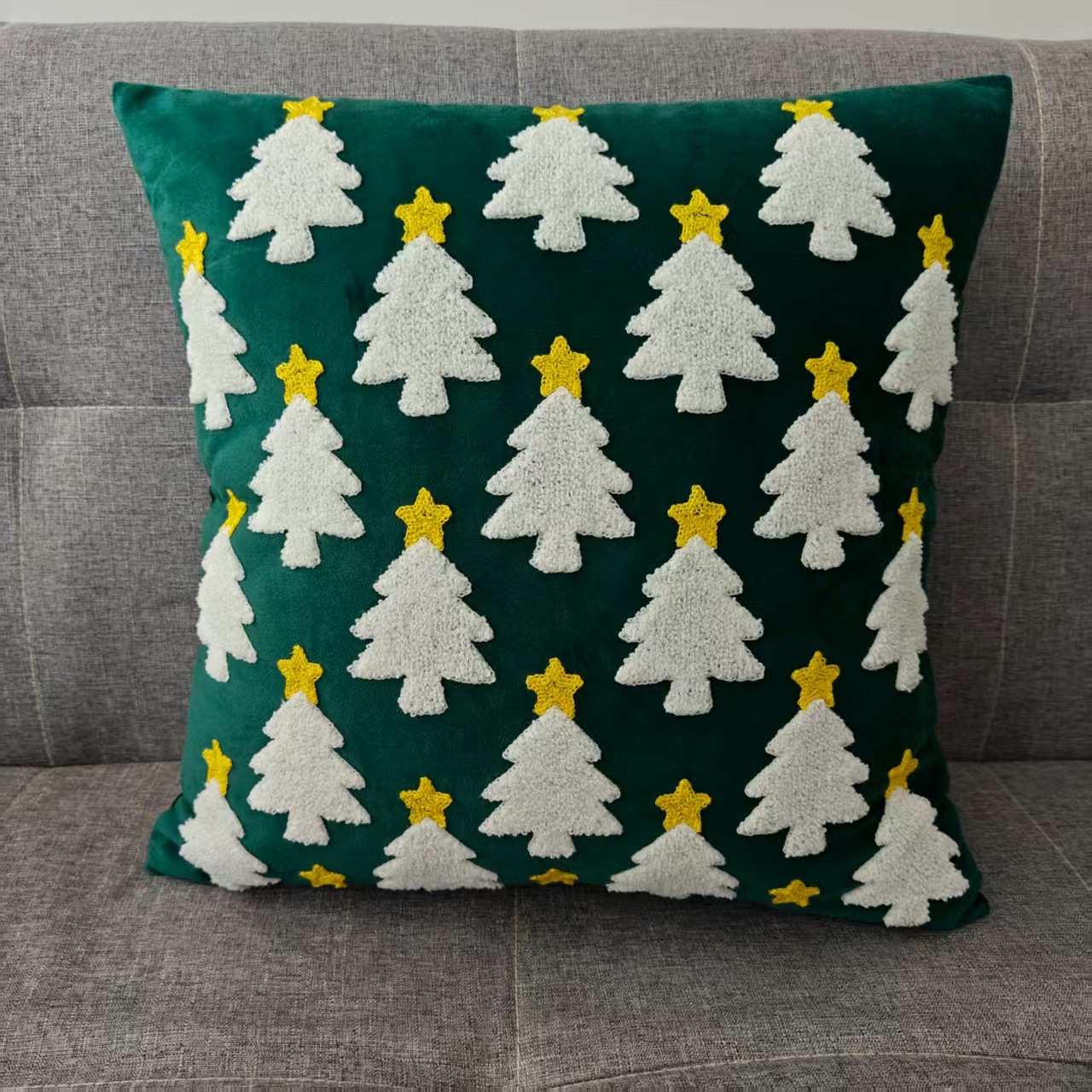 亚马逊圣诞系列刺绣天鹅绒抱枕套客厅沙发靠垫靠枕套装饰跨境批发