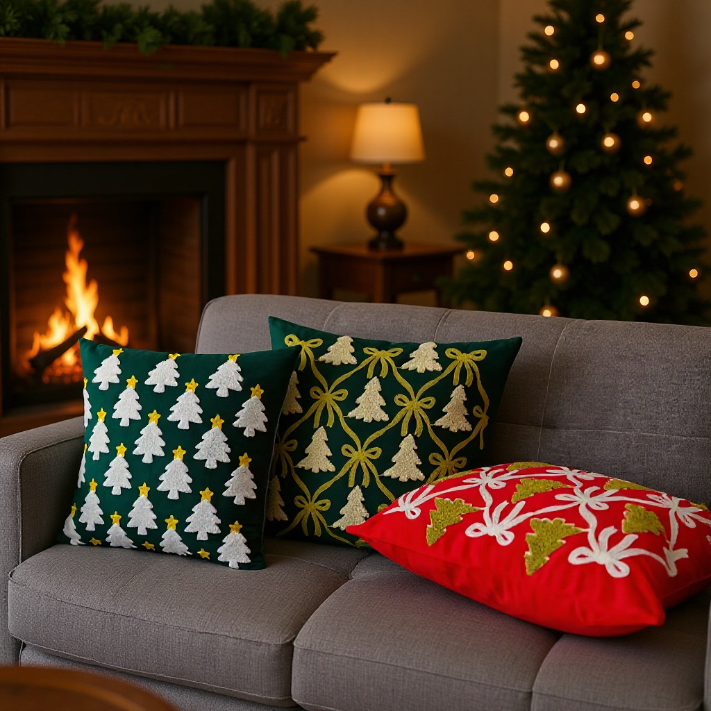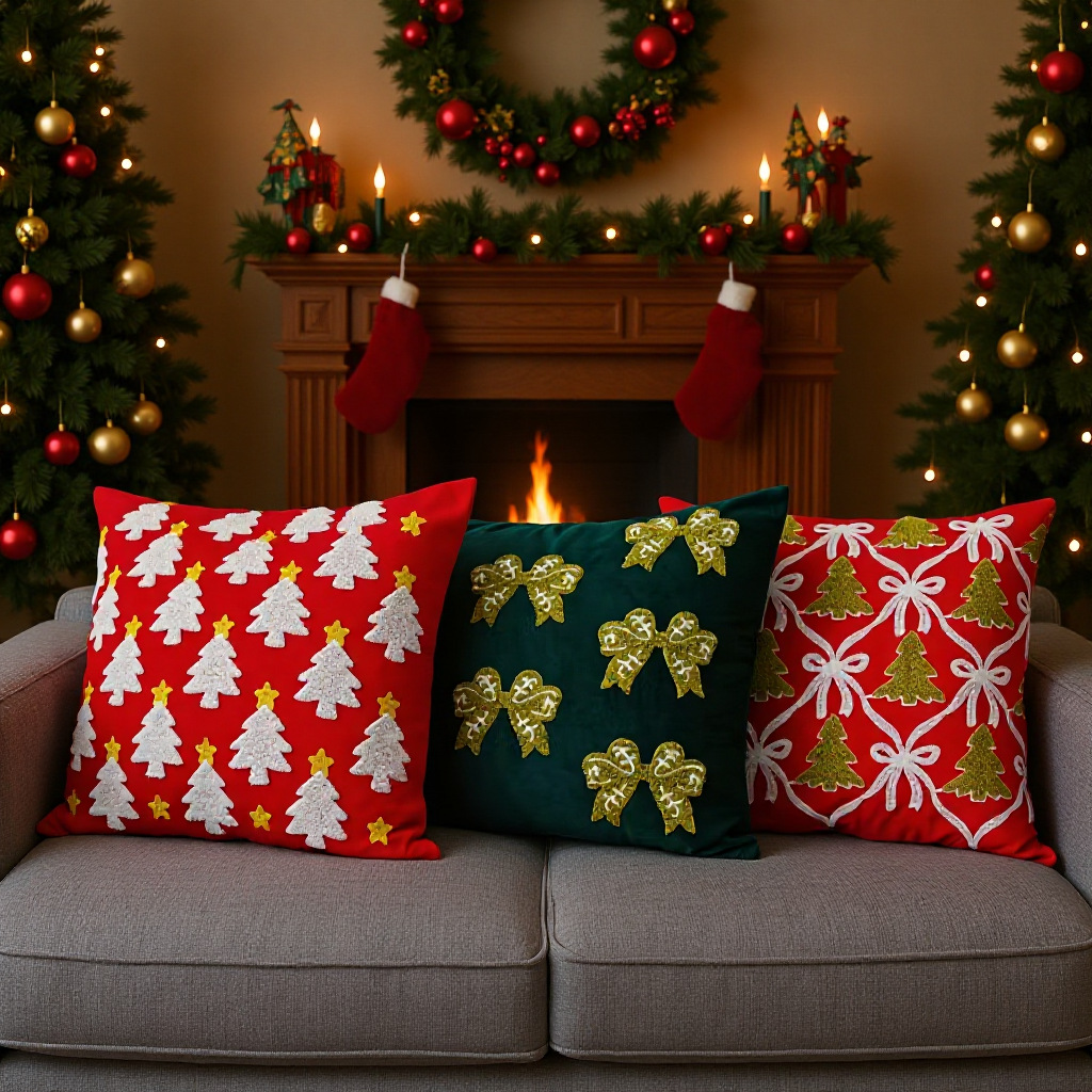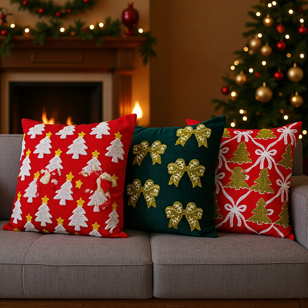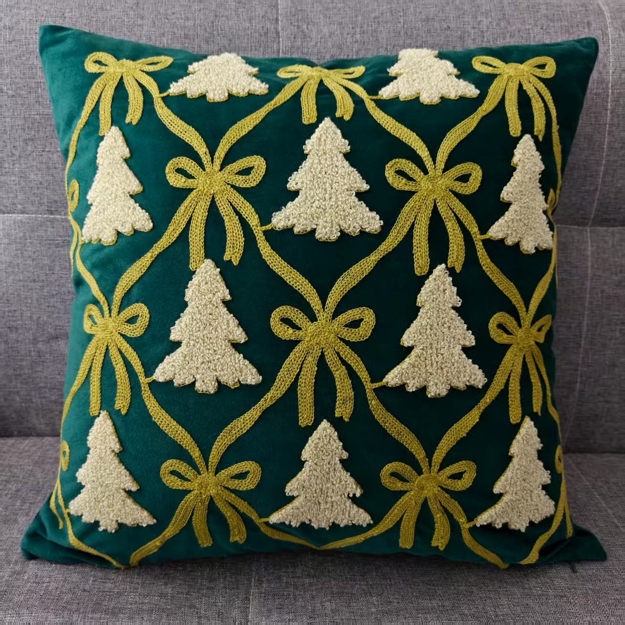 亚马逊圣诞系列刺绣天鹅绒抱枕套客厅沙发靠垫靠枕套装饰跨境批发