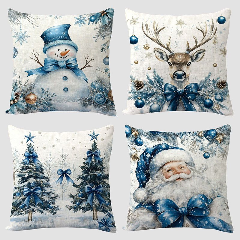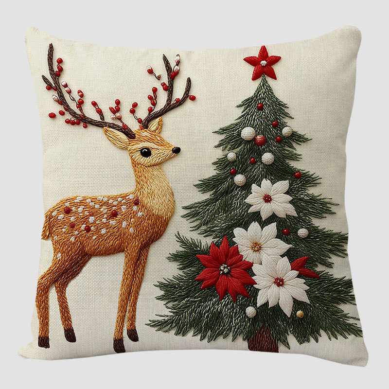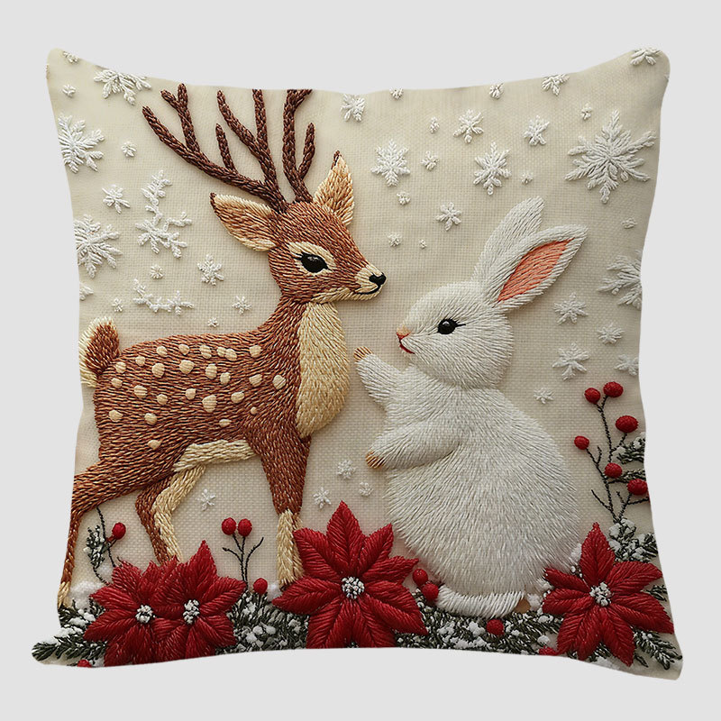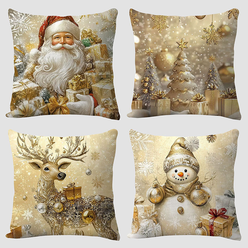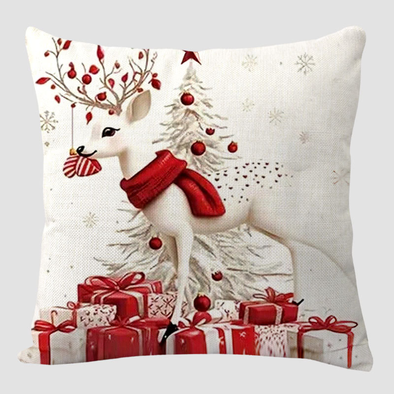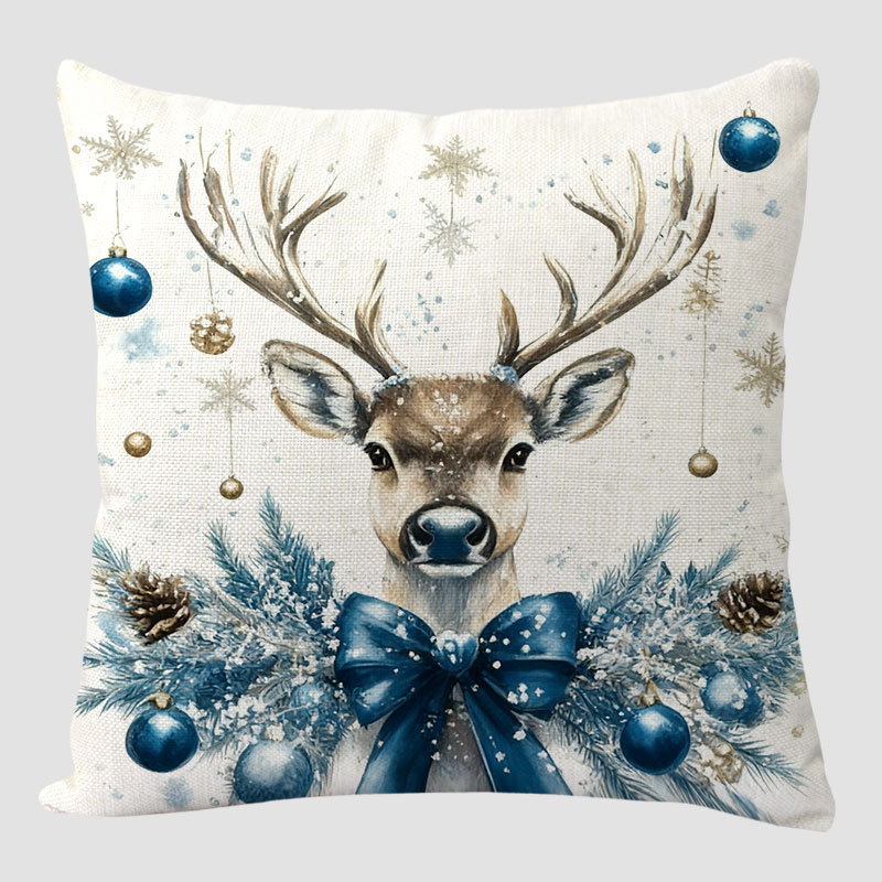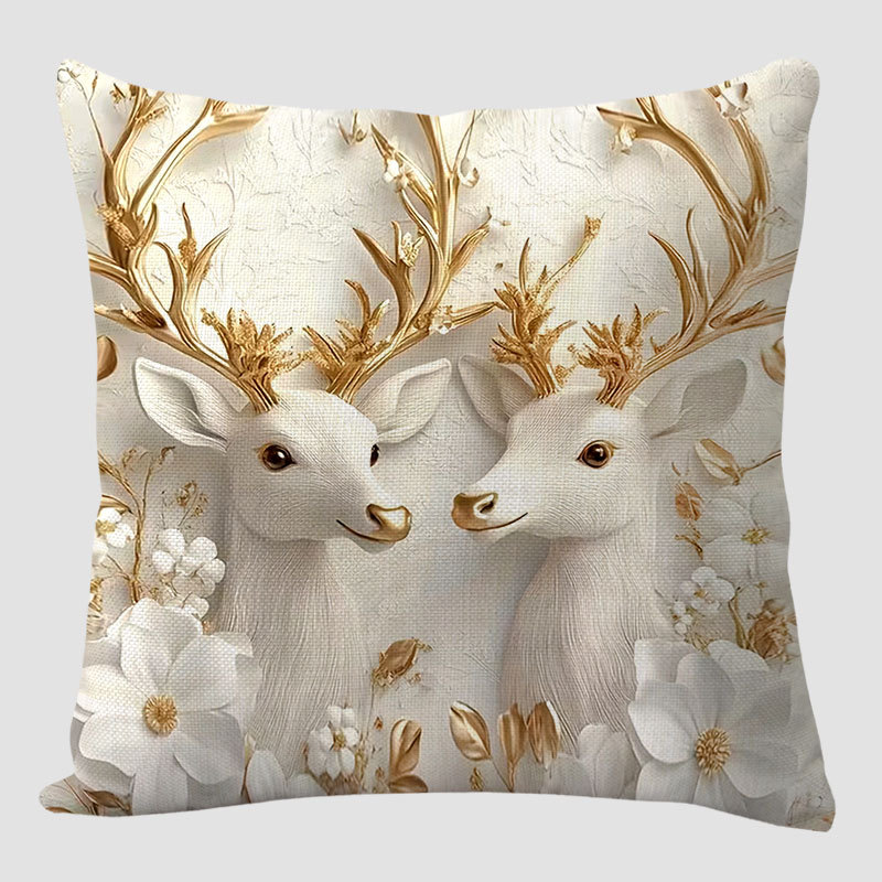 粉色麋鹿圣诞节抱枕套亚麻桃皮绒印花节日装饰客厅沙发靠垫套靠枕