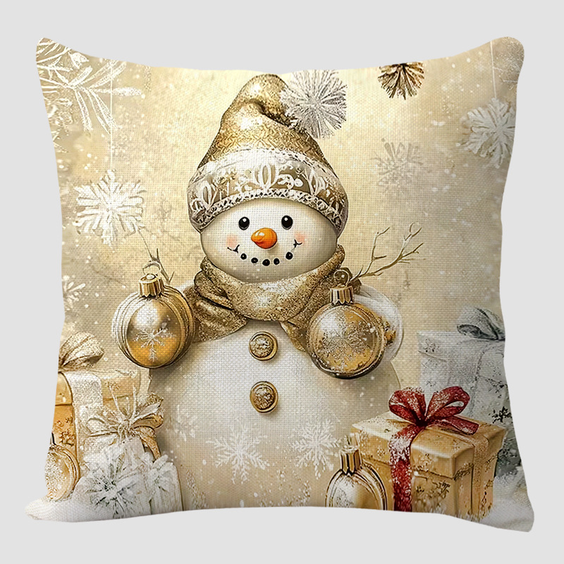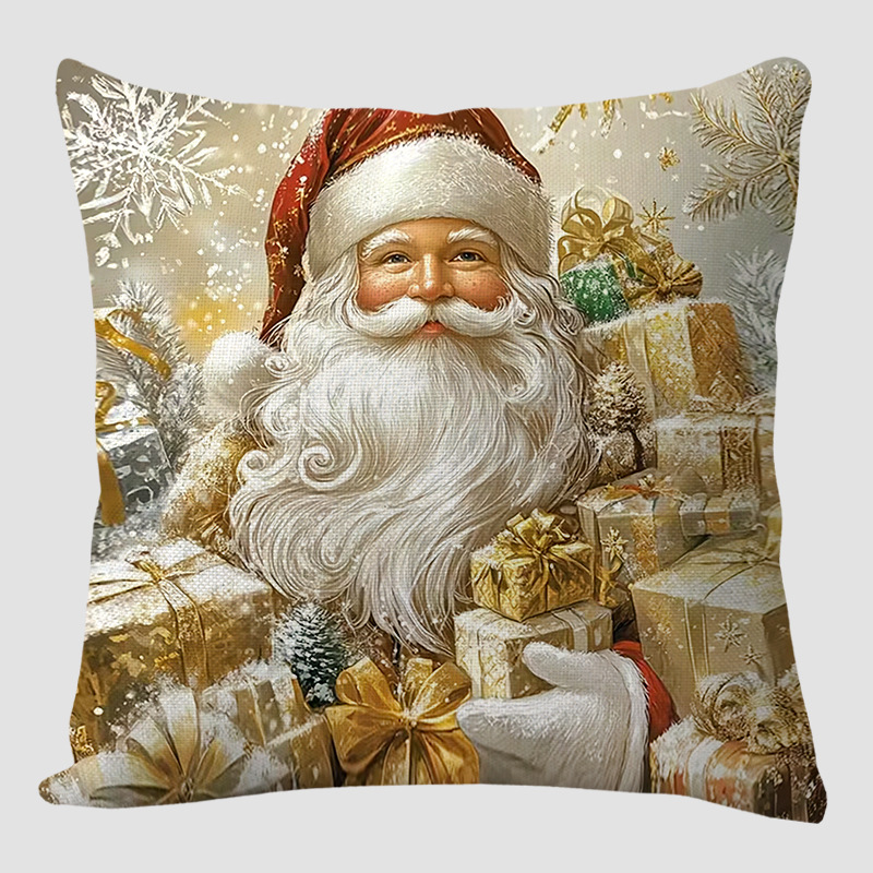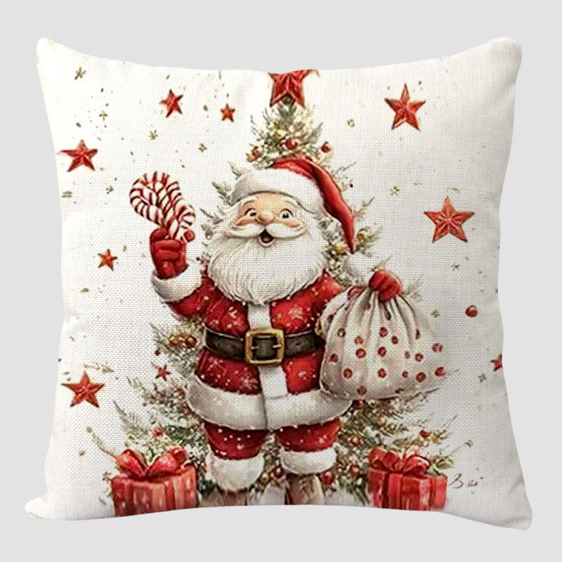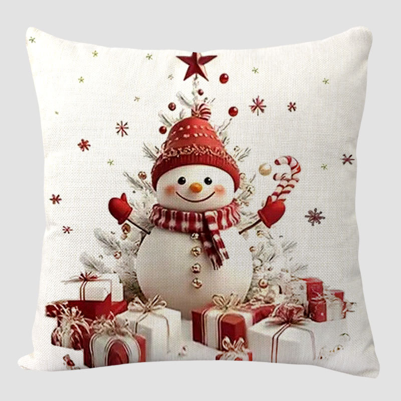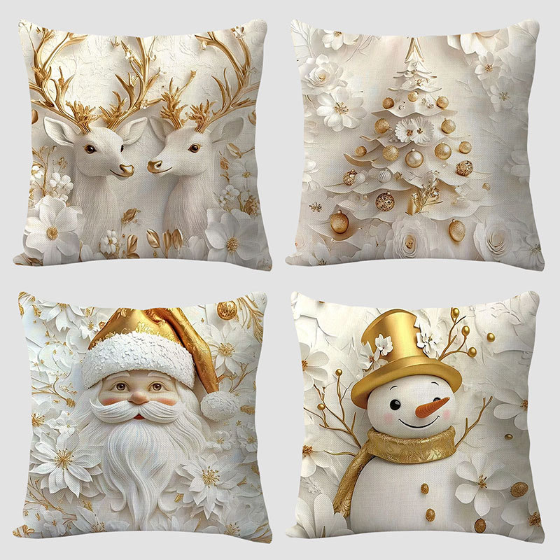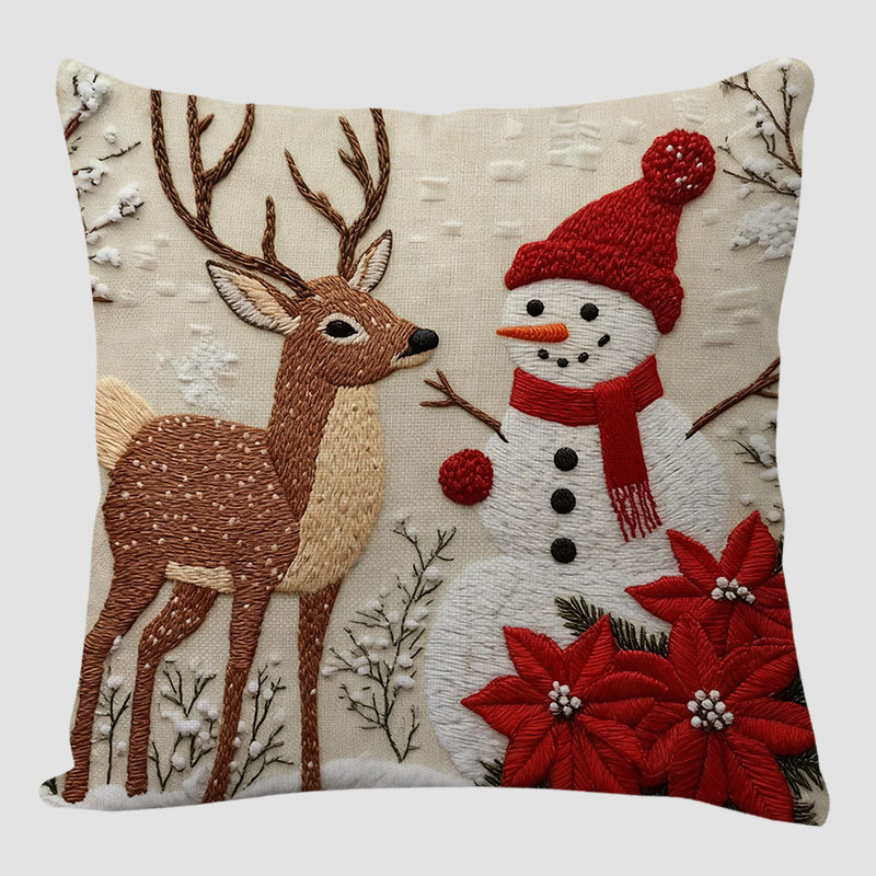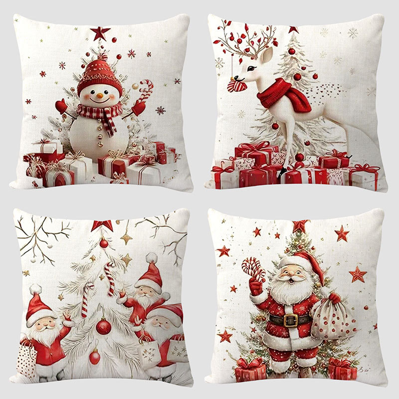粉色麋鹿圣诞节抱枕套亚麻桃皮绒印花节日装饰客厅沙发靠垫套靠枕