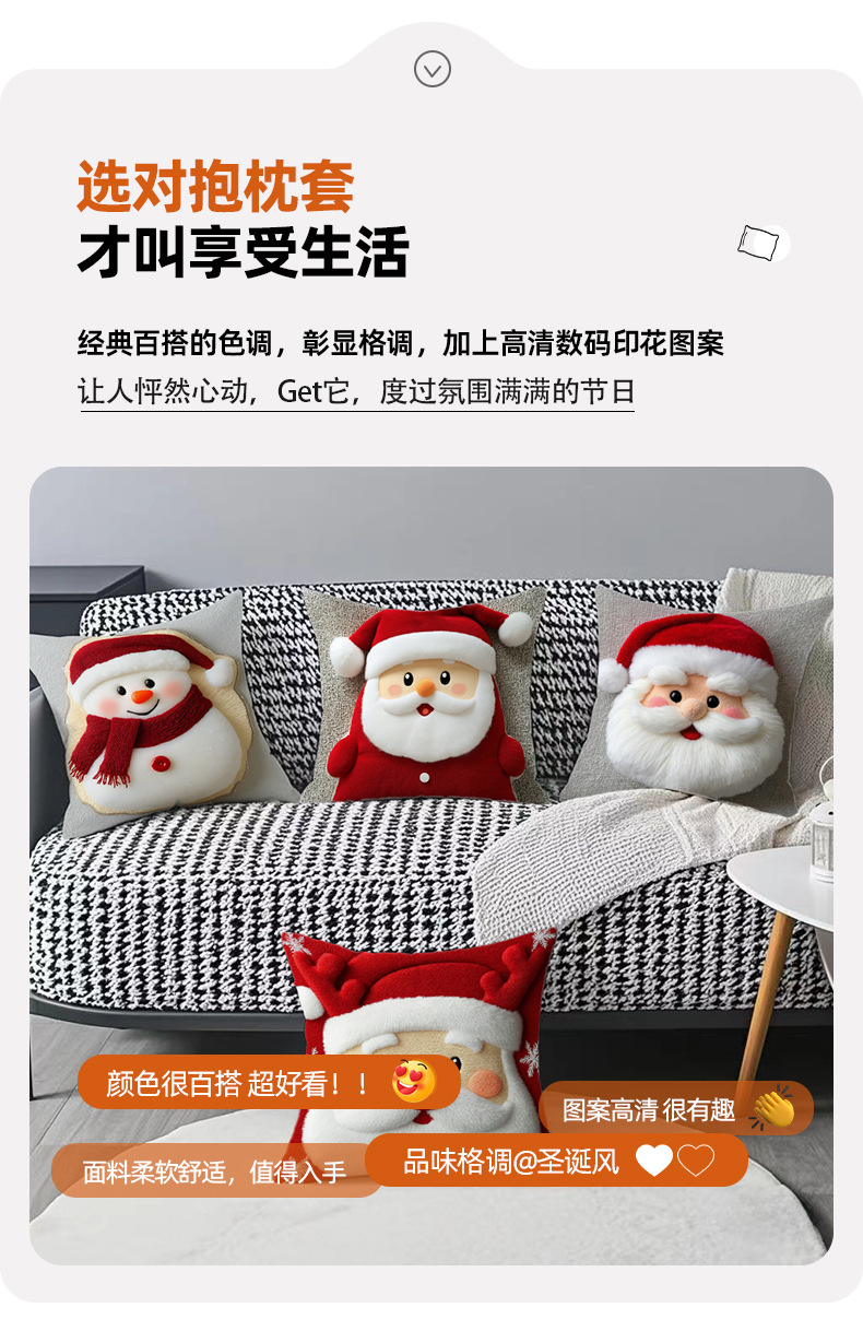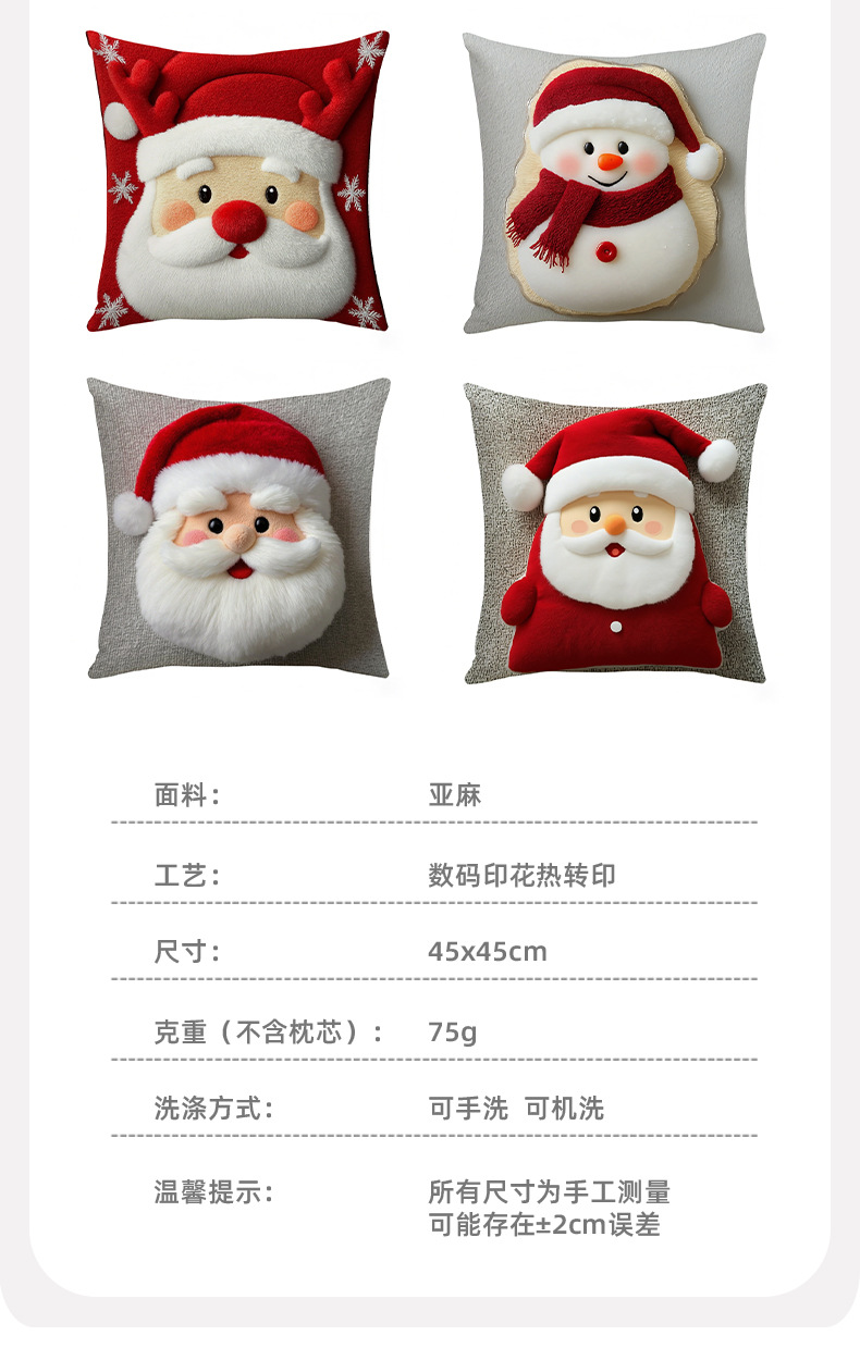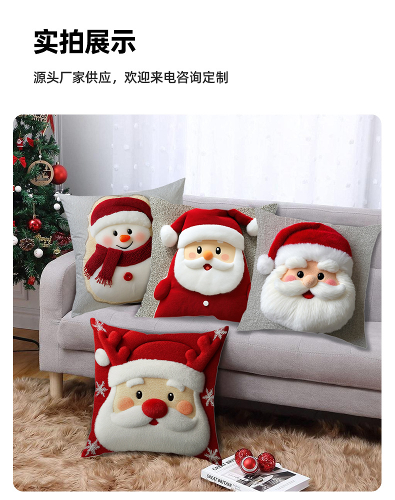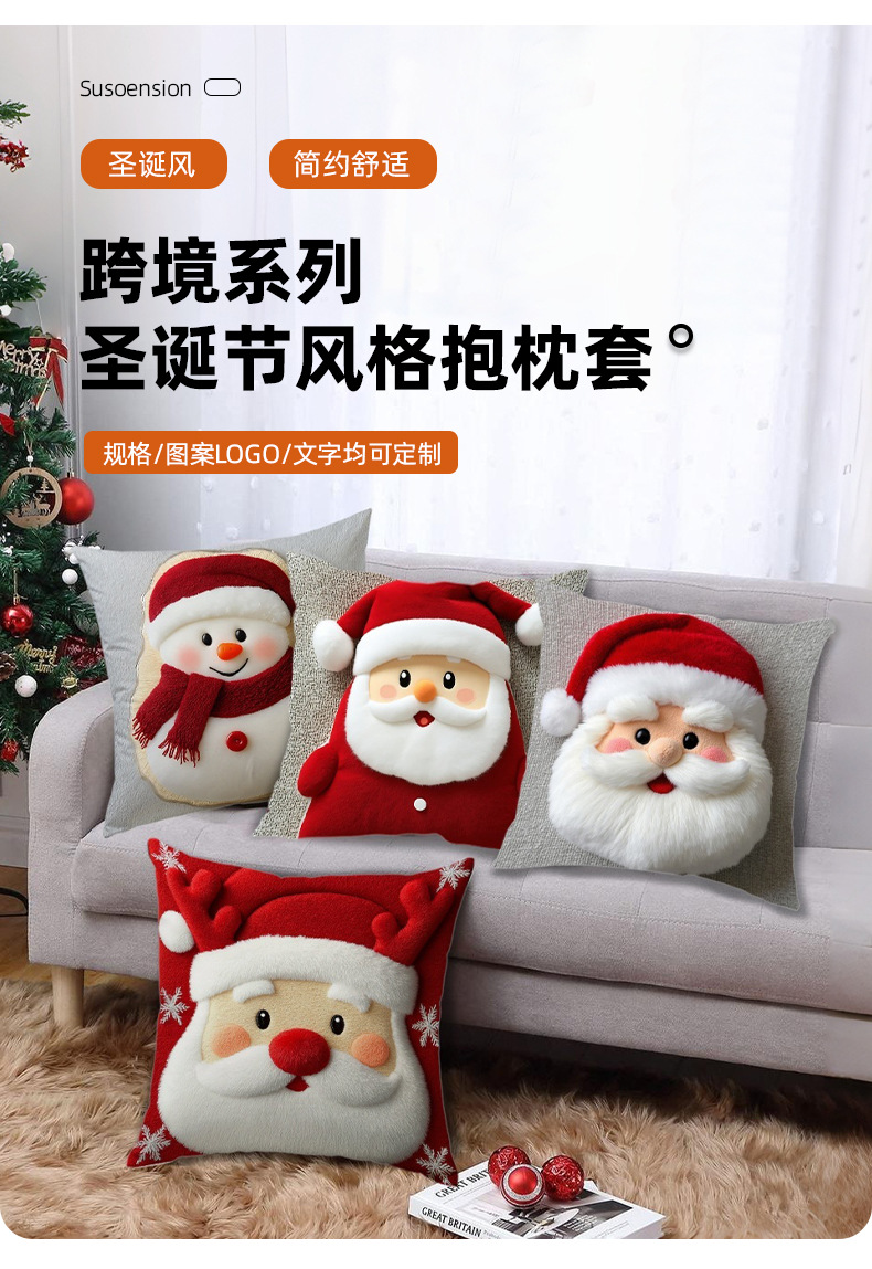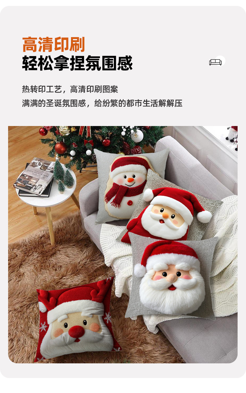 跨境亚马逊圣诞抱枕靠垫套卡通家居装饰靠枕套印花抱枕套节日礼品