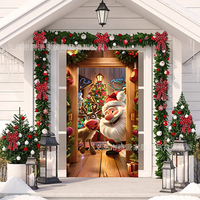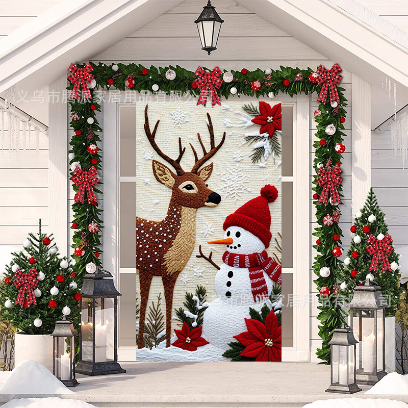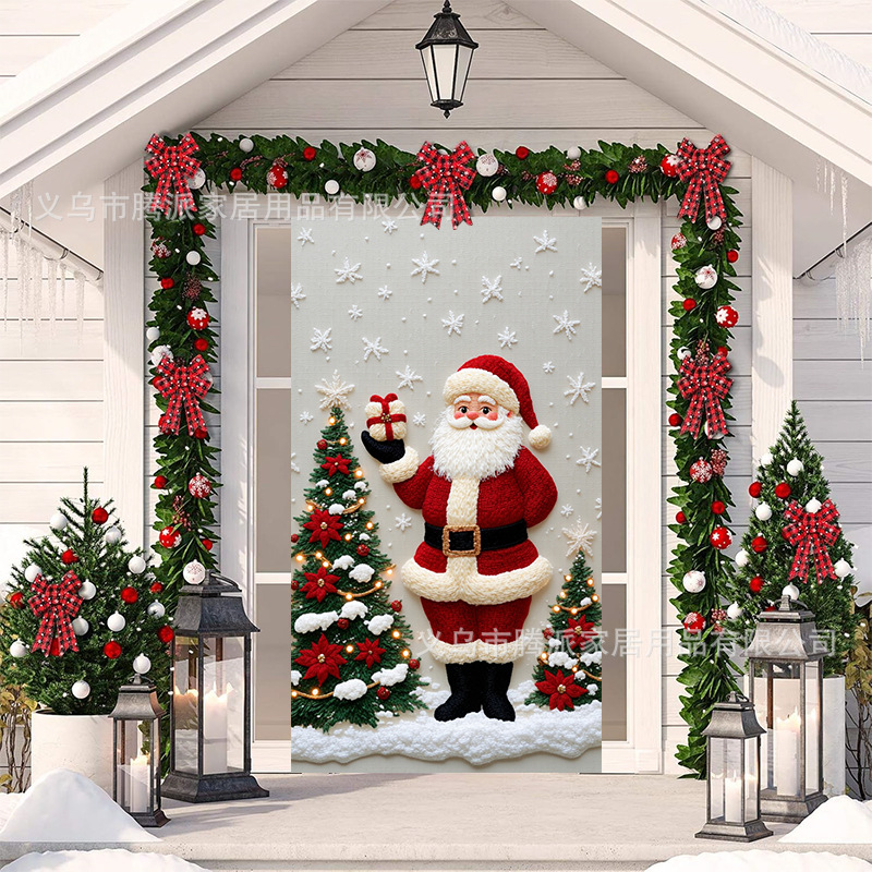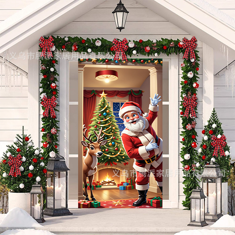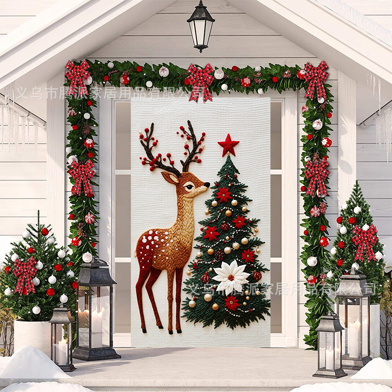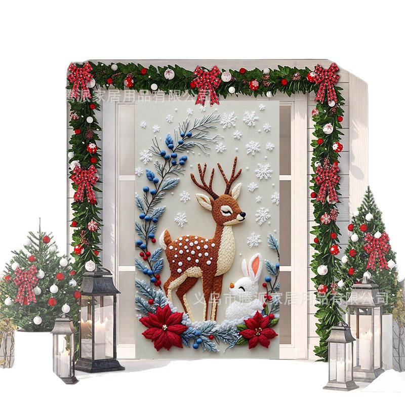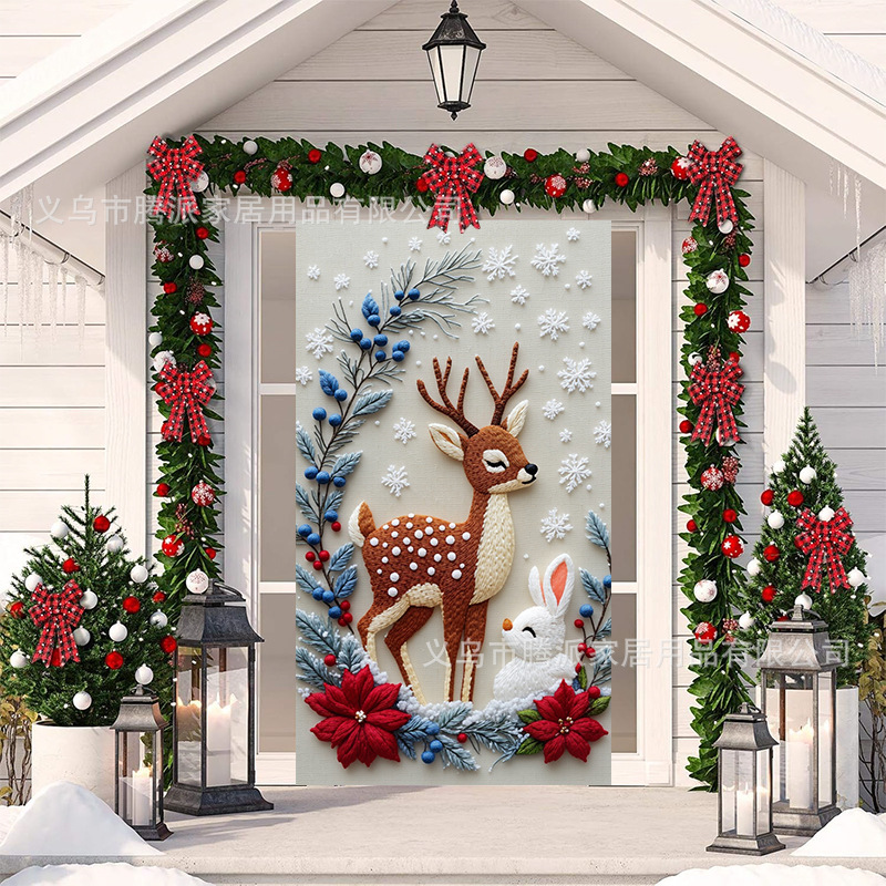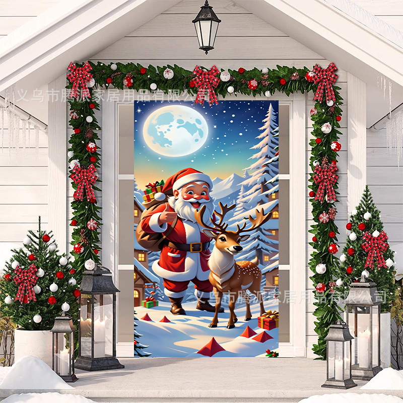 跨境新款户外圣诞背景挂布挂毯圣诞老人麋鹿节日派对氛围装饰批发