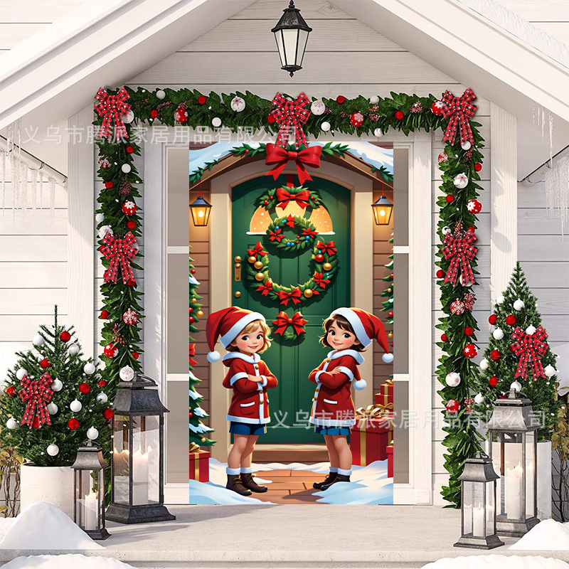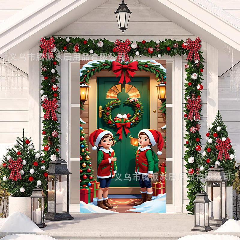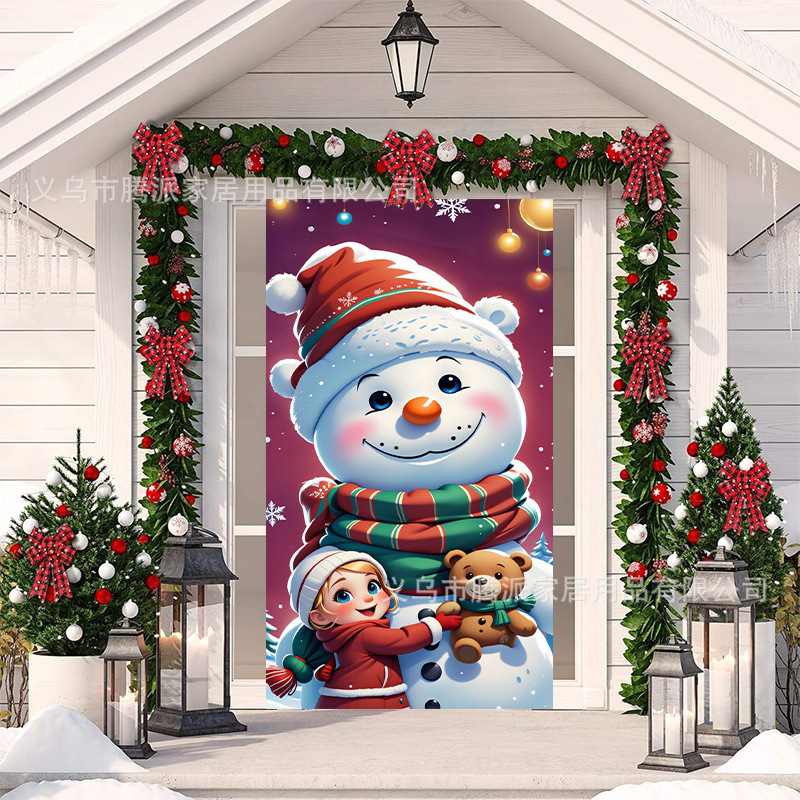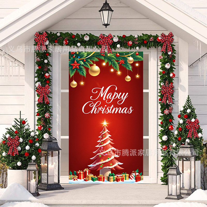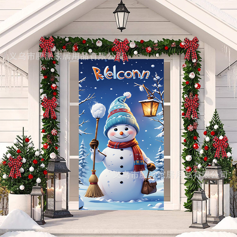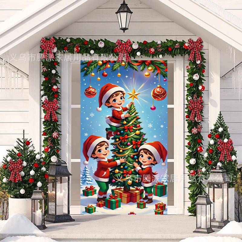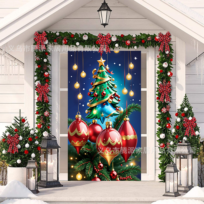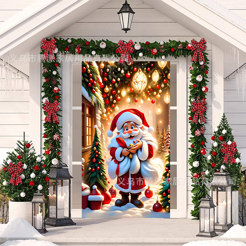 跨境新款户外圣诞背景挂布挂毯圣诞老人麋鹿节日派对氛围装饰批发