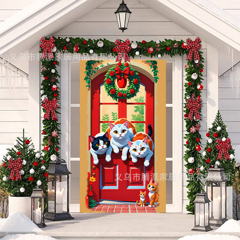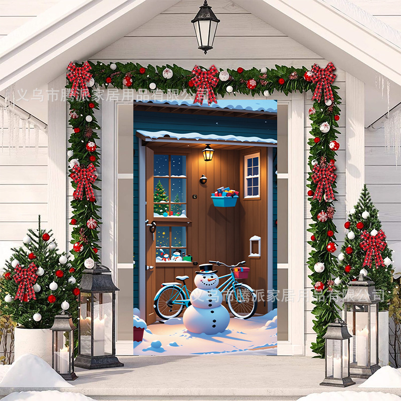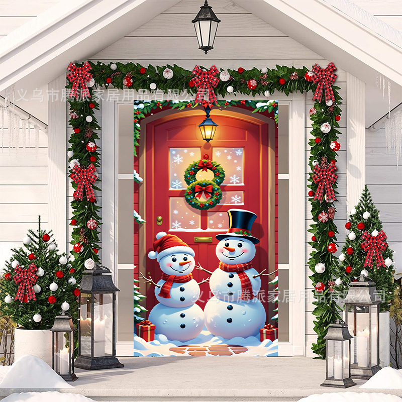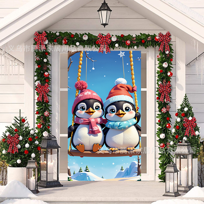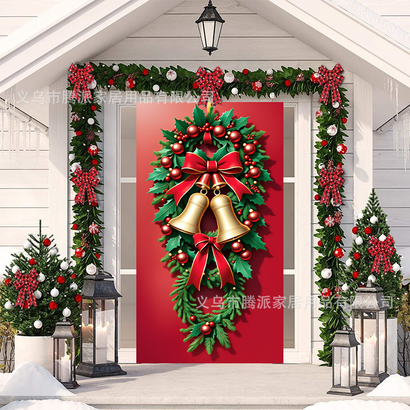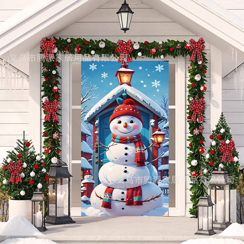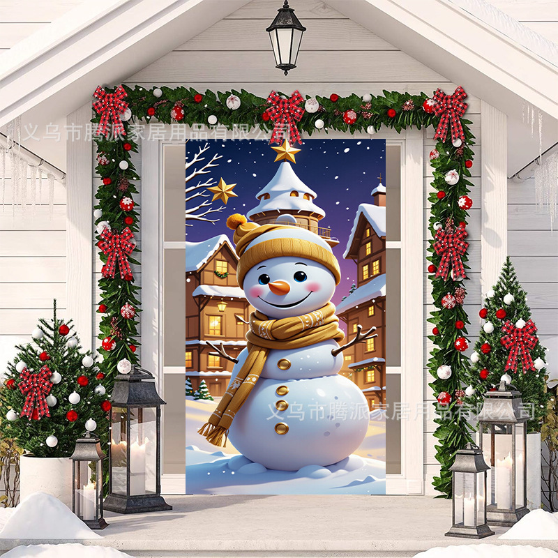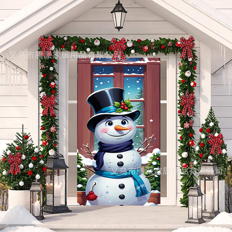 跨境新款户外圣诞背景挂布挂毯圣诞老人麋鹿节日派对氛围装饰批发