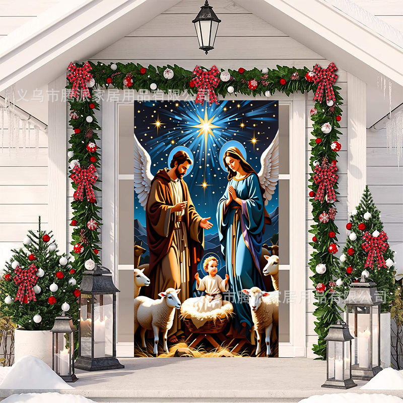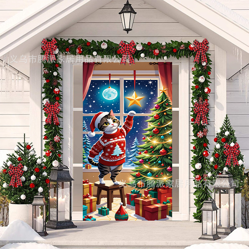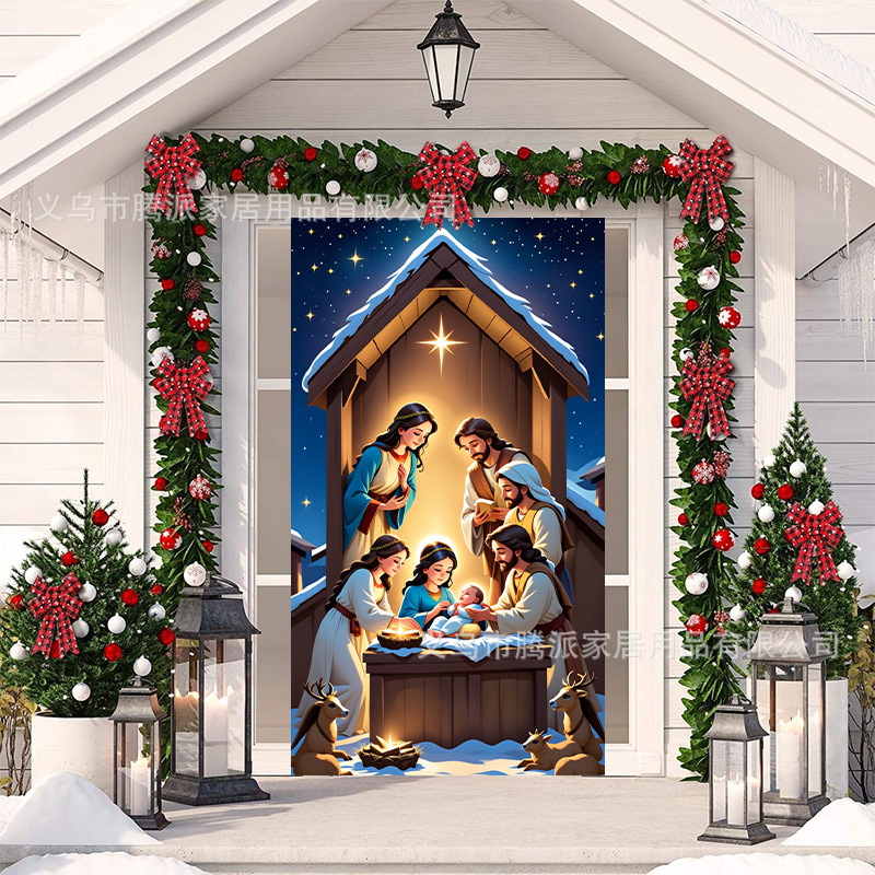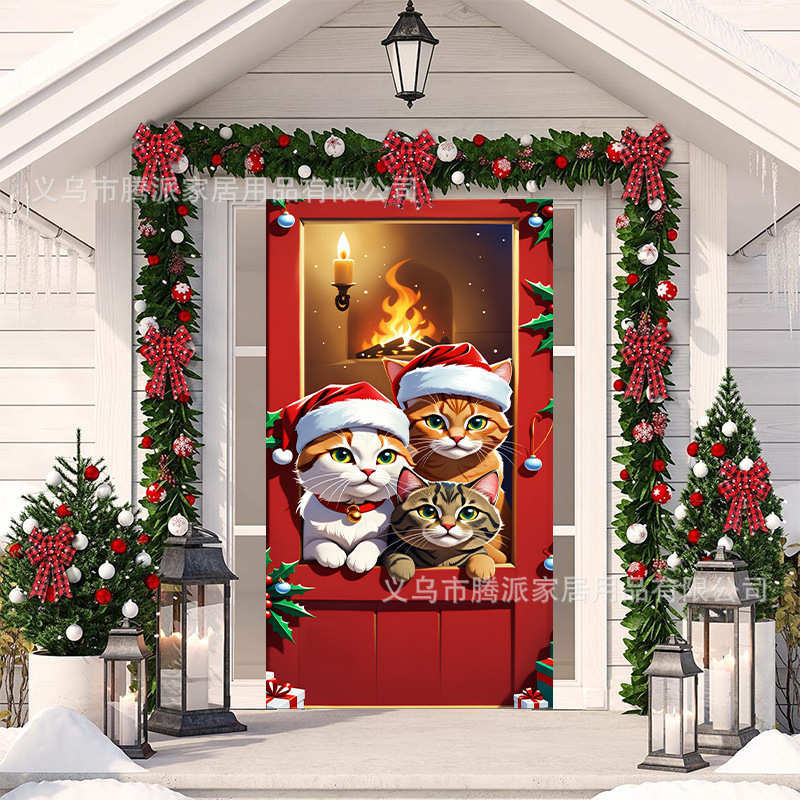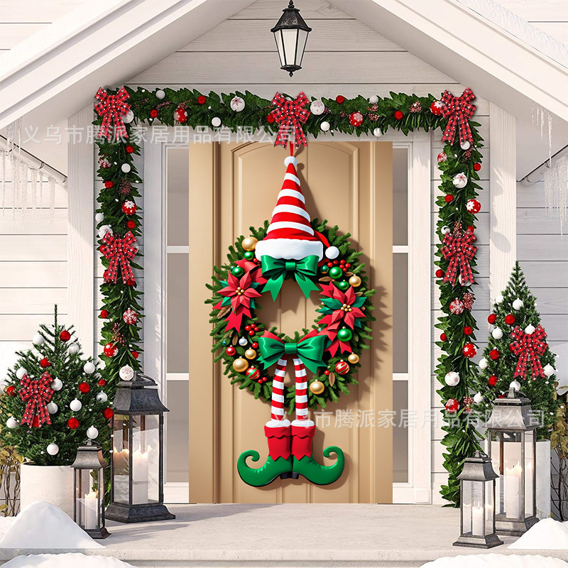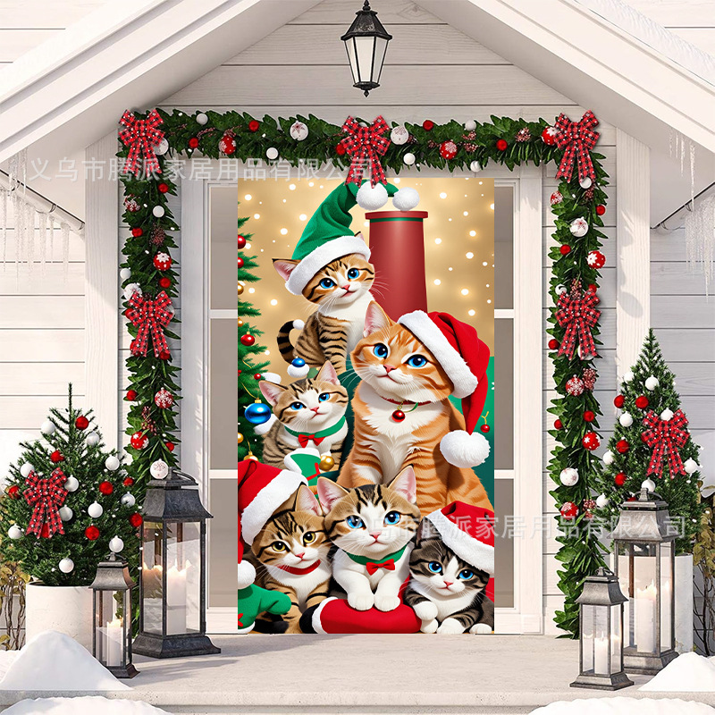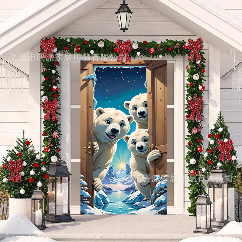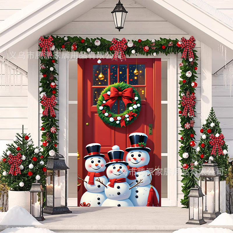 跨境新款户外圣诞背景挂布挂毯圣诞老人麋鹿节日派对氛围装饰批发