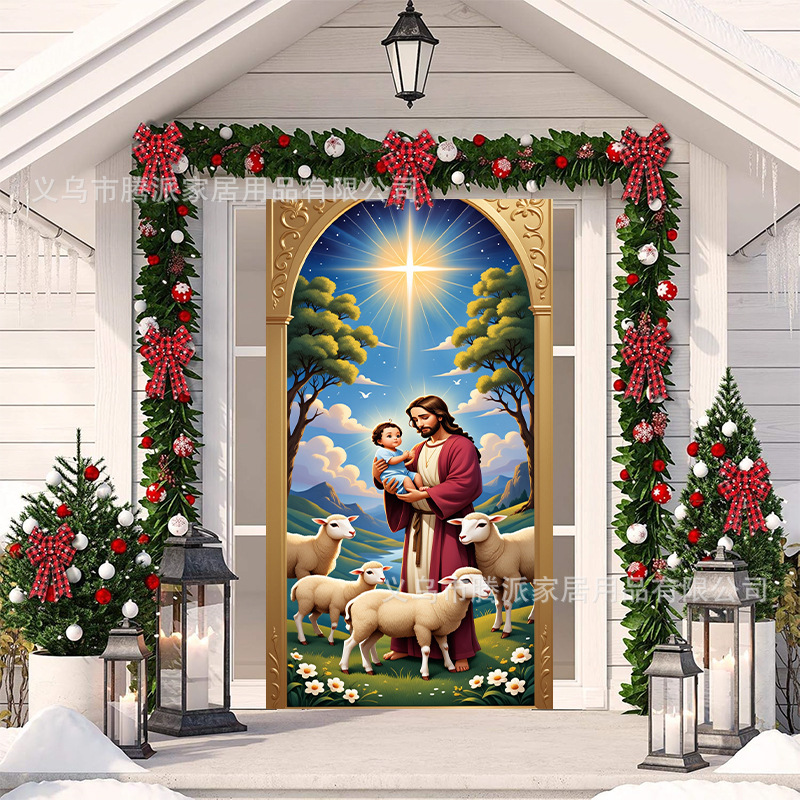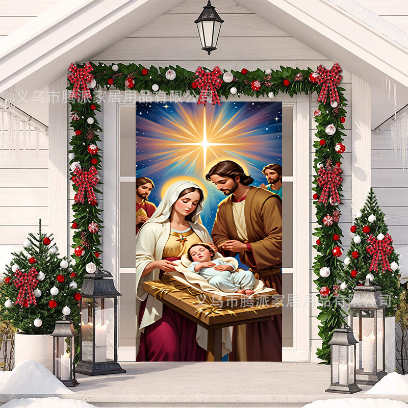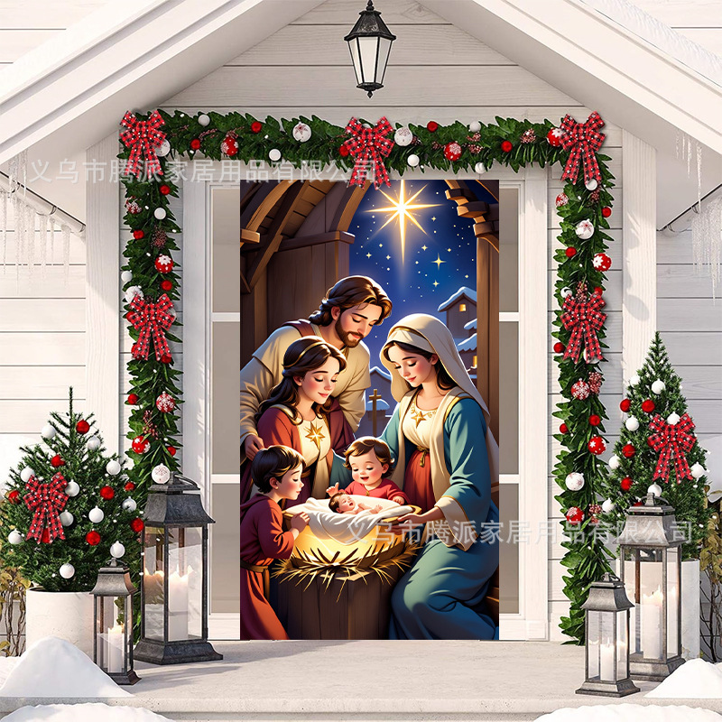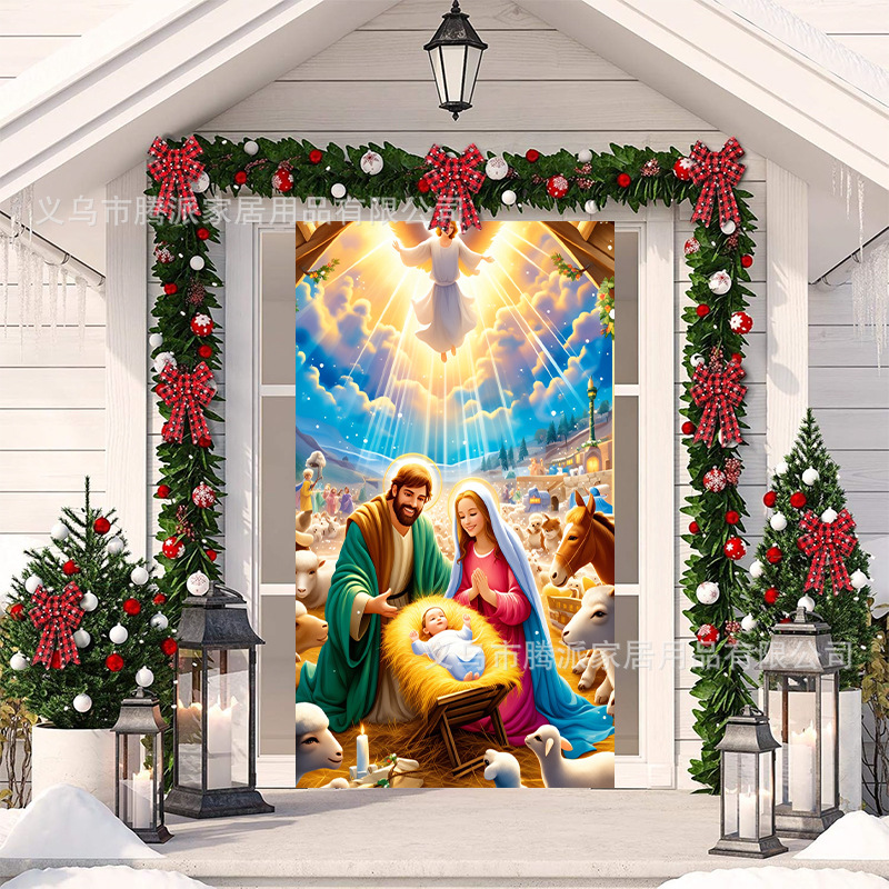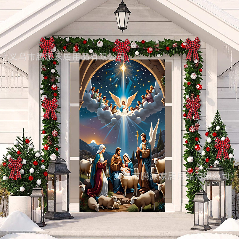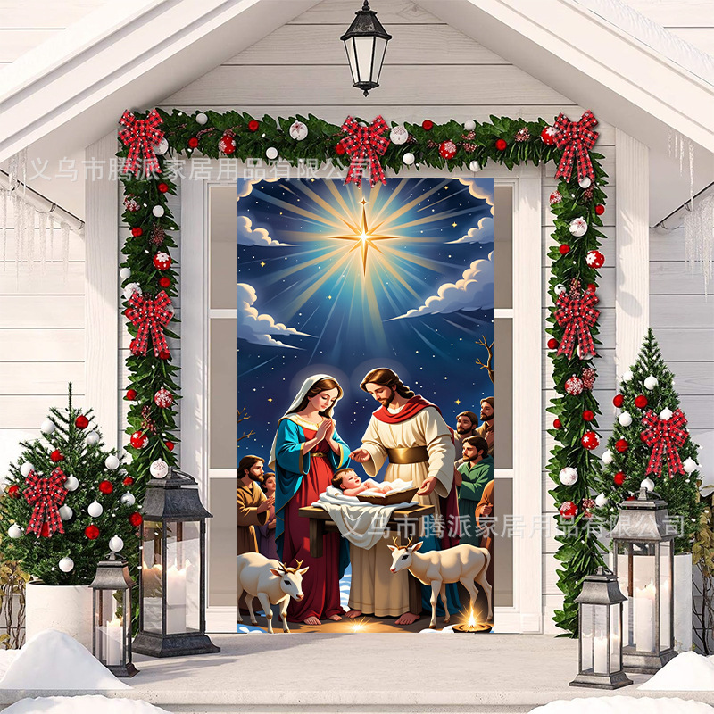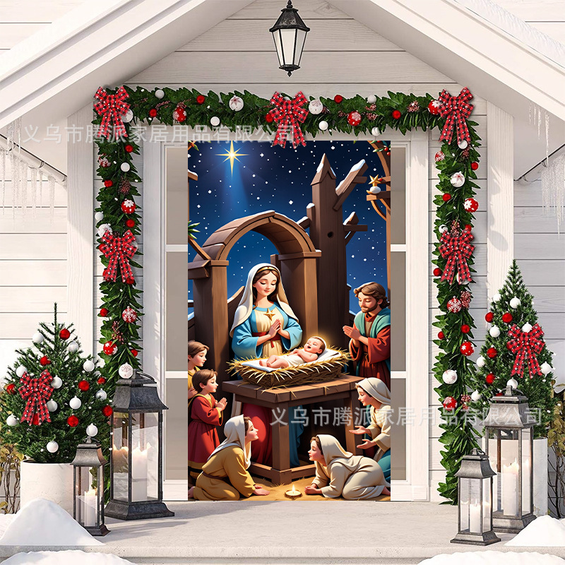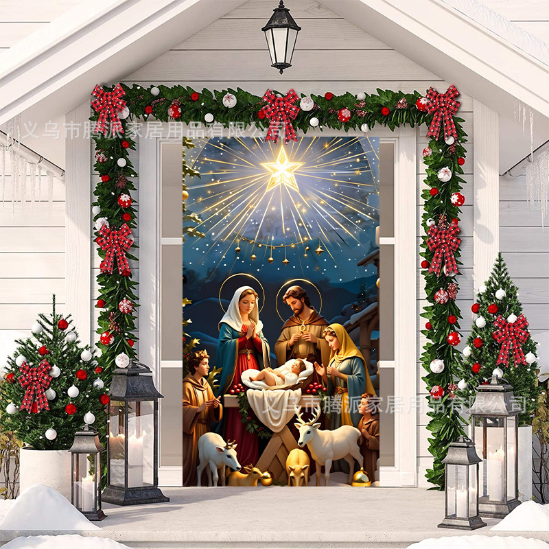 跨境新款户外圣诞背景挂布挂毯圣诞老人麋鹿节日派对氛围装饰批发