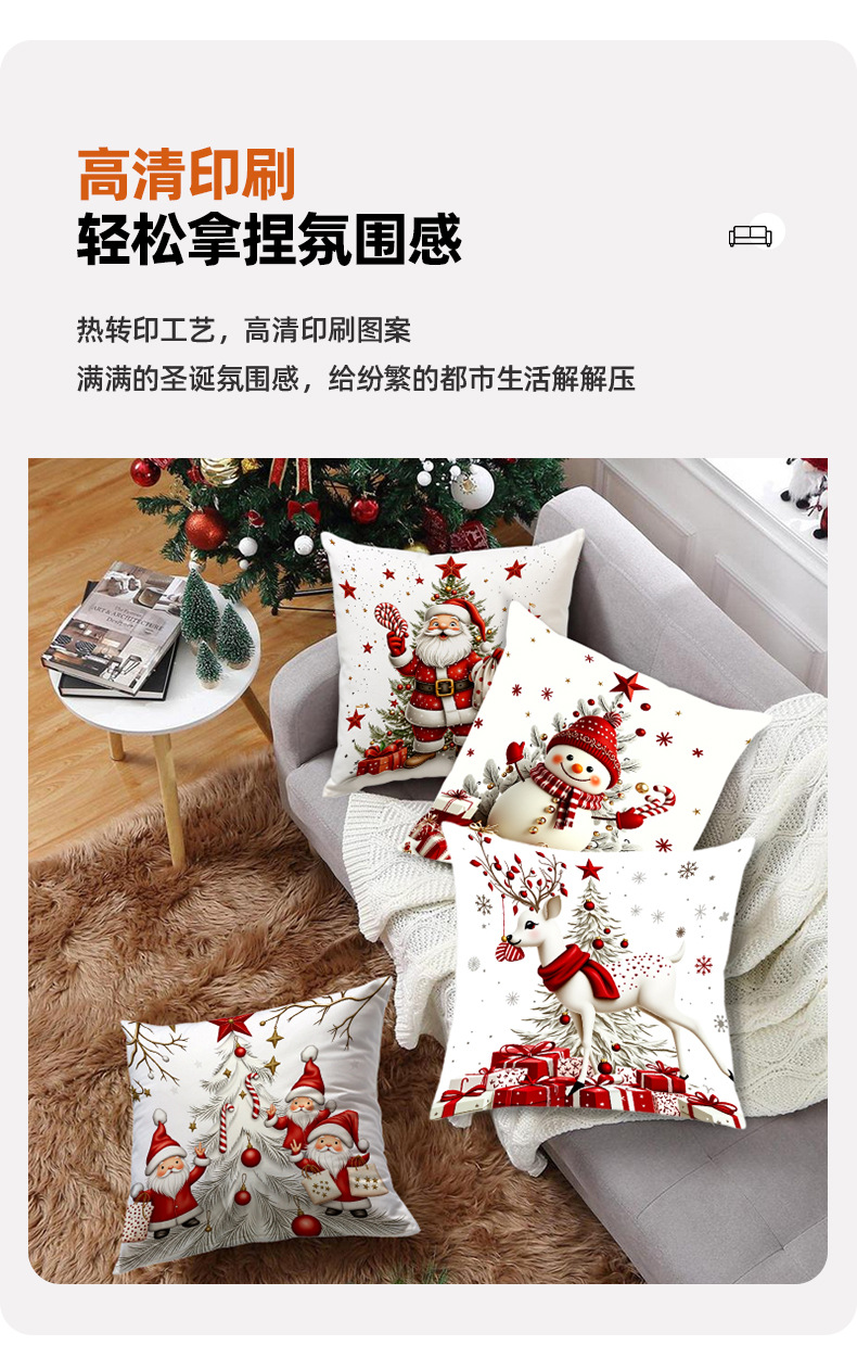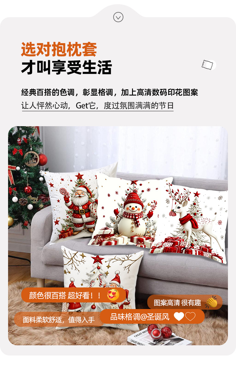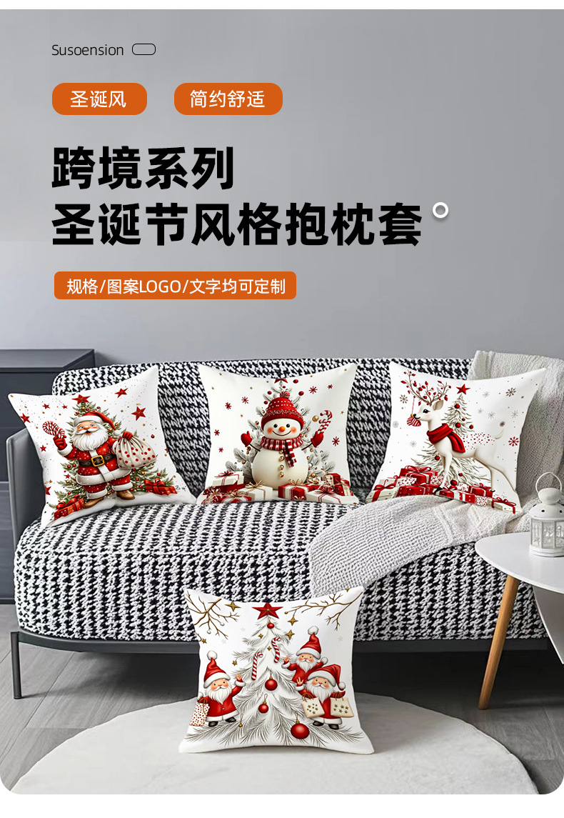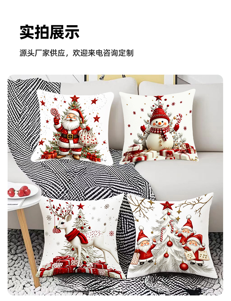 圣诞主题红白系靠枕套圣诞老人麋鹿家居装饰抱枕套靠垫套工厂批发