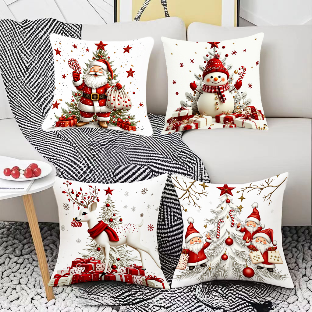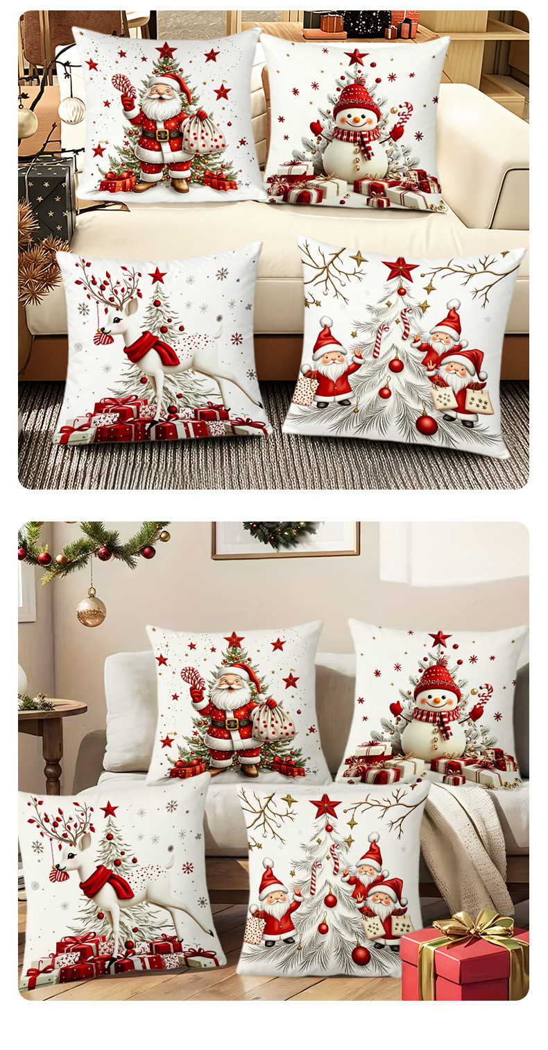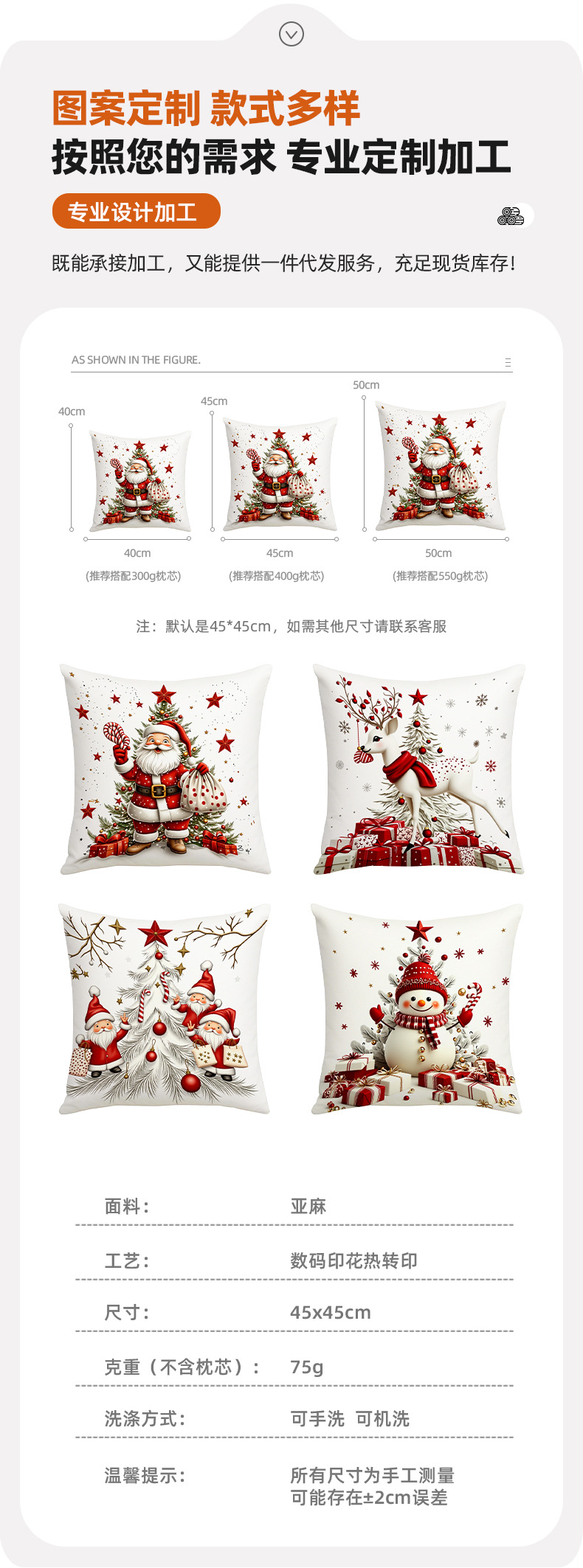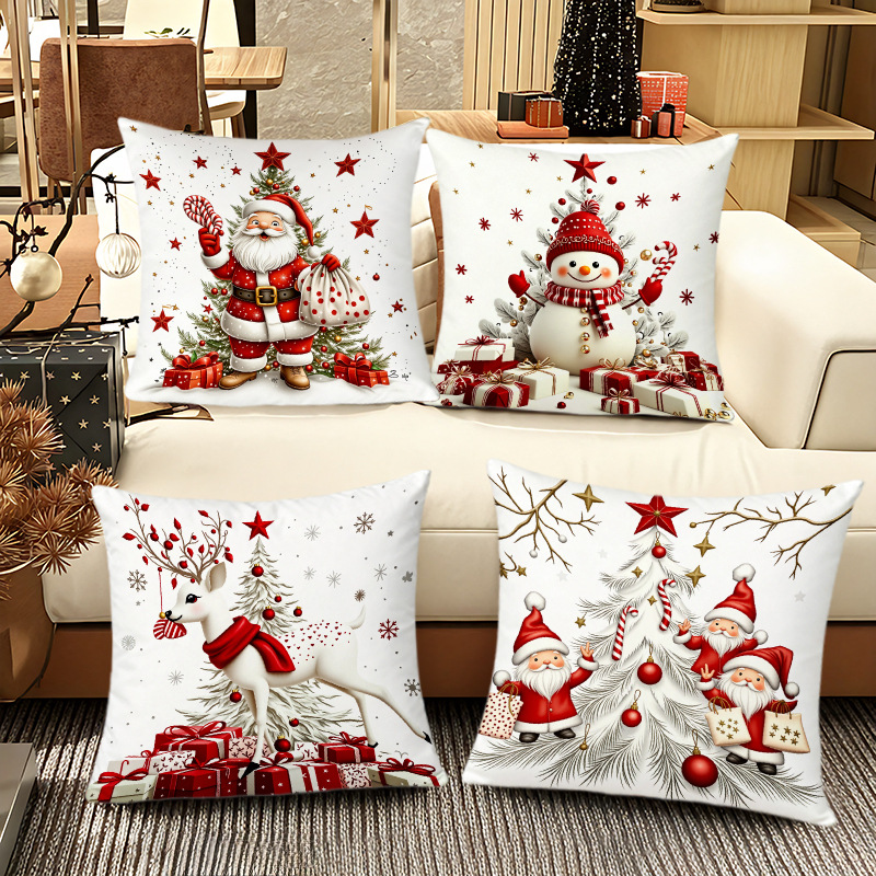 圣诞主题红白系靠枕套圣诞老人麋鹿家居装饰抱枕套靠垫套工厂批发