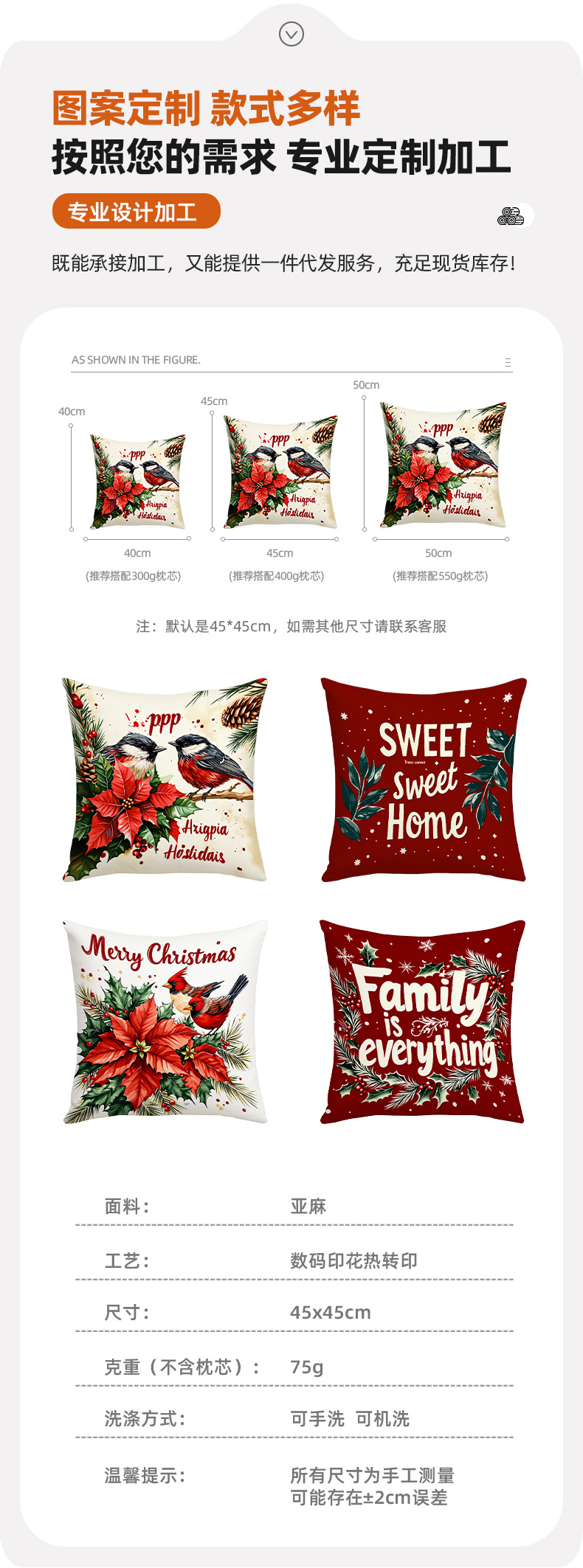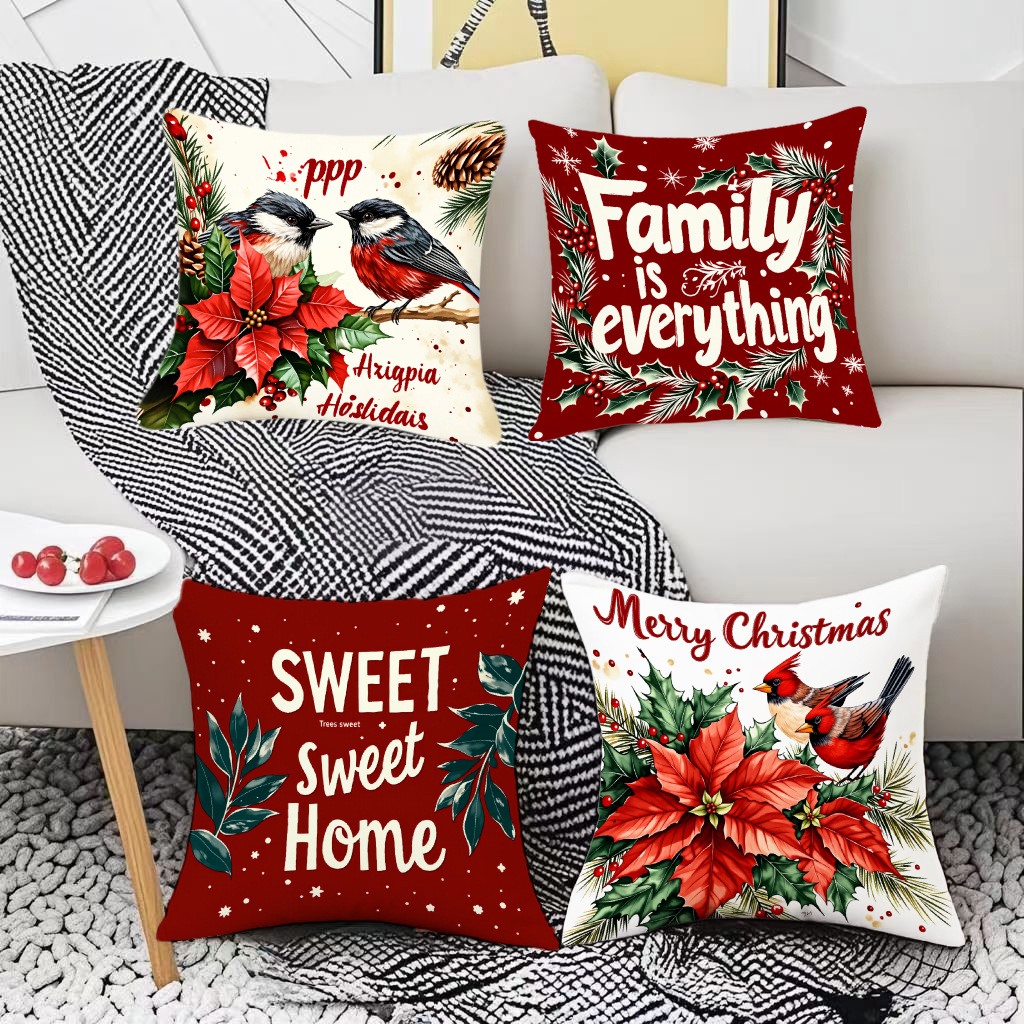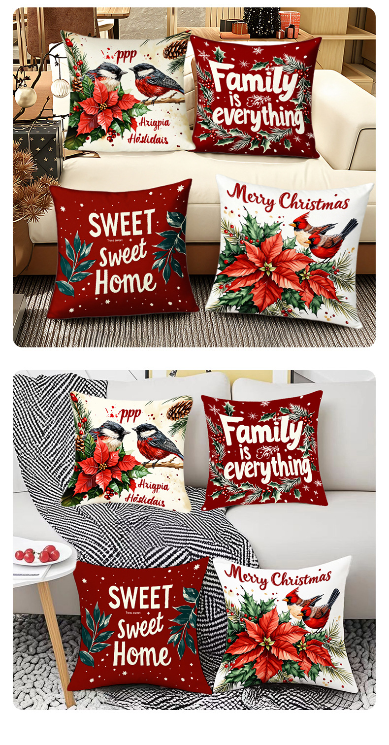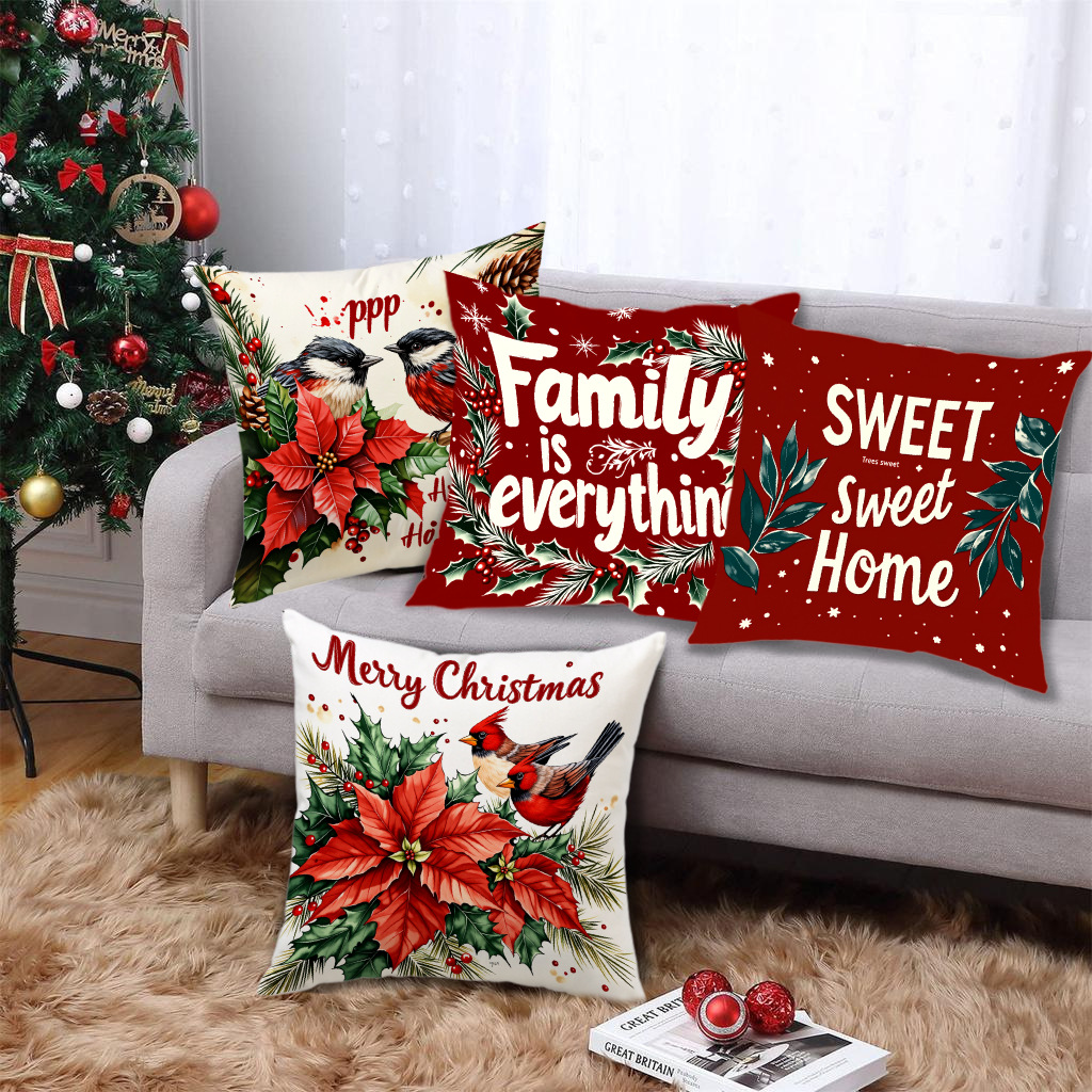 跨境热销圣诞主题抱枕套数码印花字母花卉节日氛围装饰靠垫靠枕套