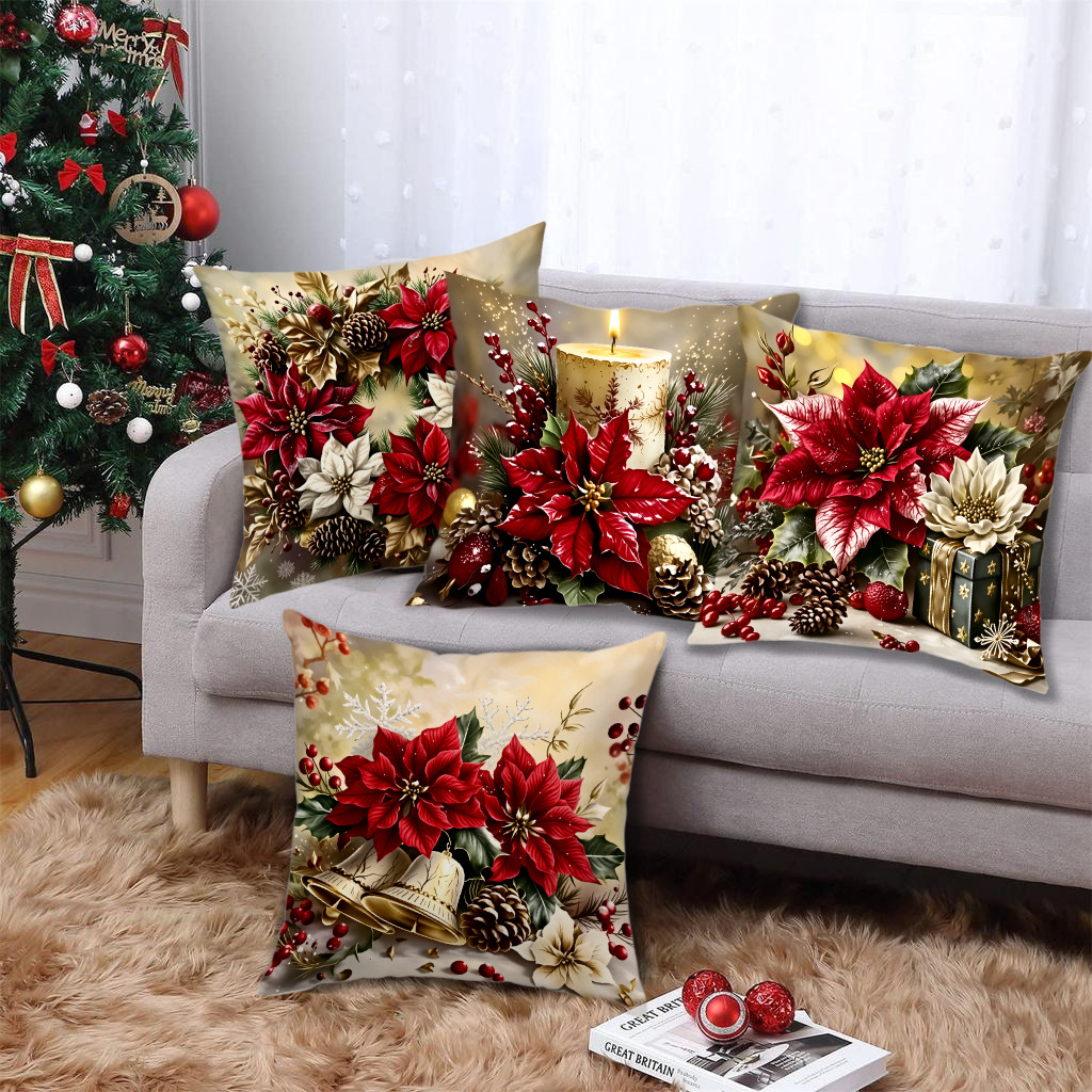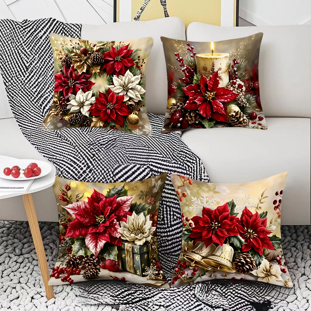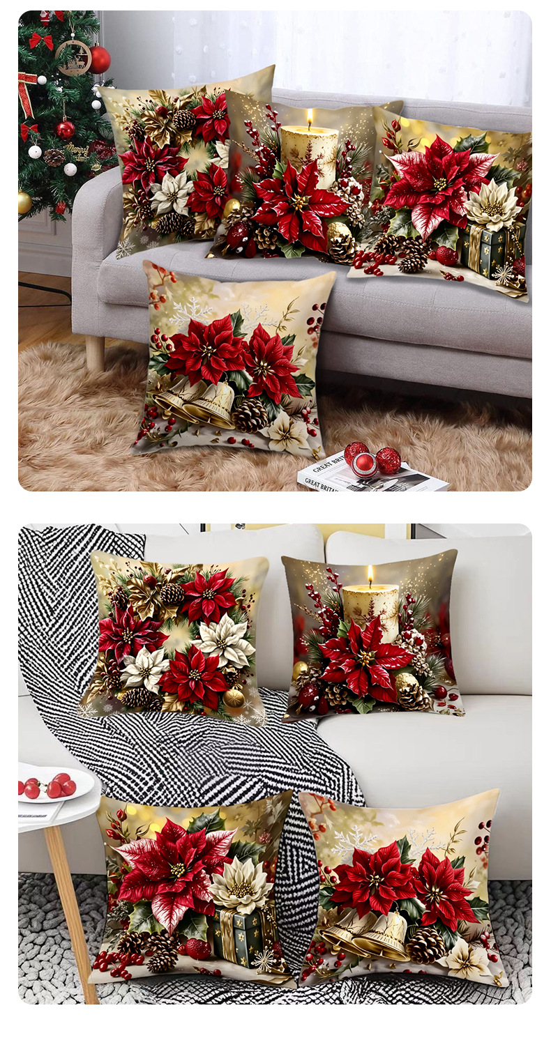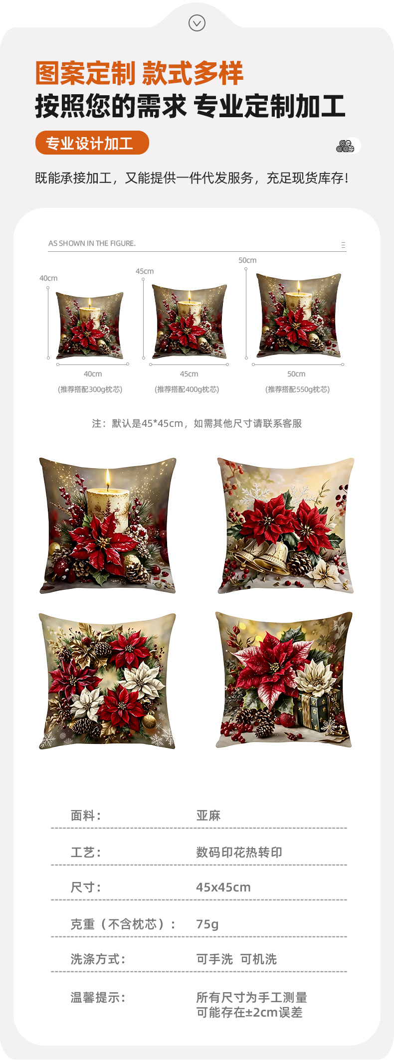 亚马逊热销圣诞主题靠枕套铃铛礼盒花卉数码印花抱枕套靠垫套批发