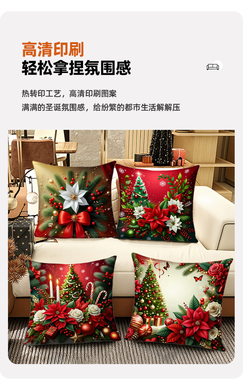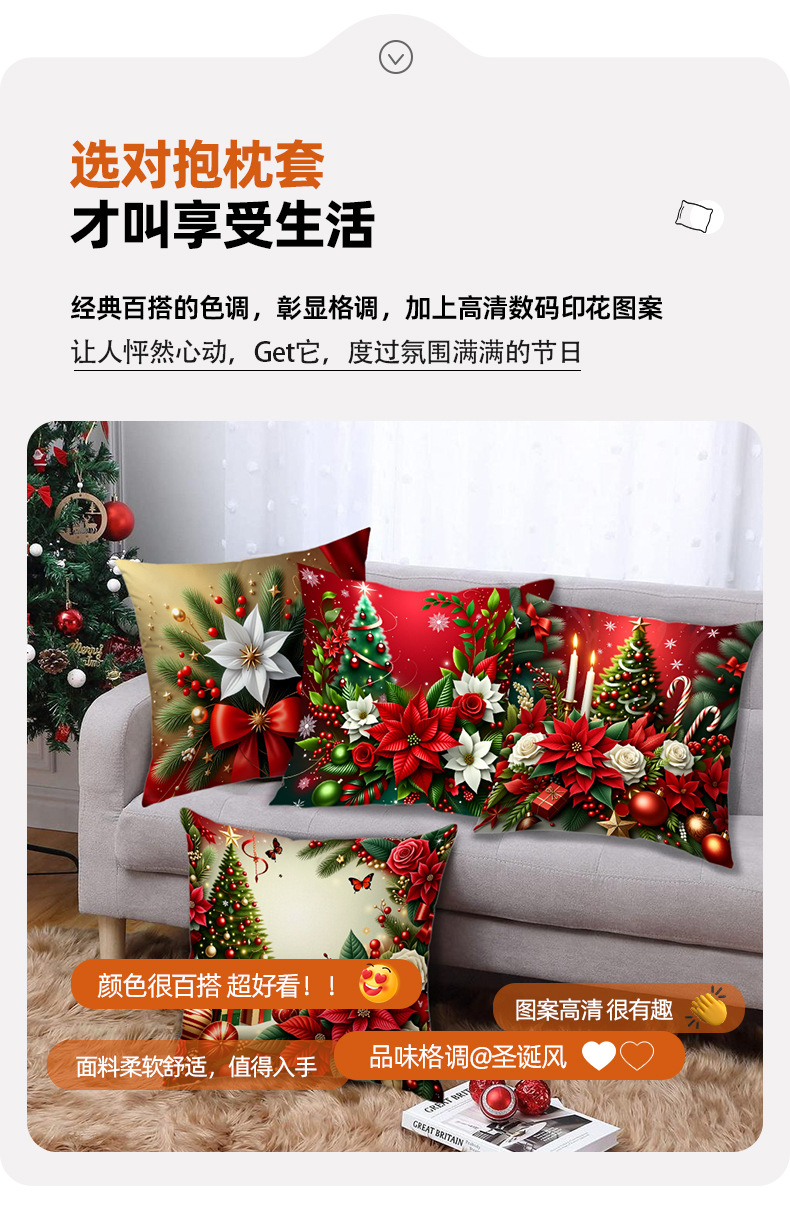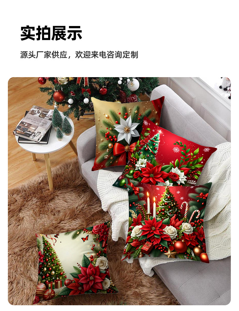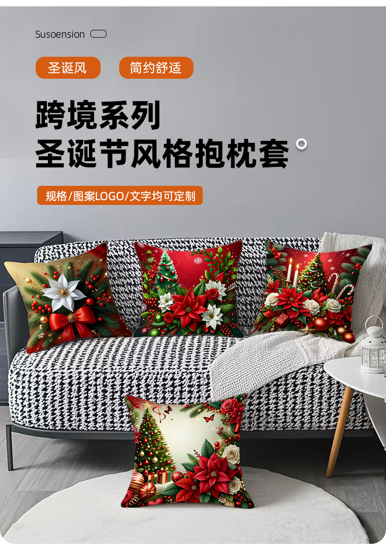 跨境热销圣诞主题靠垫套圣诞装饰短毛绒沙发车载靠枕抱枕套批发