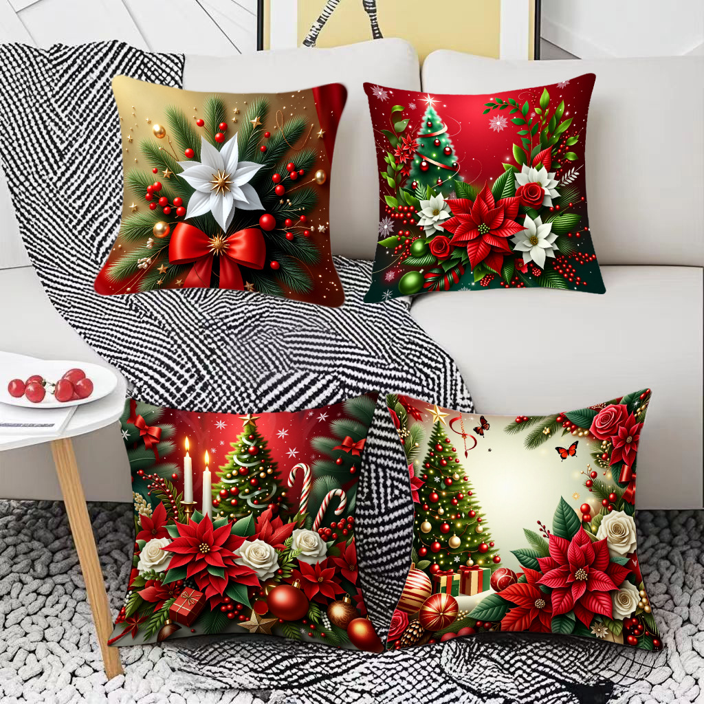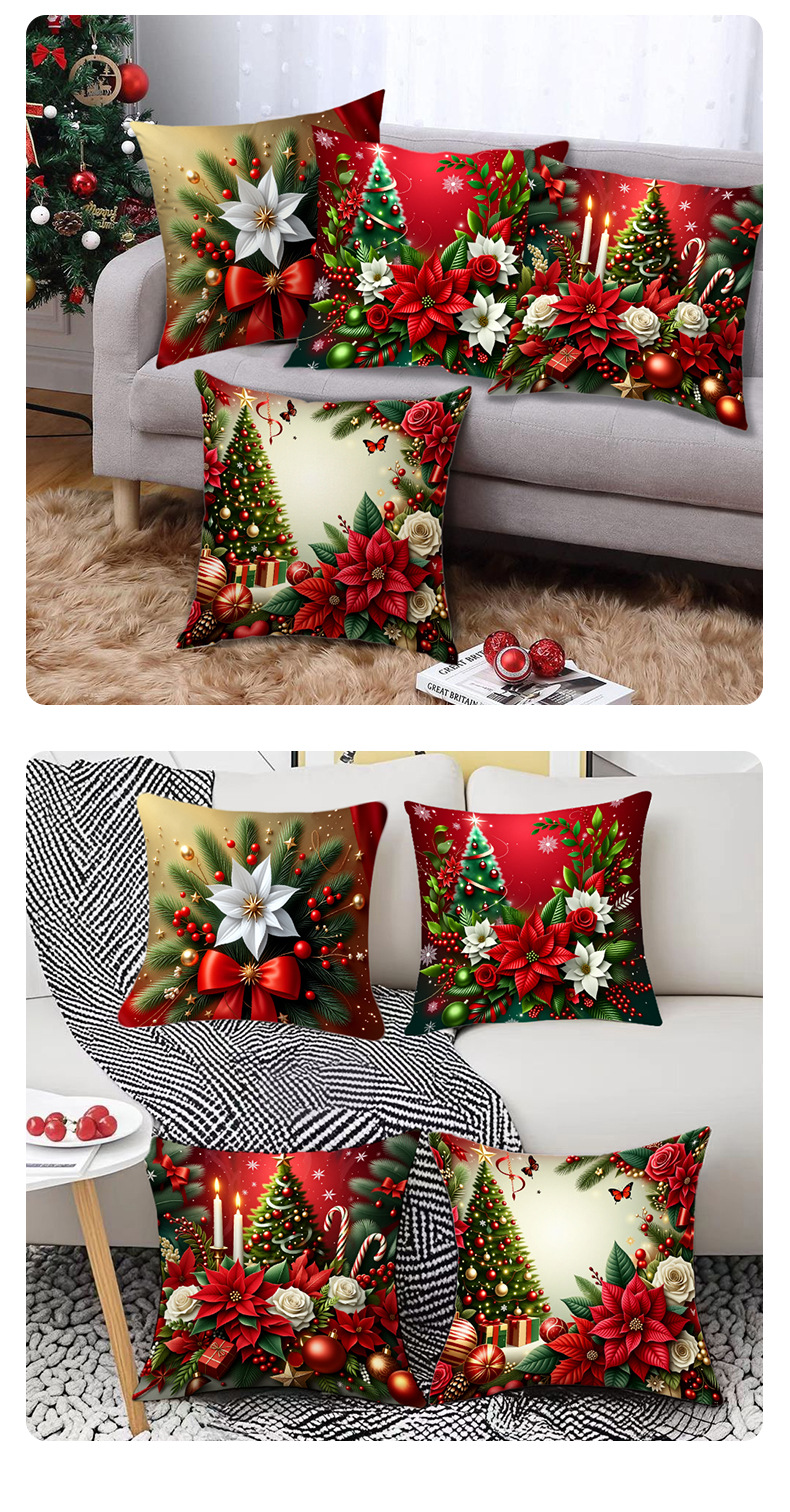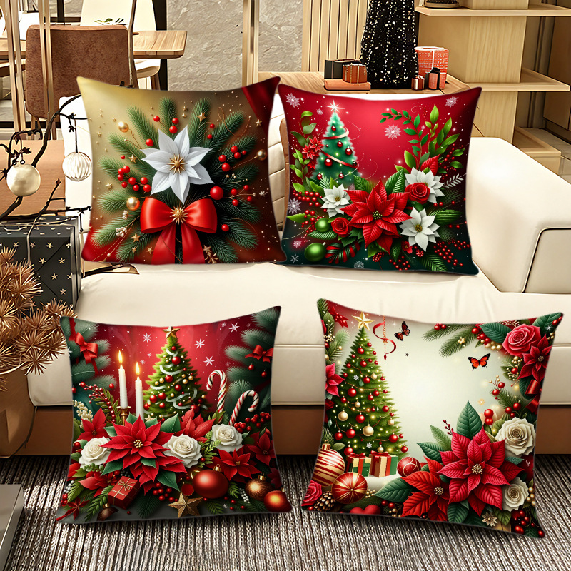 跨境热销圣诞主题靠垫套圣诞装饰短毛绒沙发车载靠枕抱枕套批发