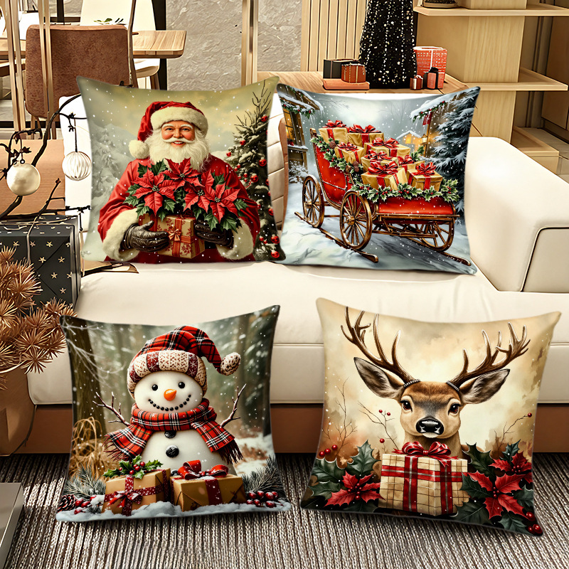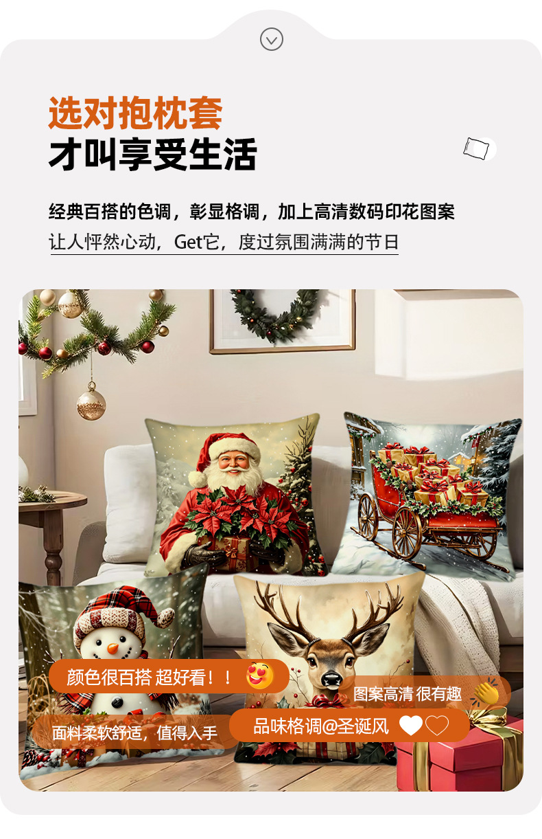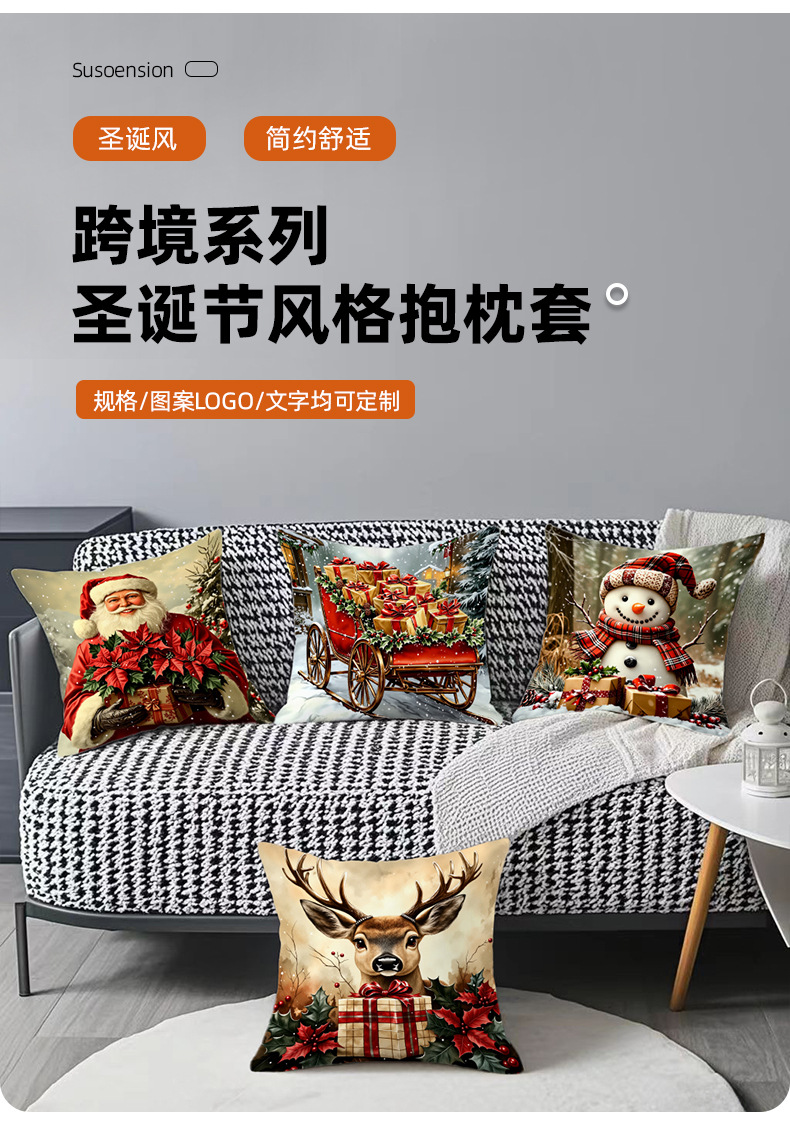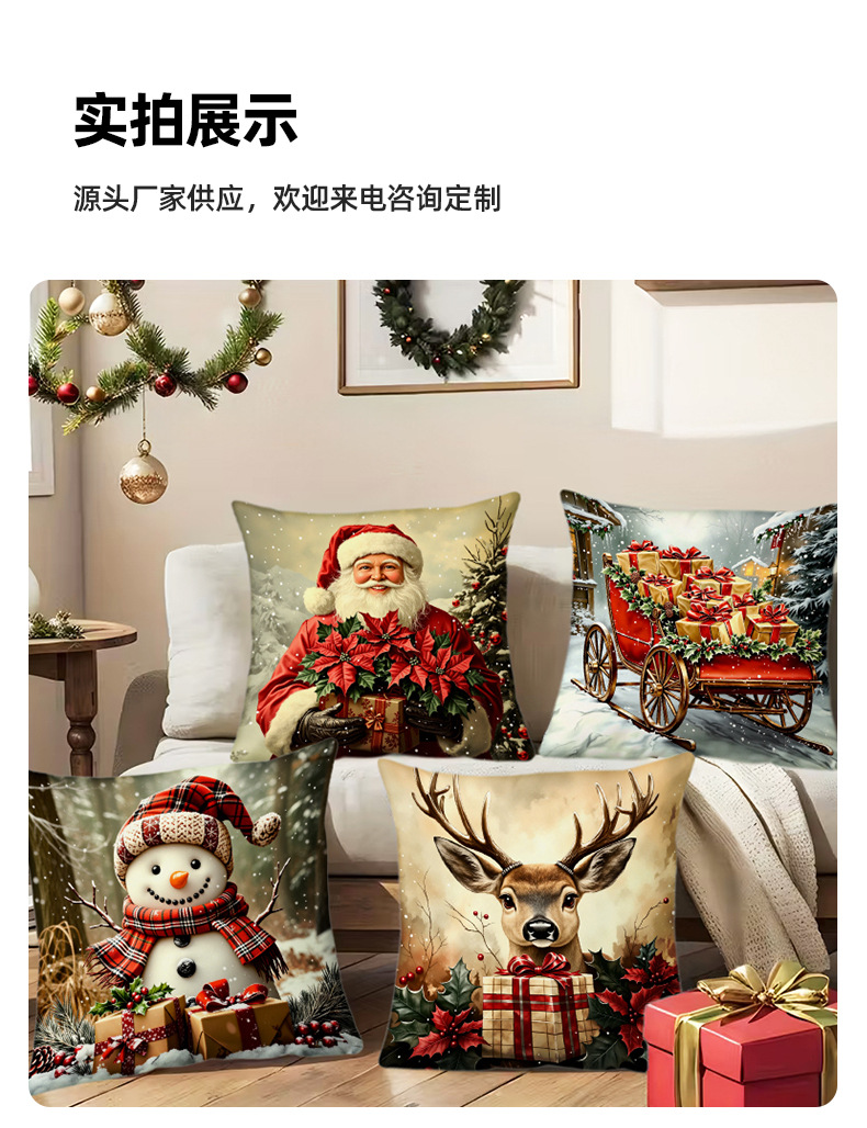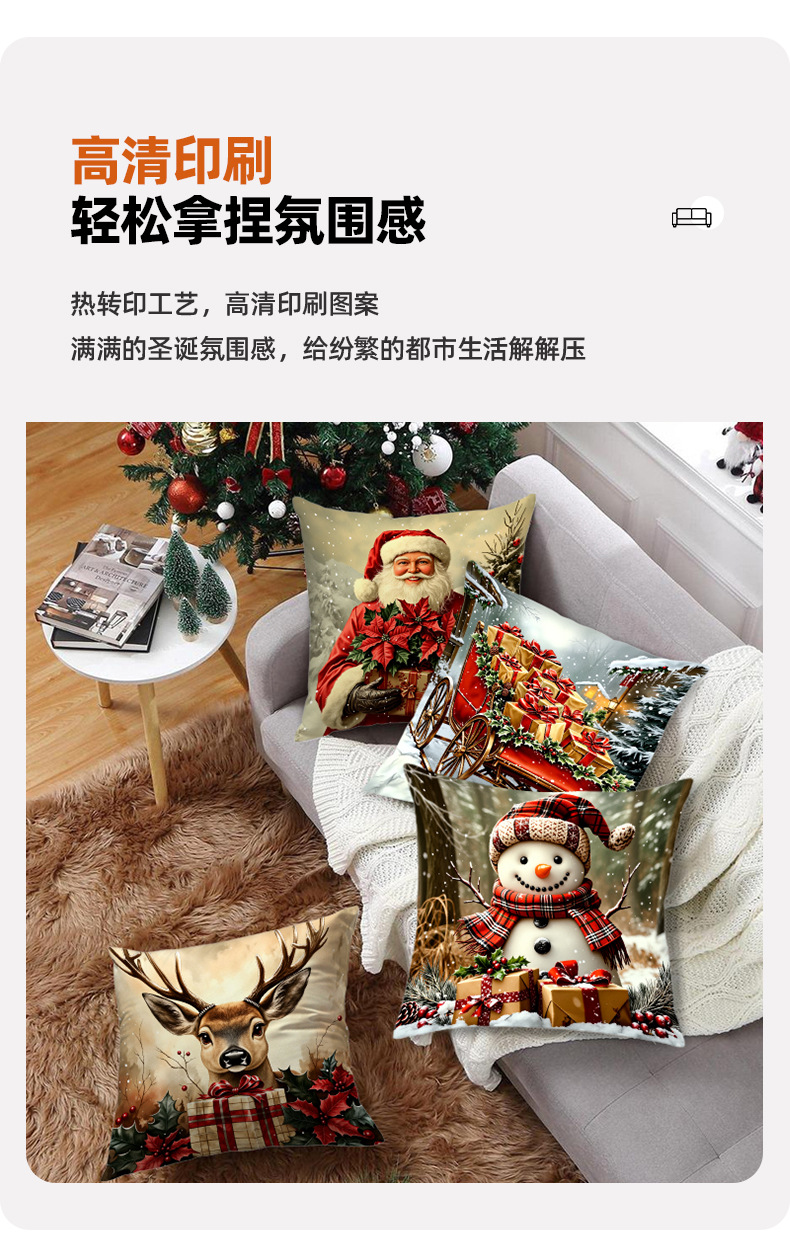 新款圣诞风圣诞老人数码印花抱枕套多场景家居软装节日靠垫靠枕套