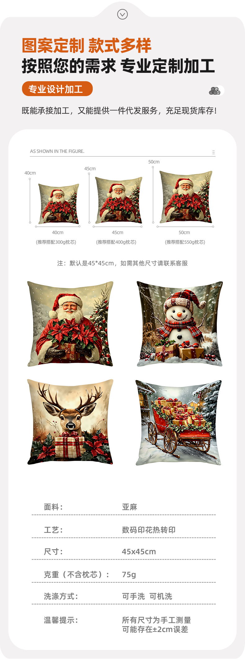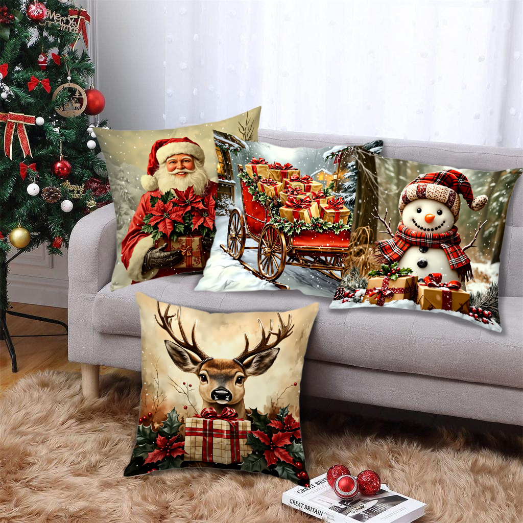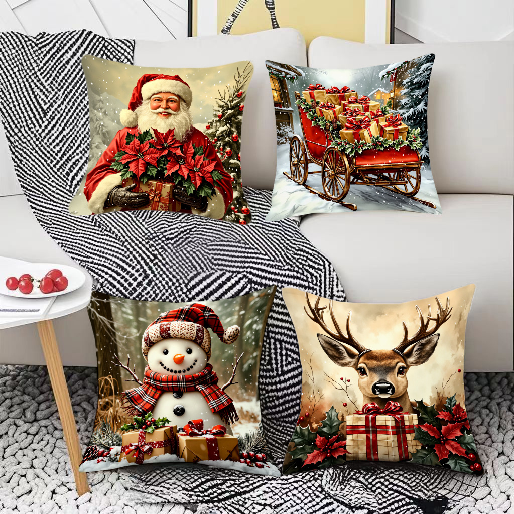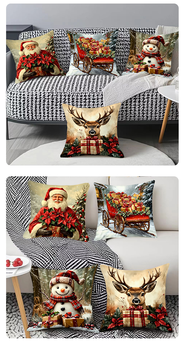 新款圣诞风圣诞老人数码印花抱枕套多场景家居软装节日靠垫靠枕套
