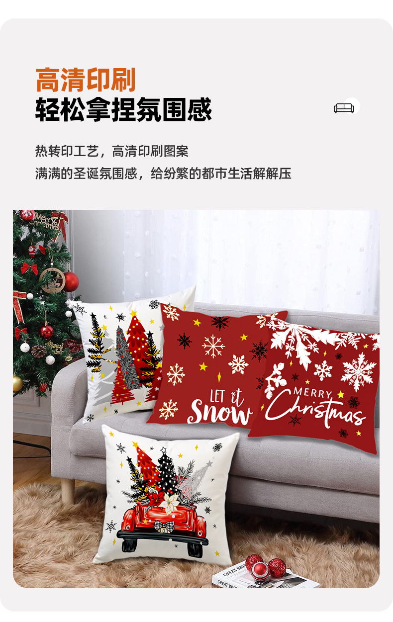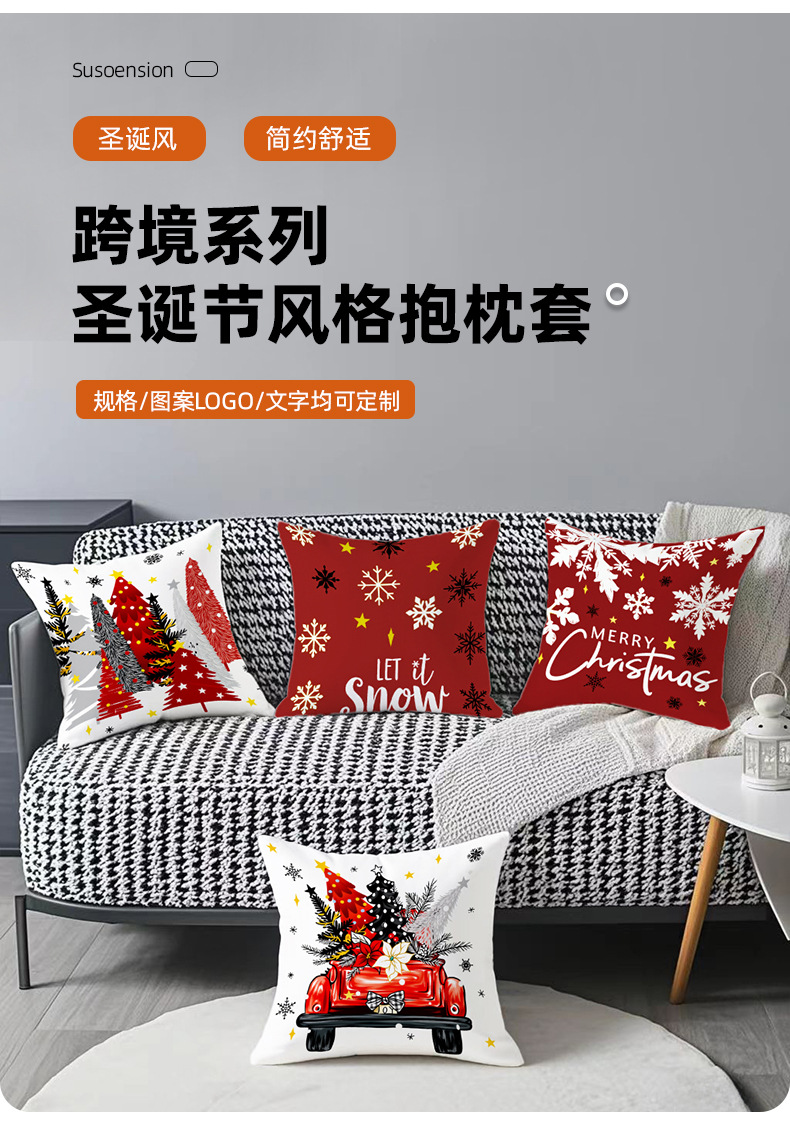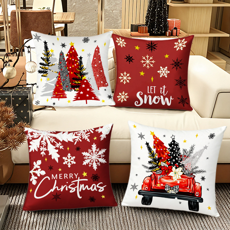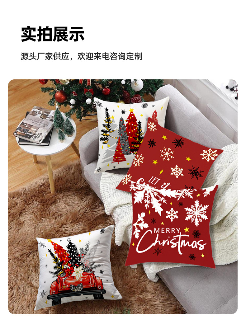 新款圣诞节抱枕套短毛绒圣诞树卡车氛围装饰靠垫靠枕套跨境批发