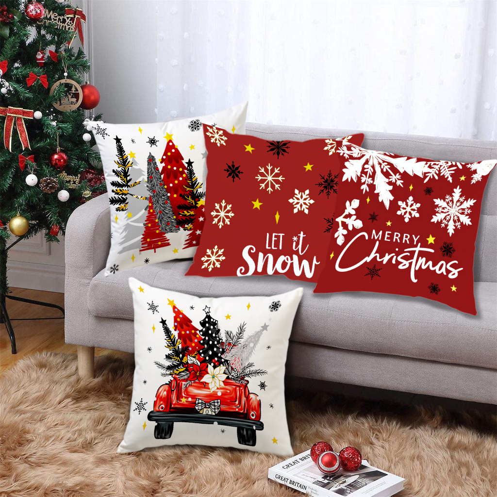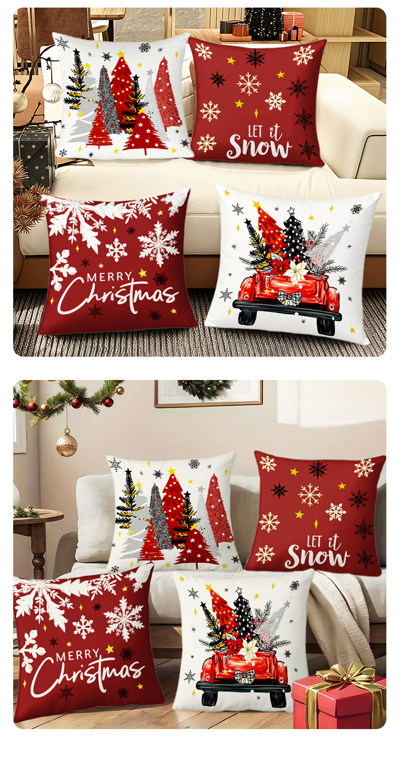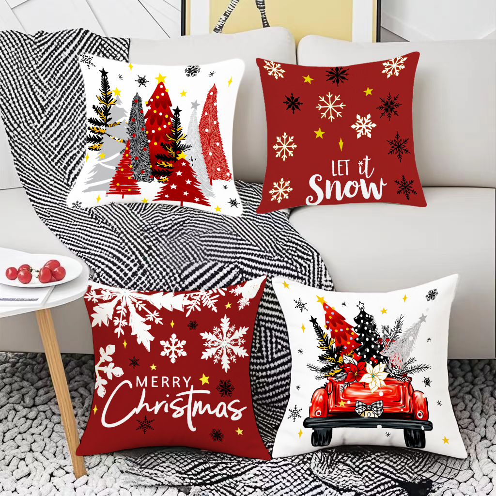 新款圣诞节抱枕套短毛绒圣诞树卡车氛围装饰靠垫靠枕套跨境批发