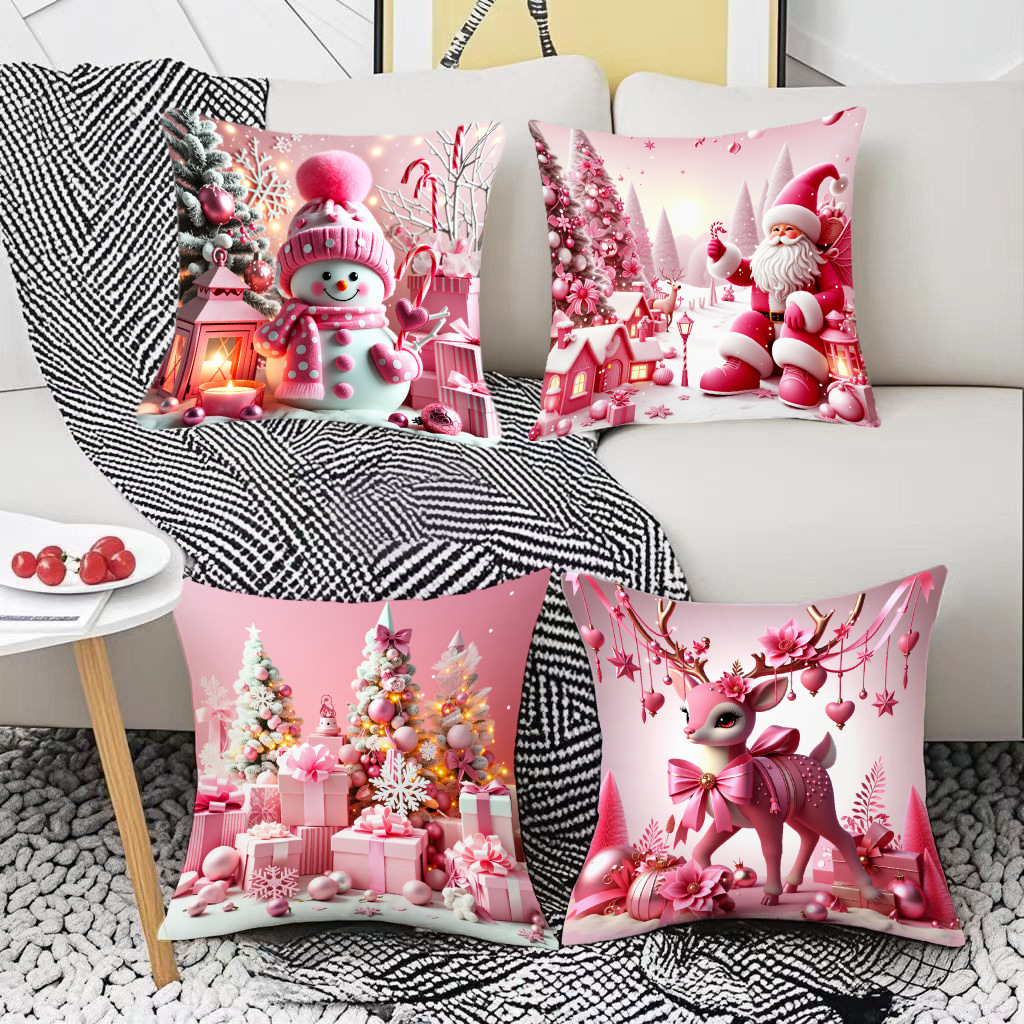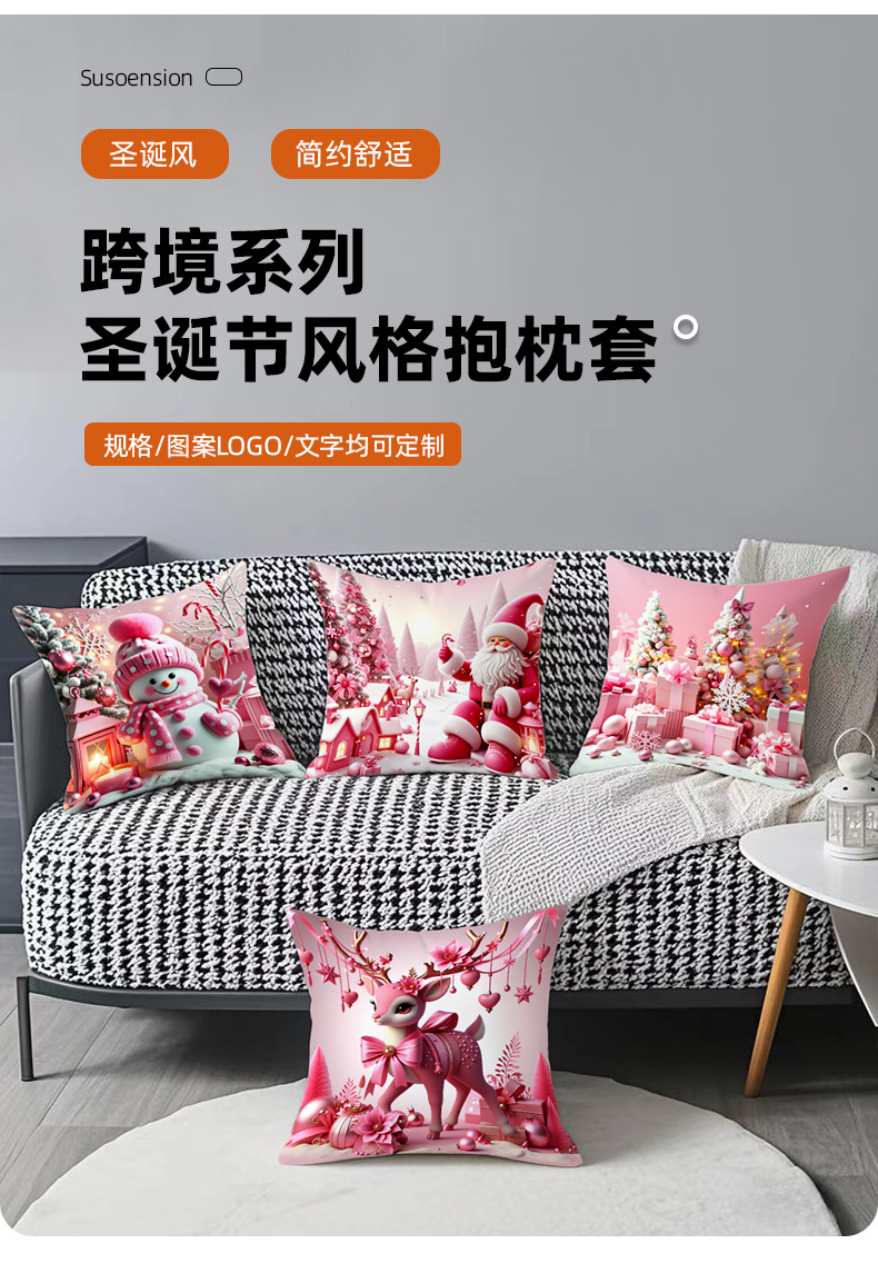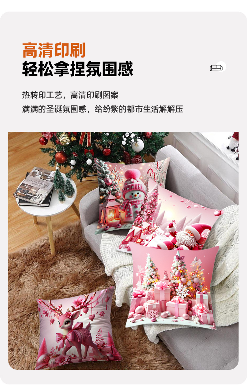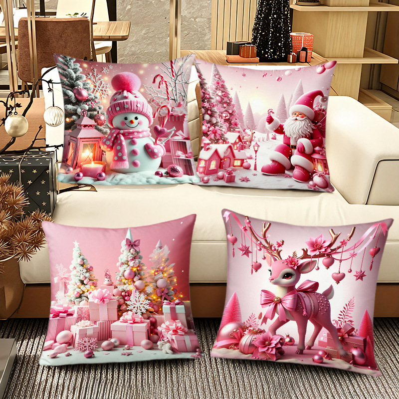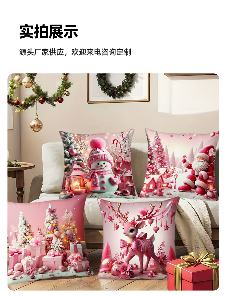 新款圣诞主题粉色雪人印花抱枕套家居软装节日礼品靠垫靠枕套跨境