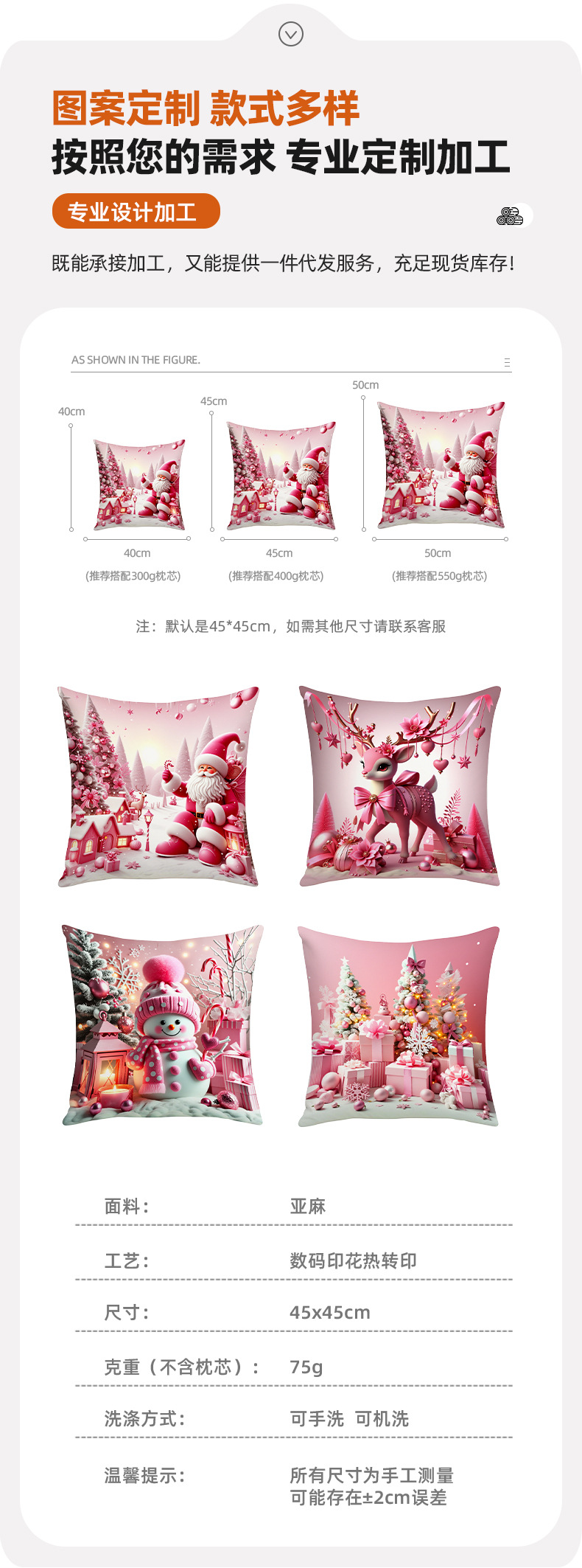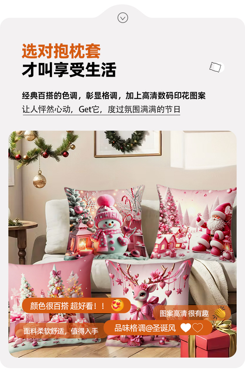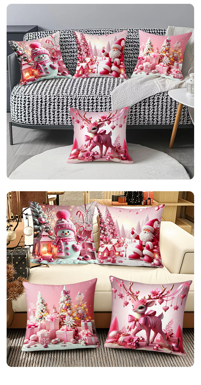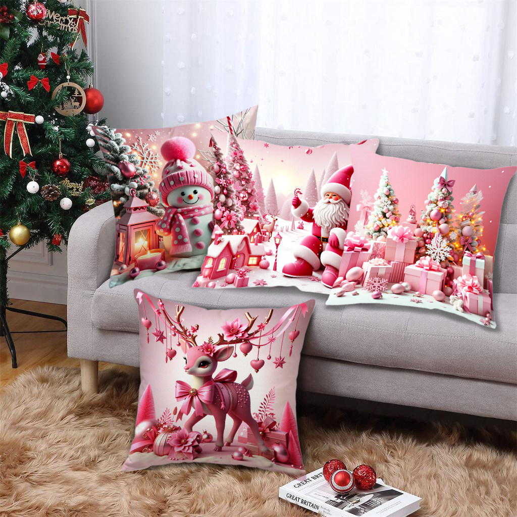 新款圣诞主题粉色雪人印花抱枕套家居软装节日礼品靠垫靠枕套跨境