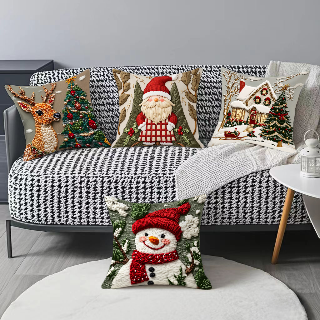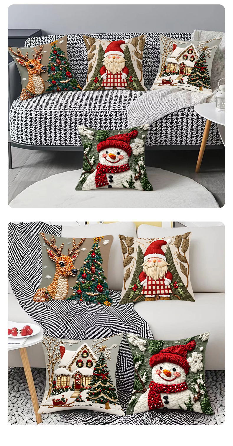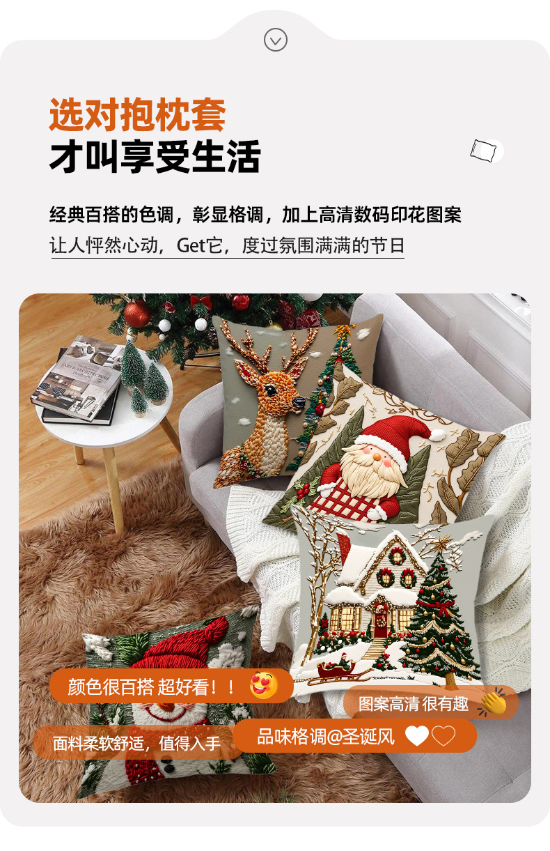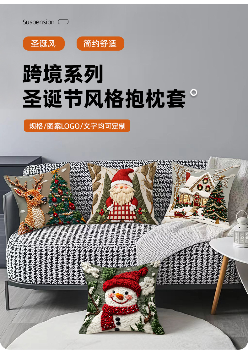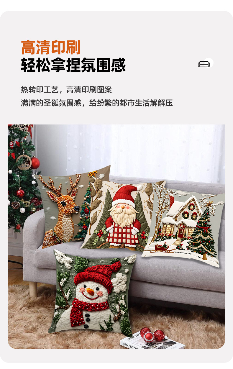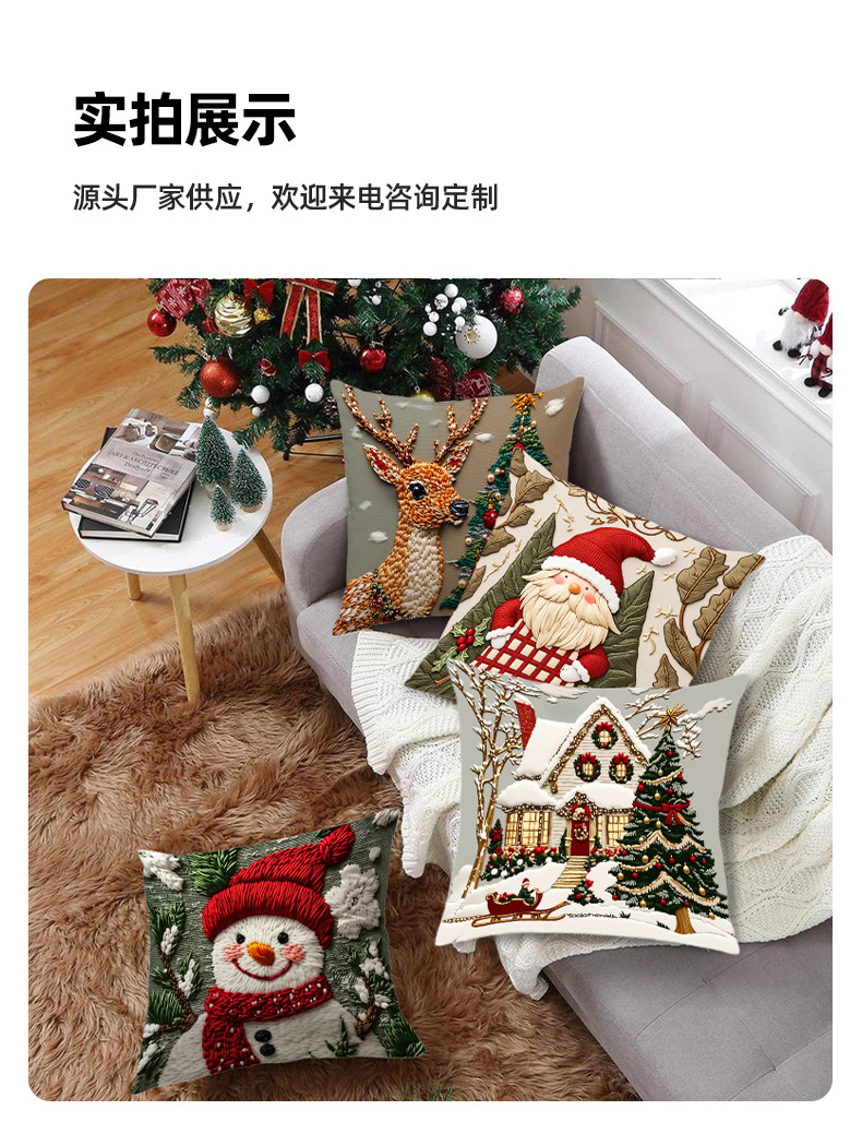 新款圣诞抱枕套印花卡通雪人麋鹿可爱靠垫套短毛绒节日装饰靠枕套