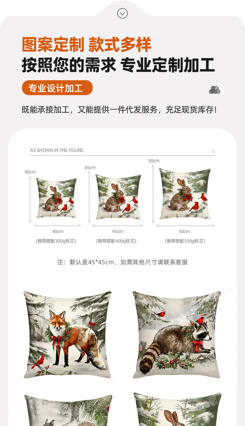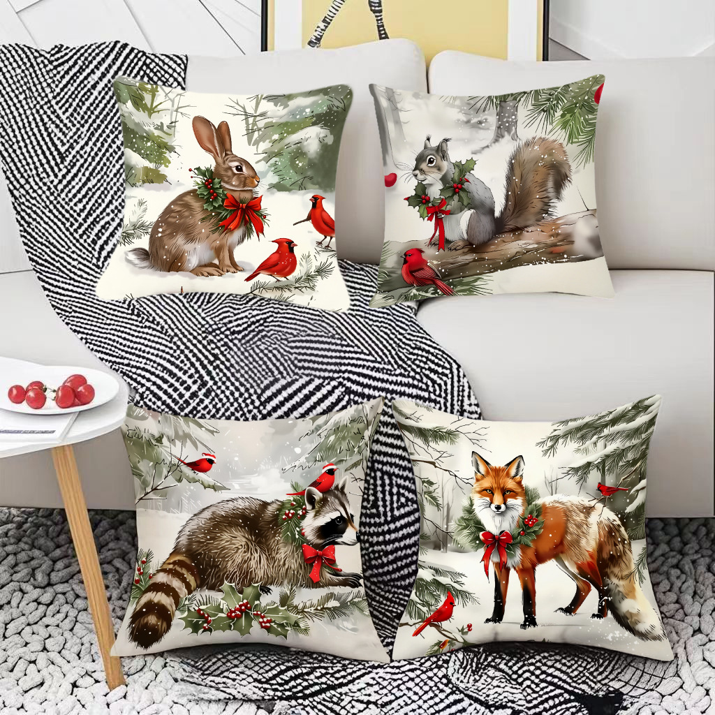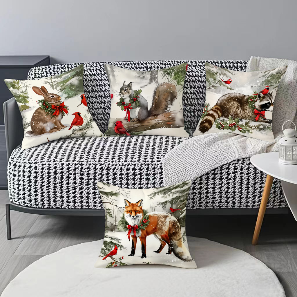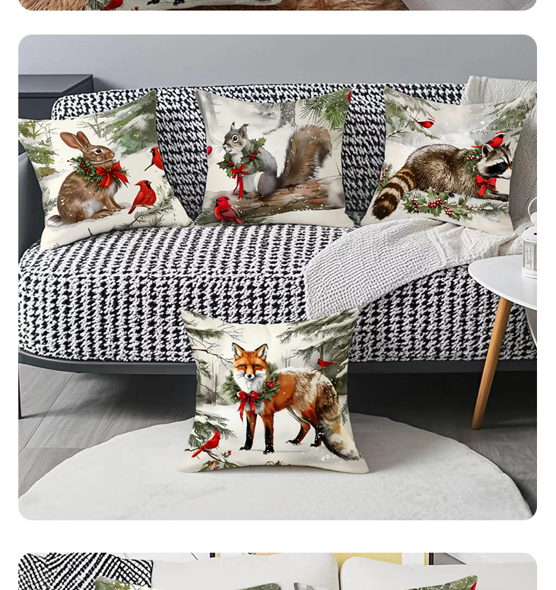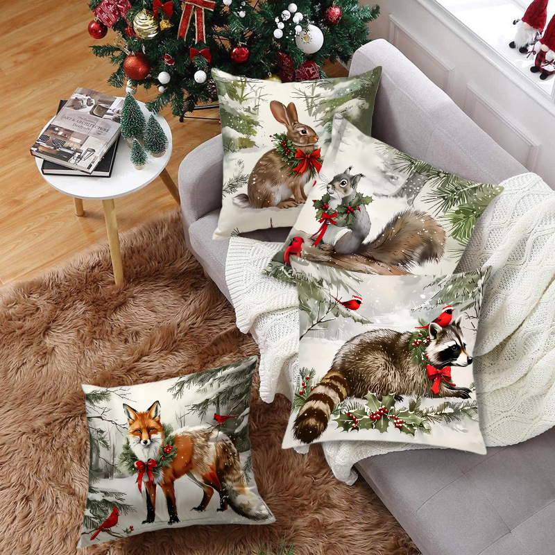 新款跨境圣诞风松鼠印花抱枕套节日氛围装饰家居客厅沙发靠枕套