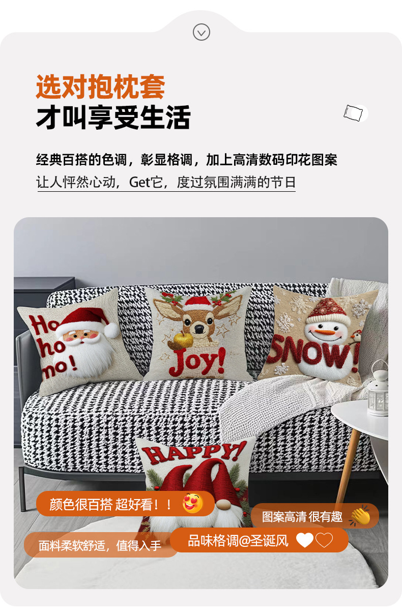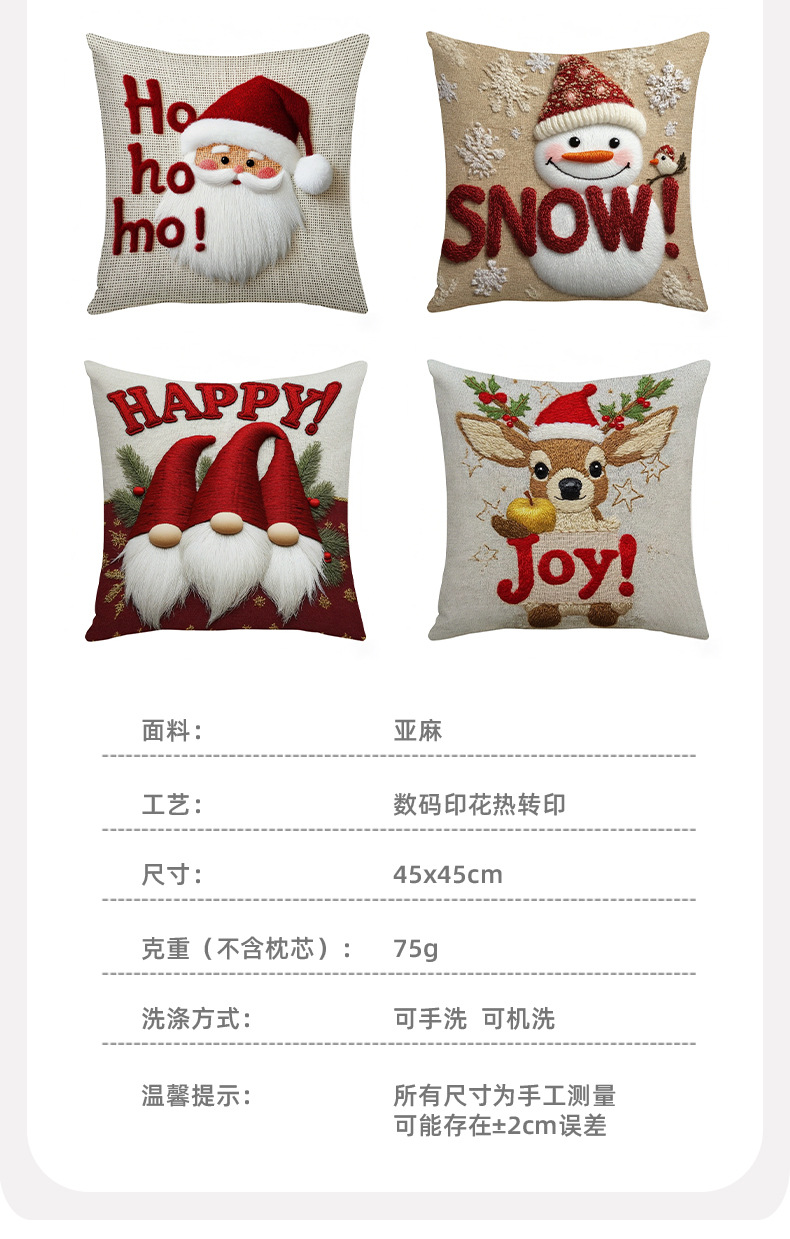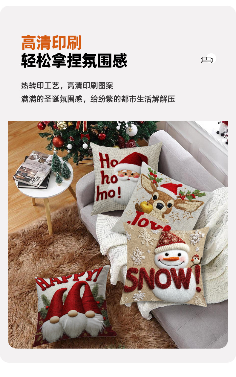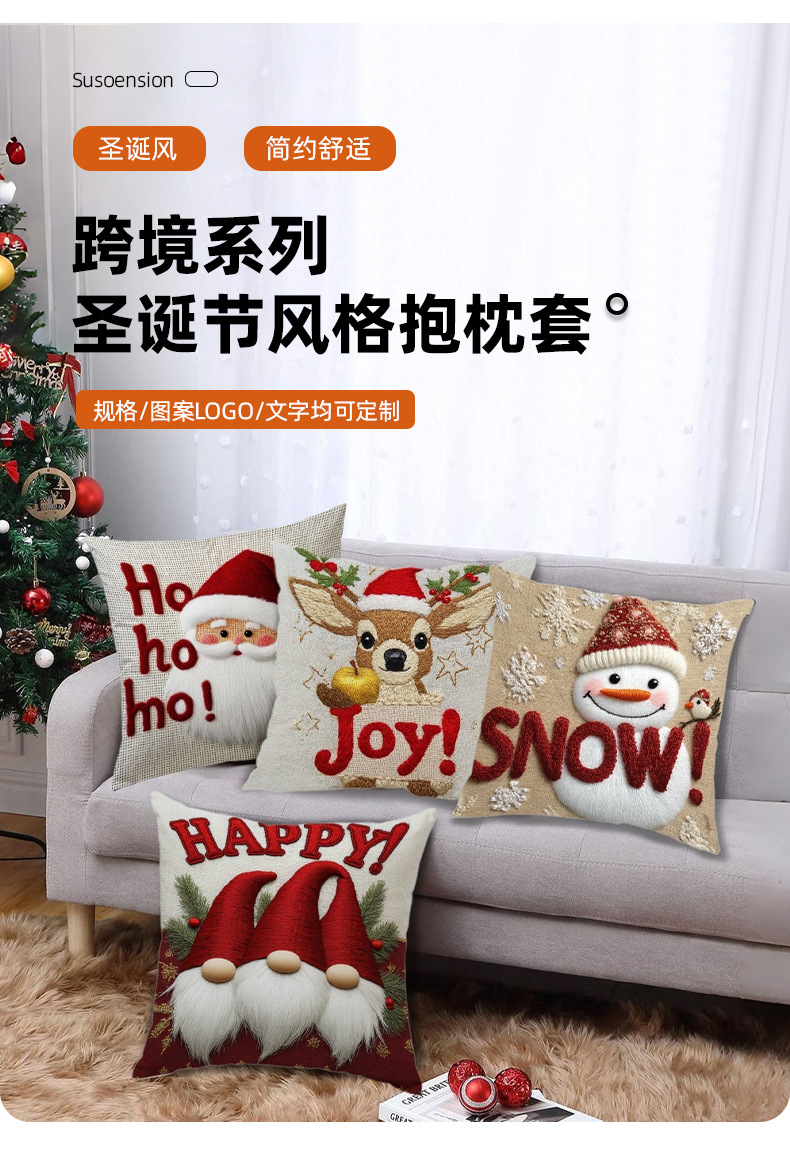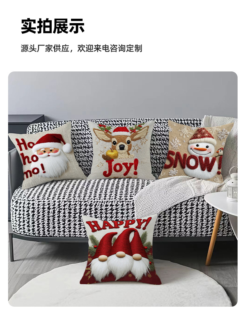 跨境卡通雪人圣诞抱枕套靠垫套短毛绒圣诞老人装饰家居沙发靠枕套